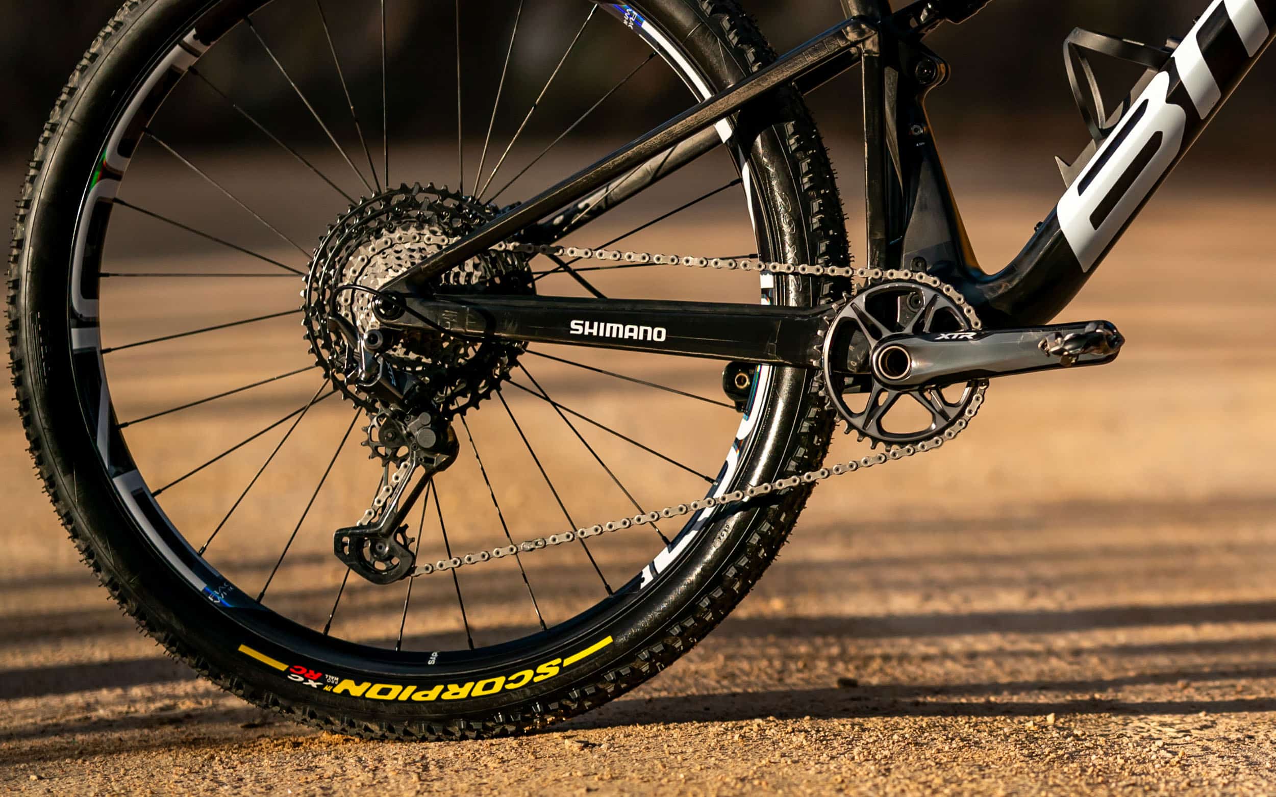 Shimano XTR, tant pour la transmission que pour les freins sur cet Orbea Oiz.
