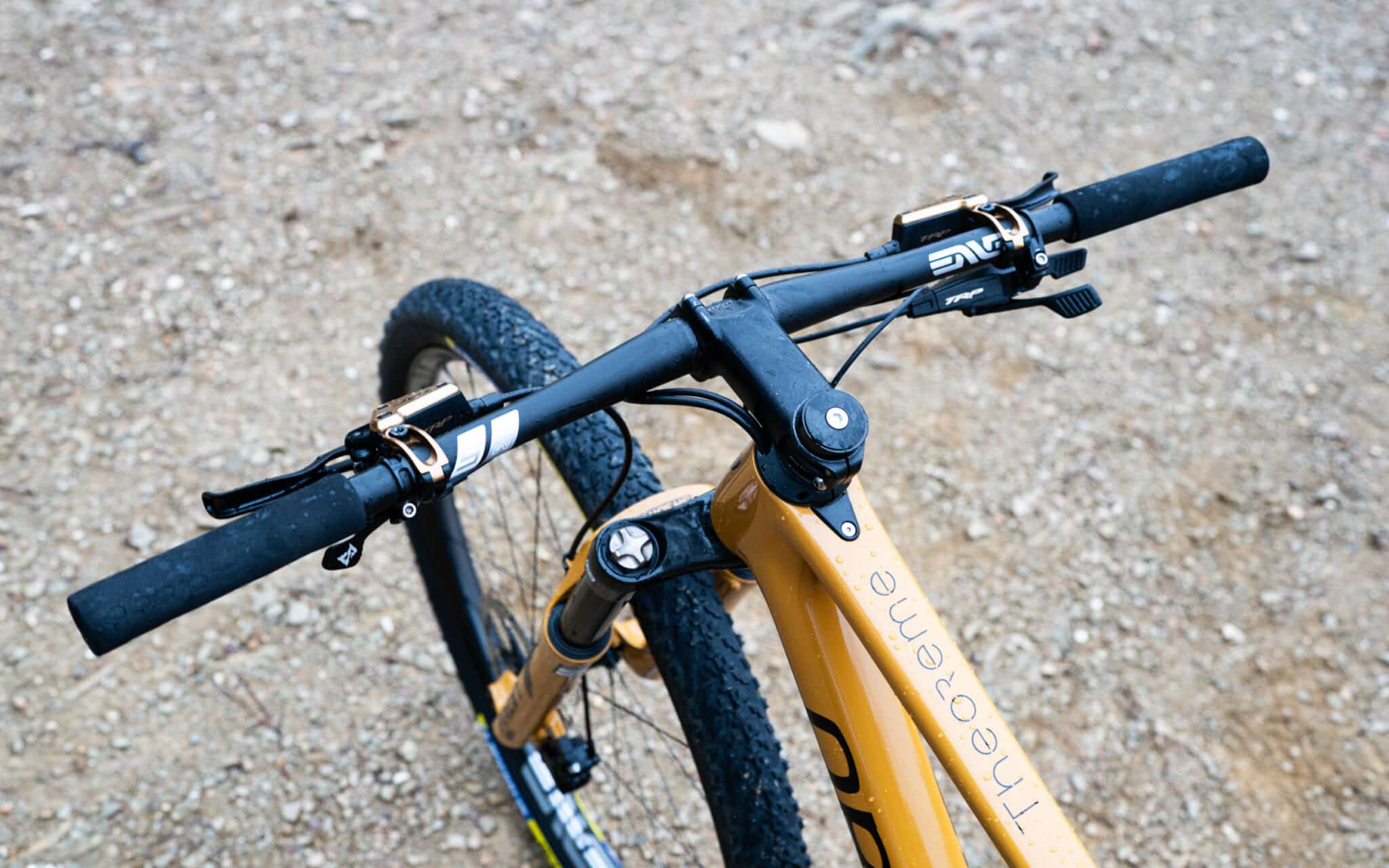 La tige de selle est une Vertical Helium de 90 mm de débattement et le guidon est un Enve M5 de 31,8 mm.