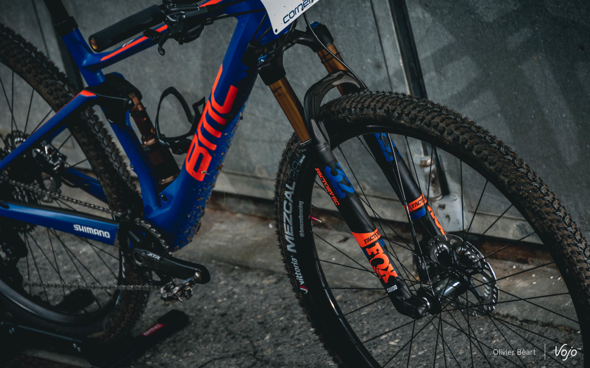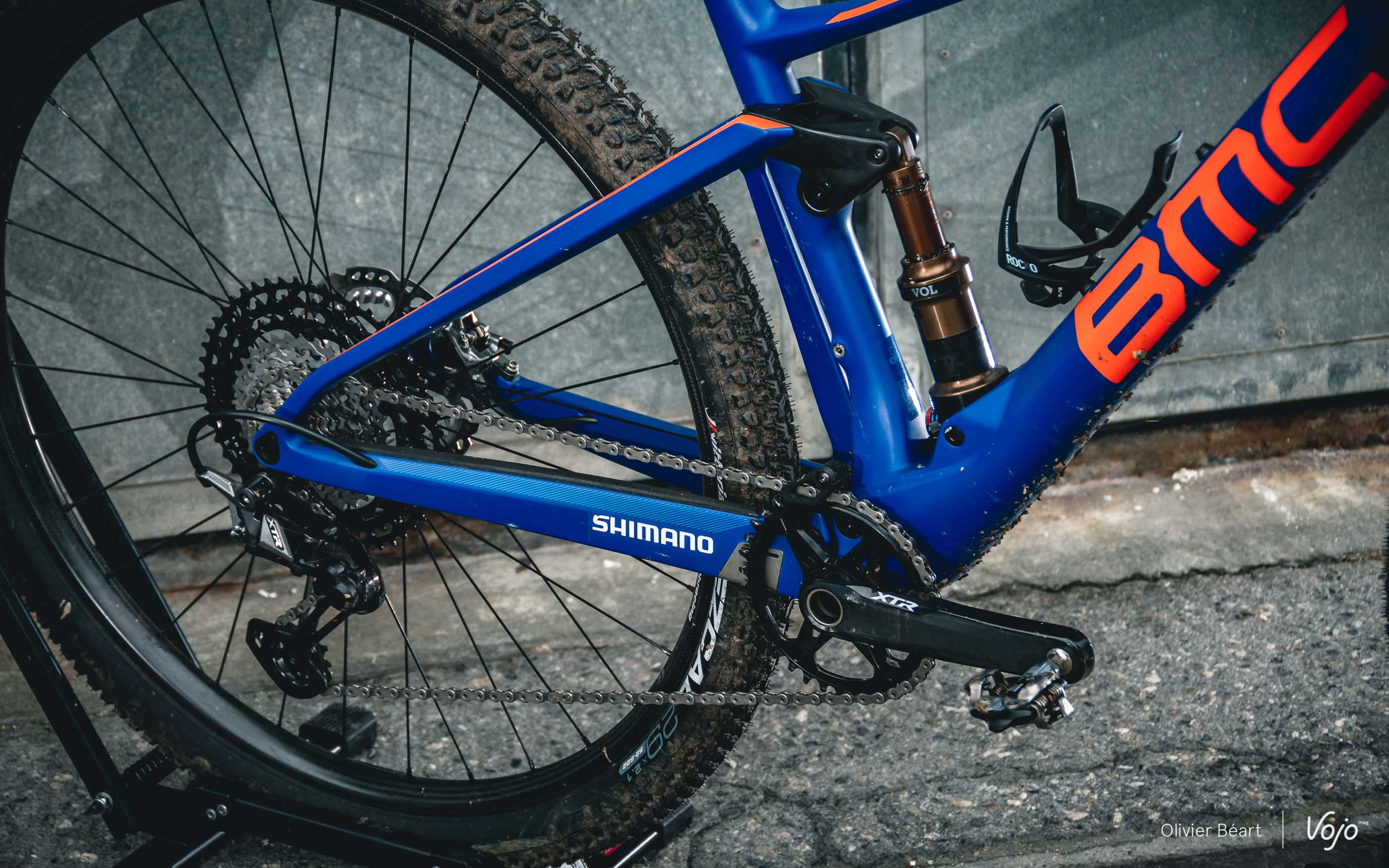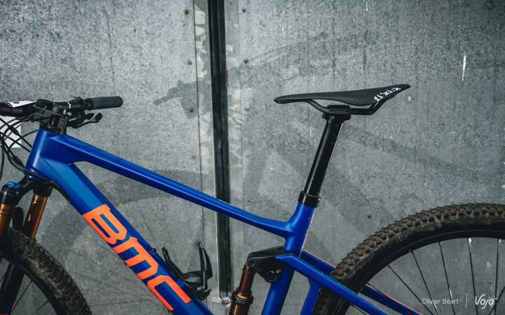 Au niveau du poids, BMC annonce ne pas en avoir fait une priorité absolue tout en restant bien sûr dans des valeurs faibles vu qu’on est sur du XC. Un gros travail d’optimisation des détails a été entrepris et le carbone utilisé a aussi été actualisé pour arriver à un cadre annoncé à 2,18kg sans tige de selle mais avec tous ses autres équipements. Le poids du vélo du team tourne autour de 9,6kg et 10kg selon les tailles et les spécifications. En série, BMC annonce aussi autour de 10kg pour le modèle haut de gamme.