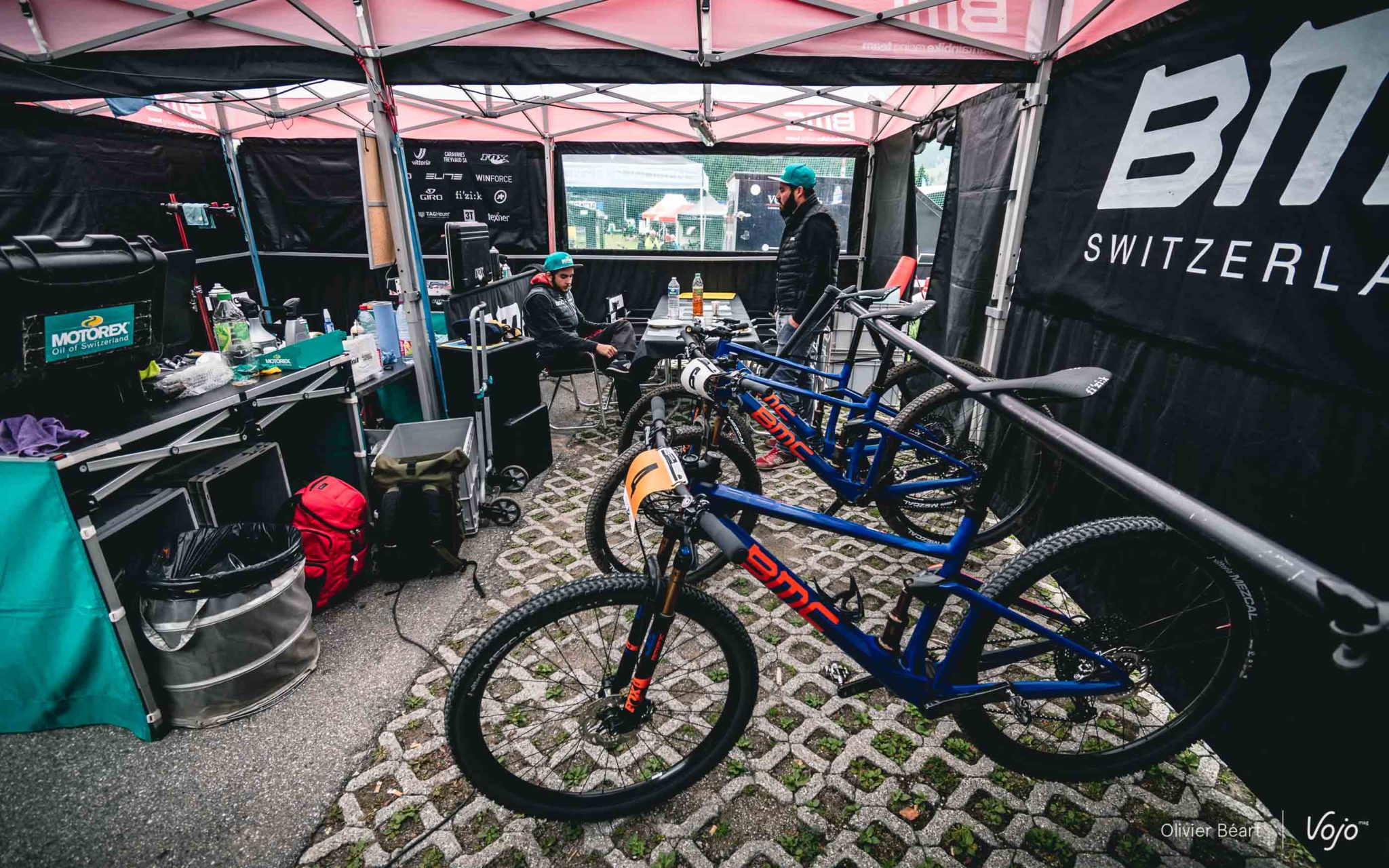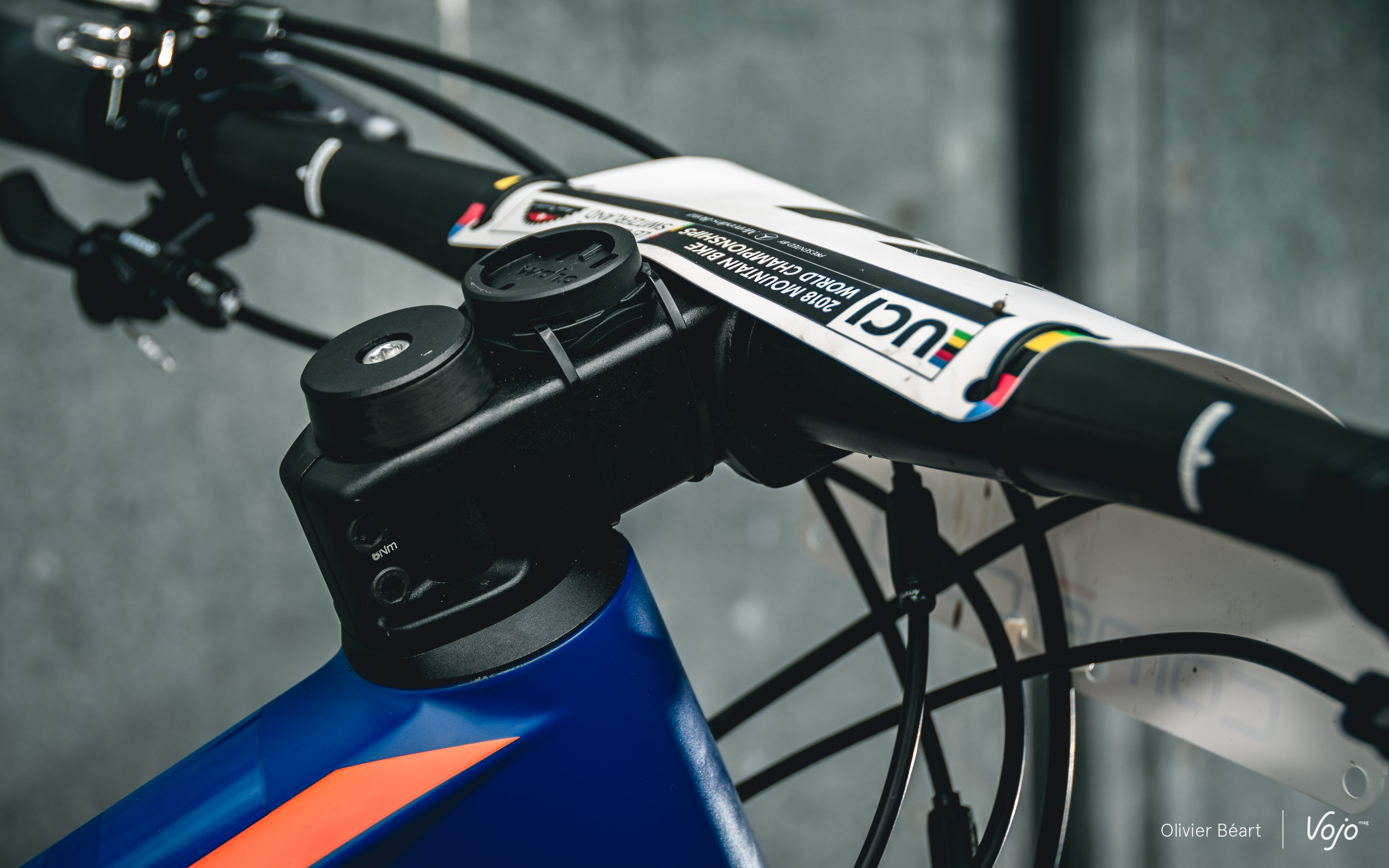 En prélude à notre présentation complète et à notre premier essai, nous sommes allés jeter un petit coup d’œil sous la tente du team afin de découvrir les vélos que les coureurs utiliseront lors de ces championnats du Monde 2018 à Lenzerheide, et plus particulièrement celui du champion de France Titouan Carod.