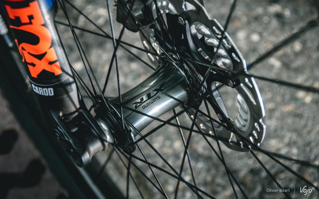 Enfin, le team utilise le nouveau groupe Shimano XTR, ce qui représente un fameux changement pour eux à l’approche de l’échéance la plus importante de l’année, puisque cela signifie passer du Di2 à la version mécanique, également pour le blocage des suspensions. Les pneus choisis pour Lenzerheide sont les Vittoria Mezcal sur des jantes carbone Duke montées sur les nouveaux moyeux XTR.