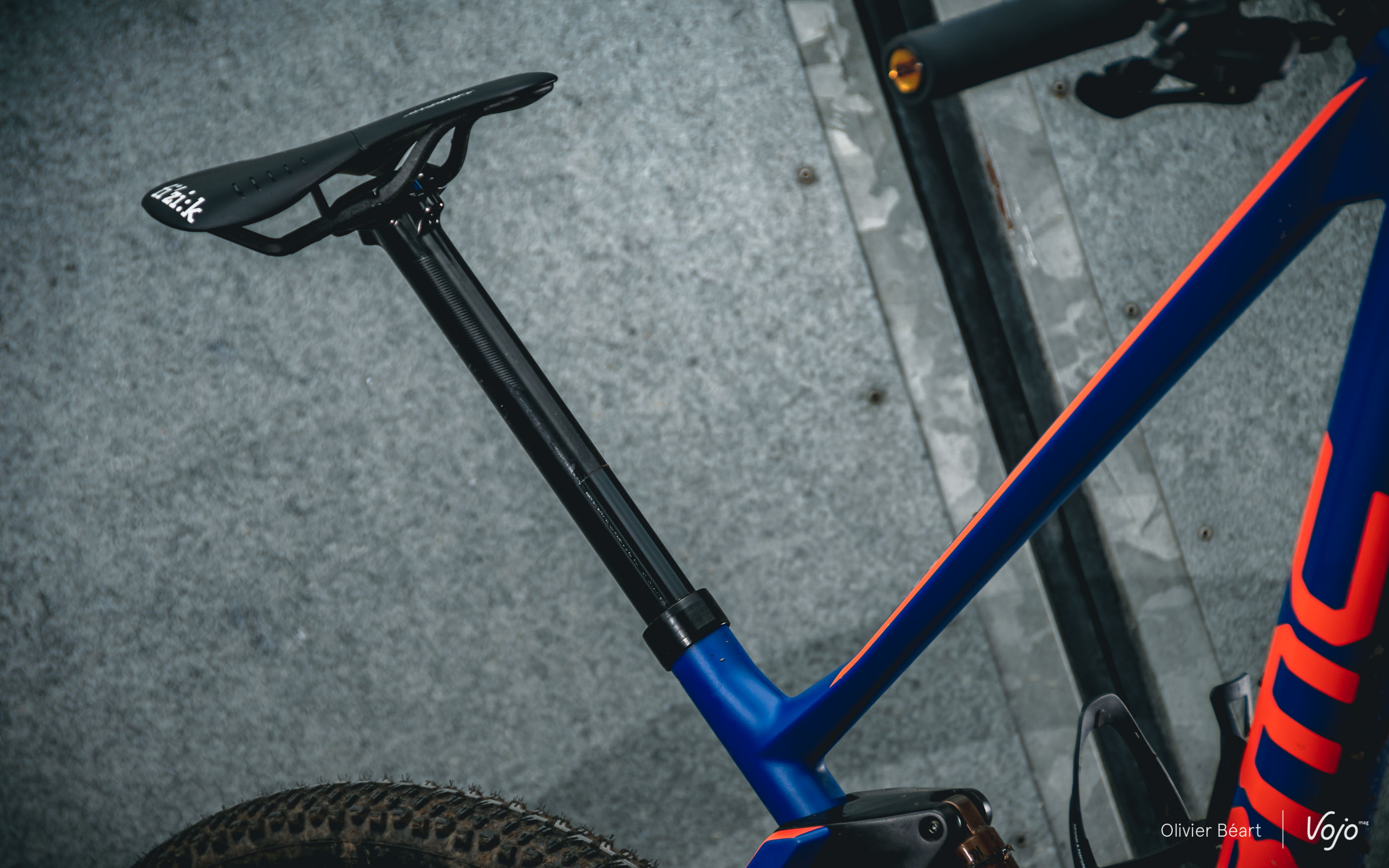 Un des premiers changements que les pilotes pointent et sur lequel les concepteurs ont beaucoup travaillé, c’est la géométrie. L’angle de direction passe de 70 à… 67,5° ! Cela en fait, à notre connaissance, le vélo de XC le plus extrême à ce niveau, avec une valeur qu’on ne trouvait que sur des vélos de trail, voire d’enduro il y a quelques années encore !