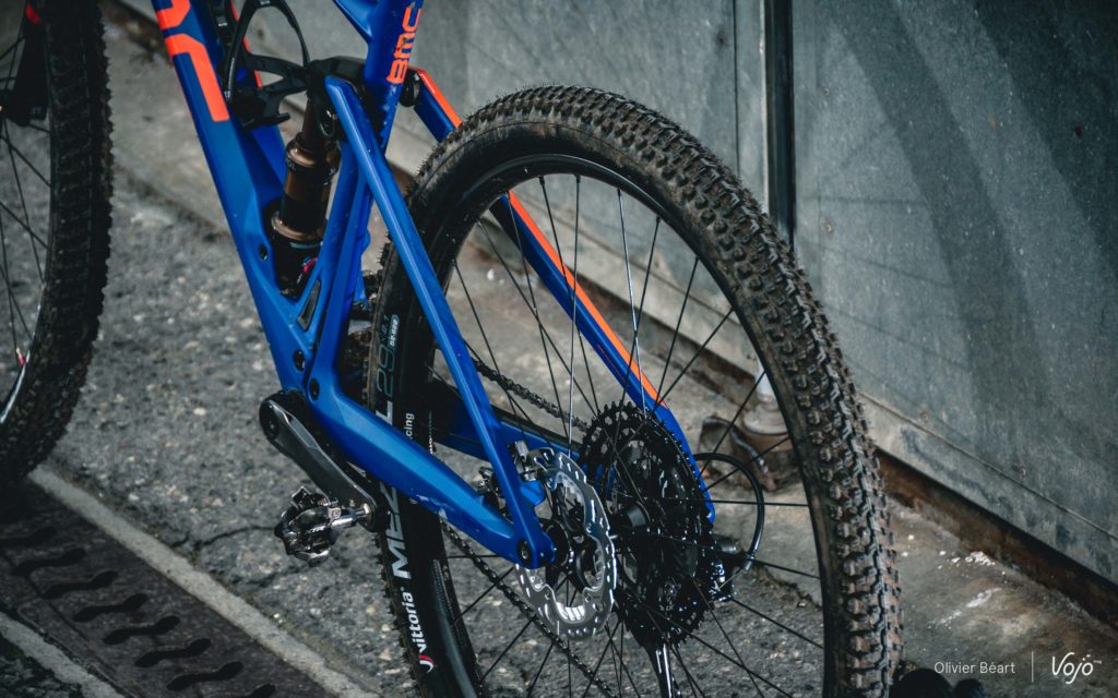 Enfin, grâce à l’adoption du mono-plateau (plus de compatibilité avec un dérailleur avant), à l’adoption du Boost 148 pour le moyeu arrière et d’une biellette de suspension inférieure retravaillée, BMC est parvenu à réduire la longueur des bases à 429mm.