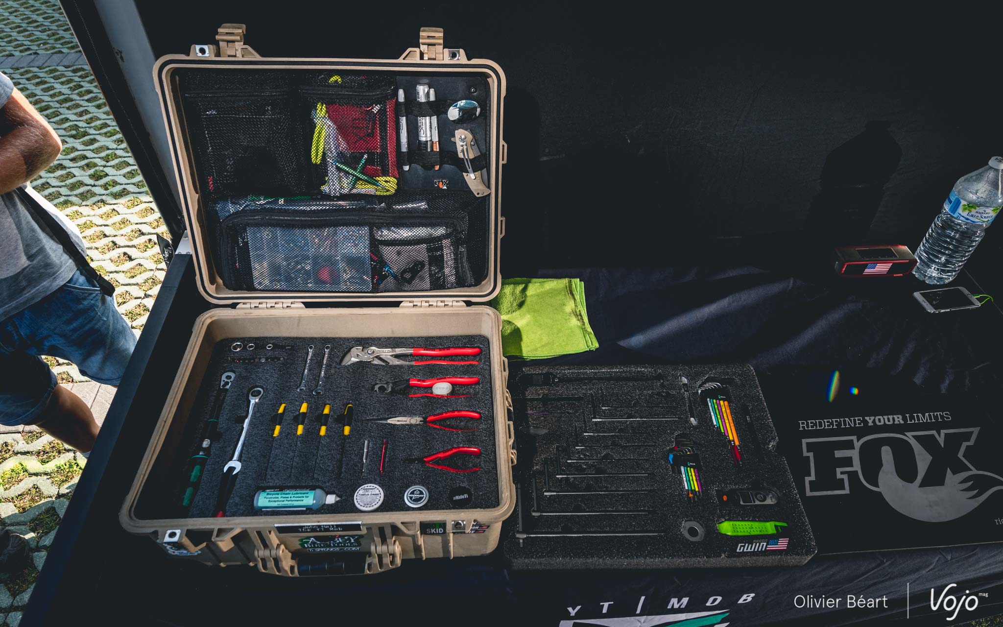 Enfin, la trousse à outils du mécanicien d’Aaron Gwin mérite également le coup d’oeil. Rarement nous avons vu du matériel aussi bien rangé et soigné. Oui, nous sommes officiellement un peu jaloux !