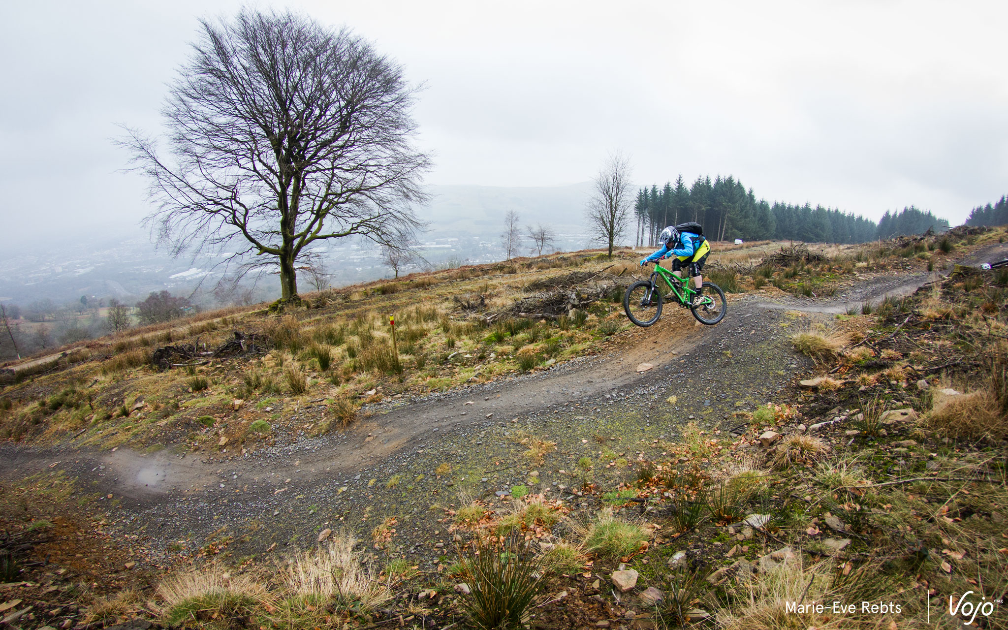 L’un des ingrédients du succès du BikePark Wales, c’est ce « revêtement » dur et truffé de pierres que l’on retrouve sur la plupart des pistes. Non seulement il offre du grip et une faible résistance au roulement, mais en plus il évite que les traces deviennent boueuses quand la pluie fait son apparition.