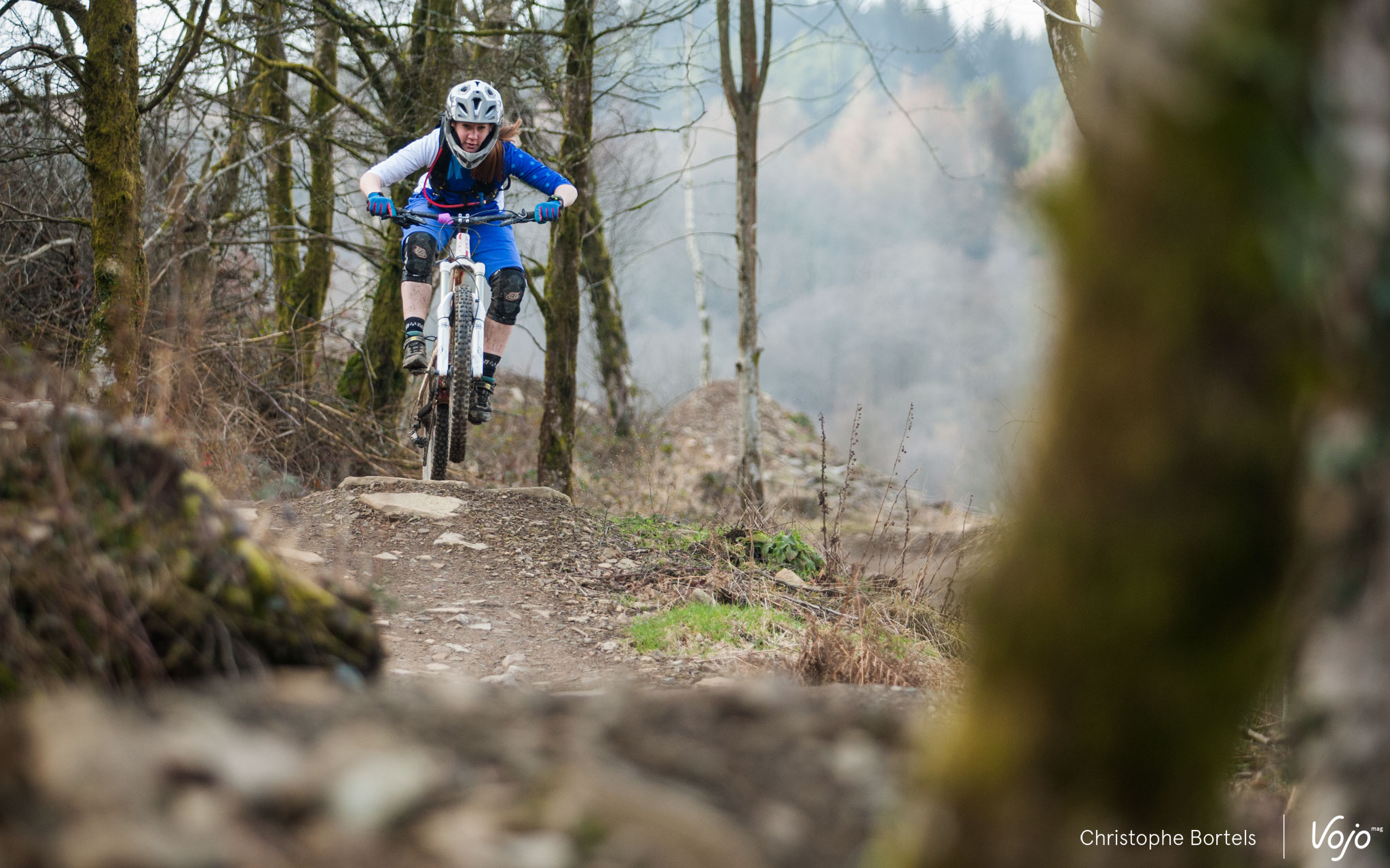 Les portions dans les sous-bois sont généralement étroites, sinueuses, ludiques et bourrées de racines et de marches naturelles. Seul petit problème : en fin de journée, et a fortiori quand il fait nuageux, on n’y voit plus grand chose… Elles sont aussi logiquement plus humides que le reste du bikepark.