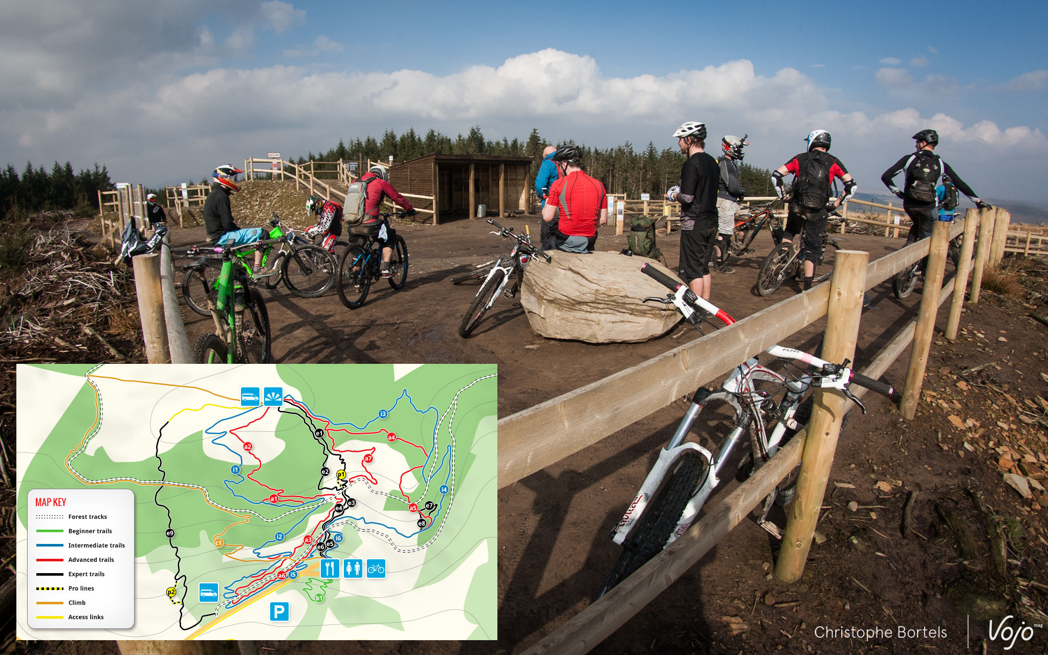 Pas de télécabines ici, les remontées se font en camionnettes et remorques. L’organisation est extrêmement bien rodée avec au moins 4 attelages qui tournent en même temps. Attention, il faut réserver sa place pour les remontées bien à l’avance via le site web du bikepark, et quelques dizaines de places à peine sont disponibles par jour ! Du coup, l’attente ne dépasse jamais les 10 minutes, et la remontée dure 10 minutes. Inconvénient : certains journées sont souvent complètes des mois à l’avance, surtout le week-end… Il est aussi possible de monter à vélo via un chemin de 4,6km spécialement prévu à cet effet. Inutile alors de booker des remontées, mais il faudra malgré tout vous acquitter de la somme de 6£ pour accéder au bikepark.