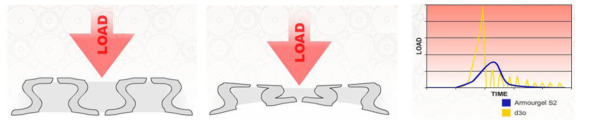 Bliss est une marque d’origine allemande spécialisée dans les protections pour le vélo et le ski. Outre une gamme « classique », où la coque est faite de mousse thermoplastique, elle mise surtout sur un matériau baptisé « Armourgel S2 ». Développé en Grande-Bretagne, ce matériau n’est pour l’instant utilisé que par Bliss pour des protections (genouillères, coudières, dorsale, short,…), mais Leatt a récemment présenté un casque avec des inserts Armourgel et Cube propose des gants avec un petit renfort au niveau des phalanges.