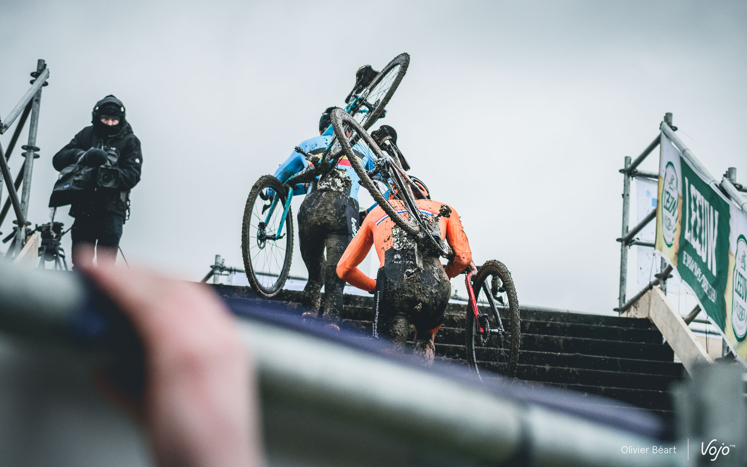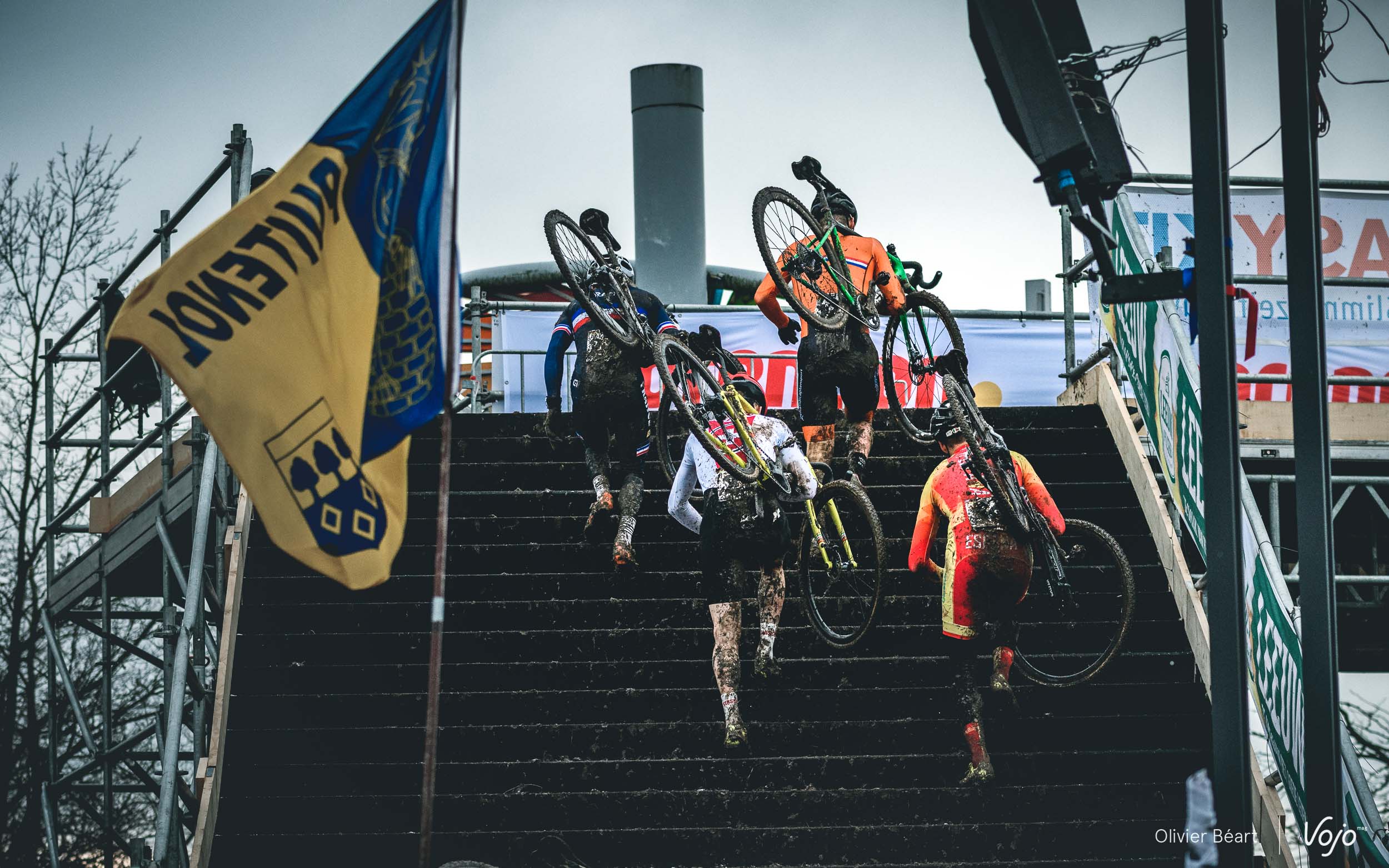 Ah, des escaliers : voici une autre belle spécificité du cyclocross !