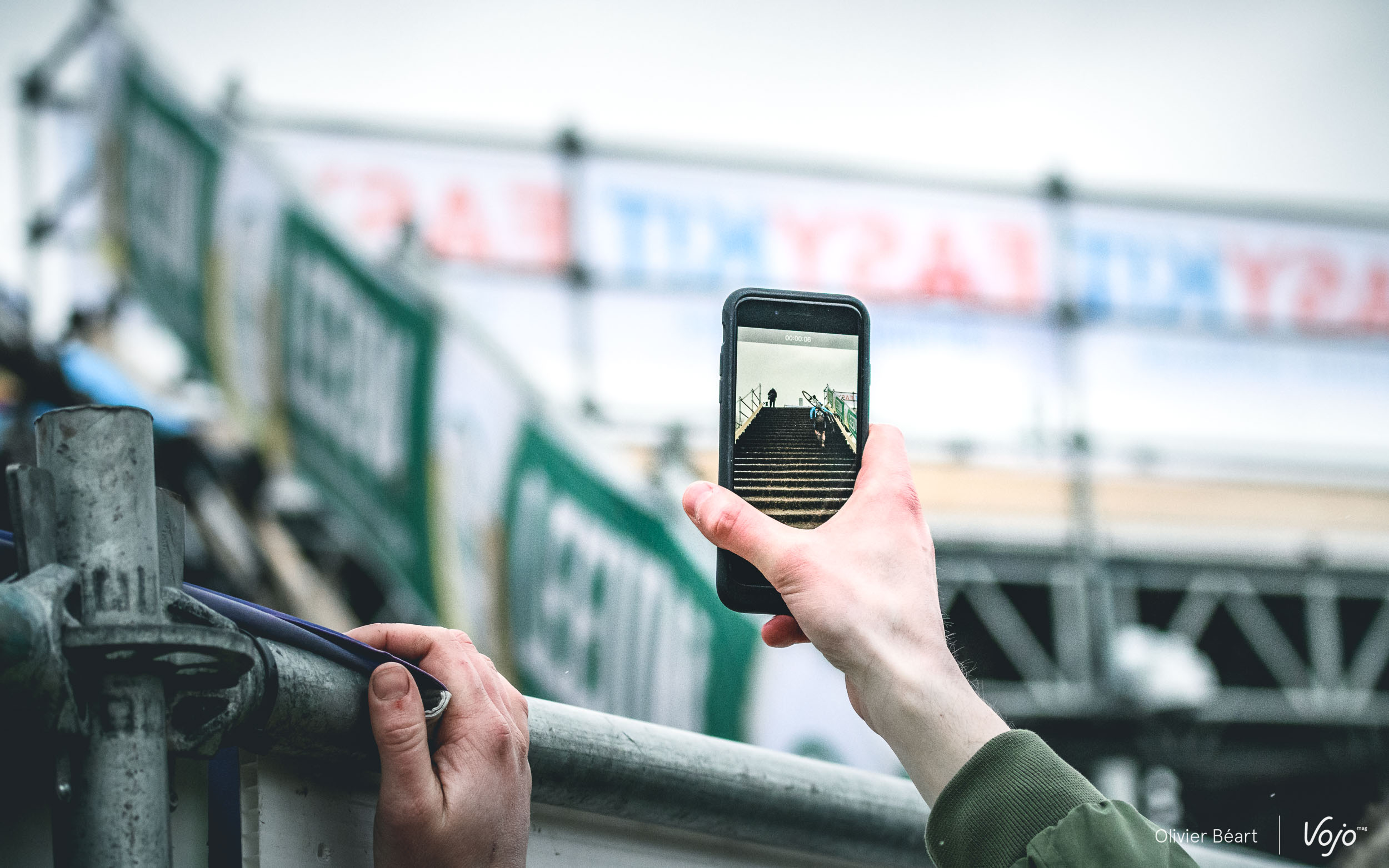 Derrière, même s’ils ne sont qu’une grosse cinquantaine au départ, ça bouchonne et c’est un joyeux désordre ! Dans le public, une fois les meilleurs passés, on se rue sur son smartphone pour suivre la course en direct.