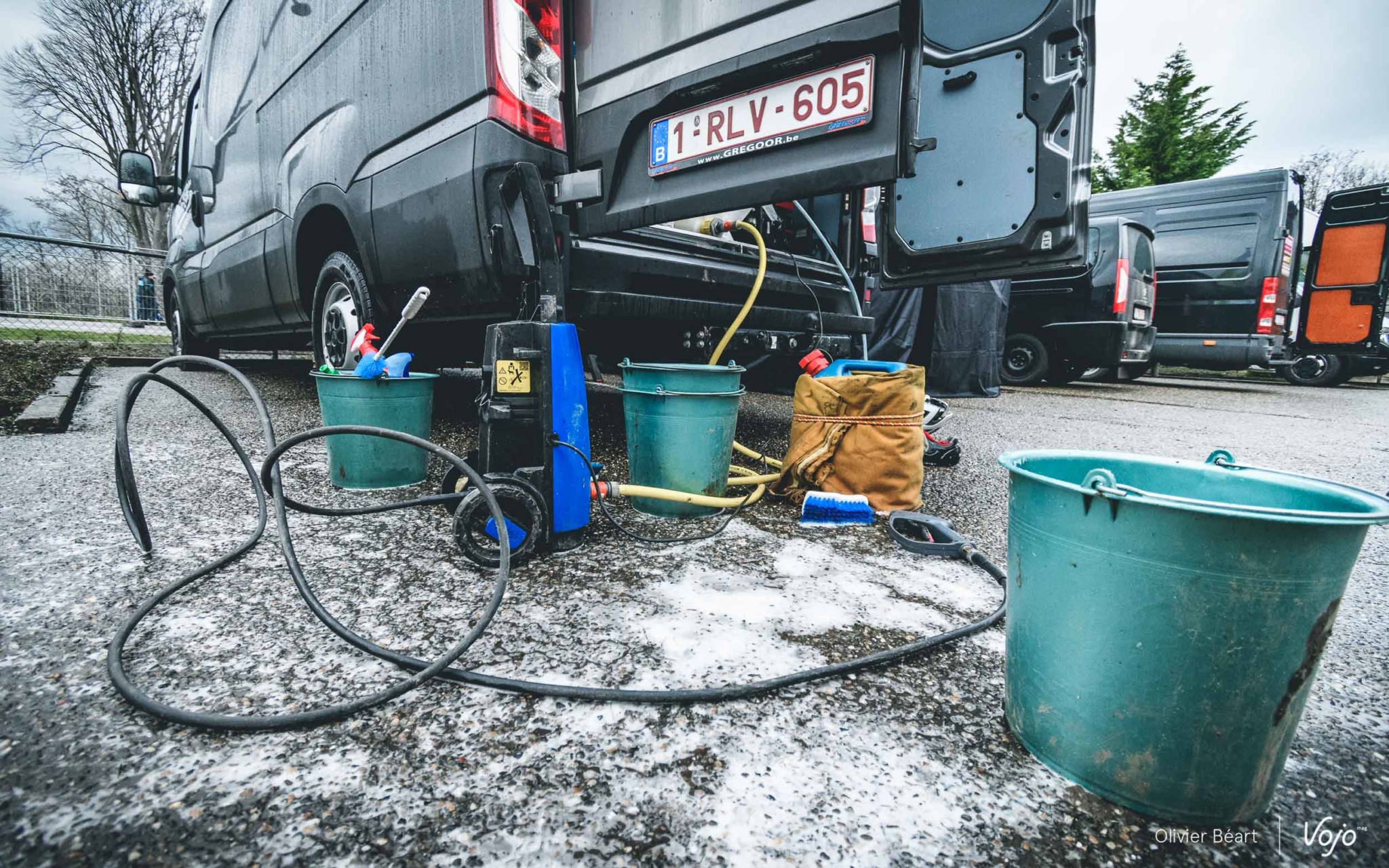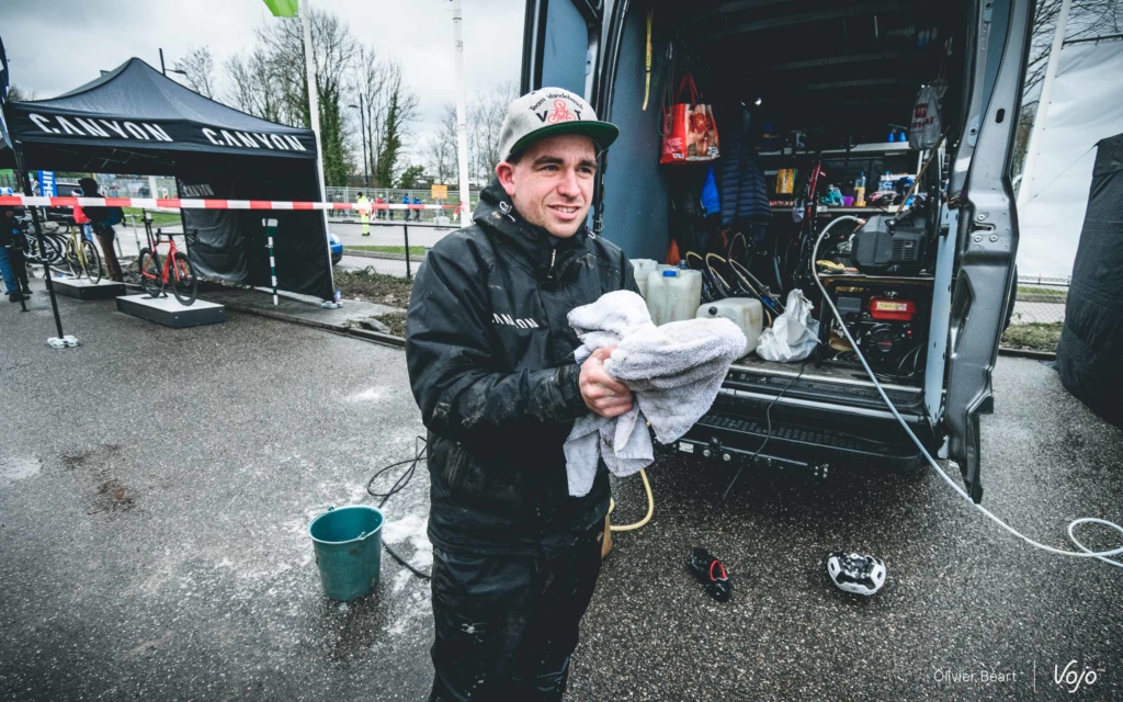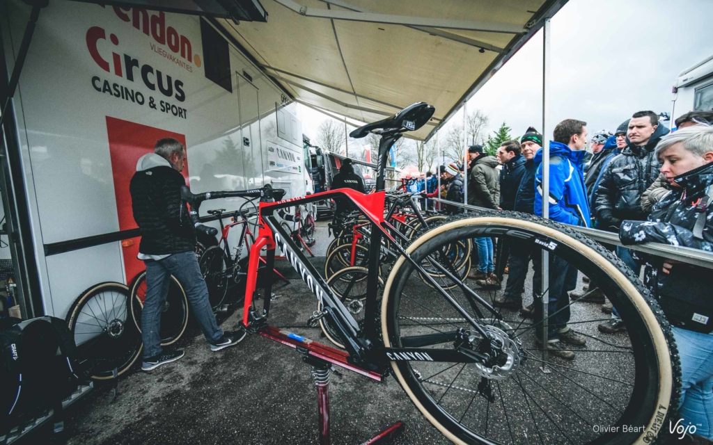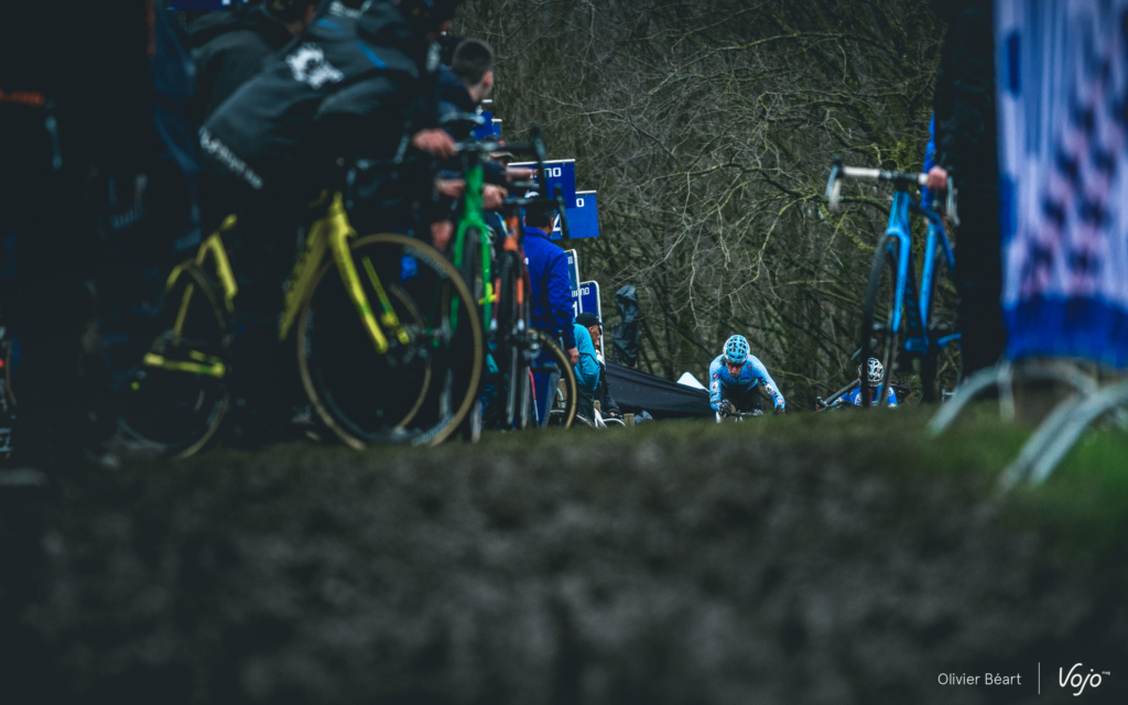 Avec tant de boue, la zone technique prend une importance toute particulière, puisqu’on peut changer de vélo jusqu’à deux fois par tour dans la discipline. Mais il faut bien évaluer l’intérêt car on peut y perdre du temps et l’opération comporte certains risques.