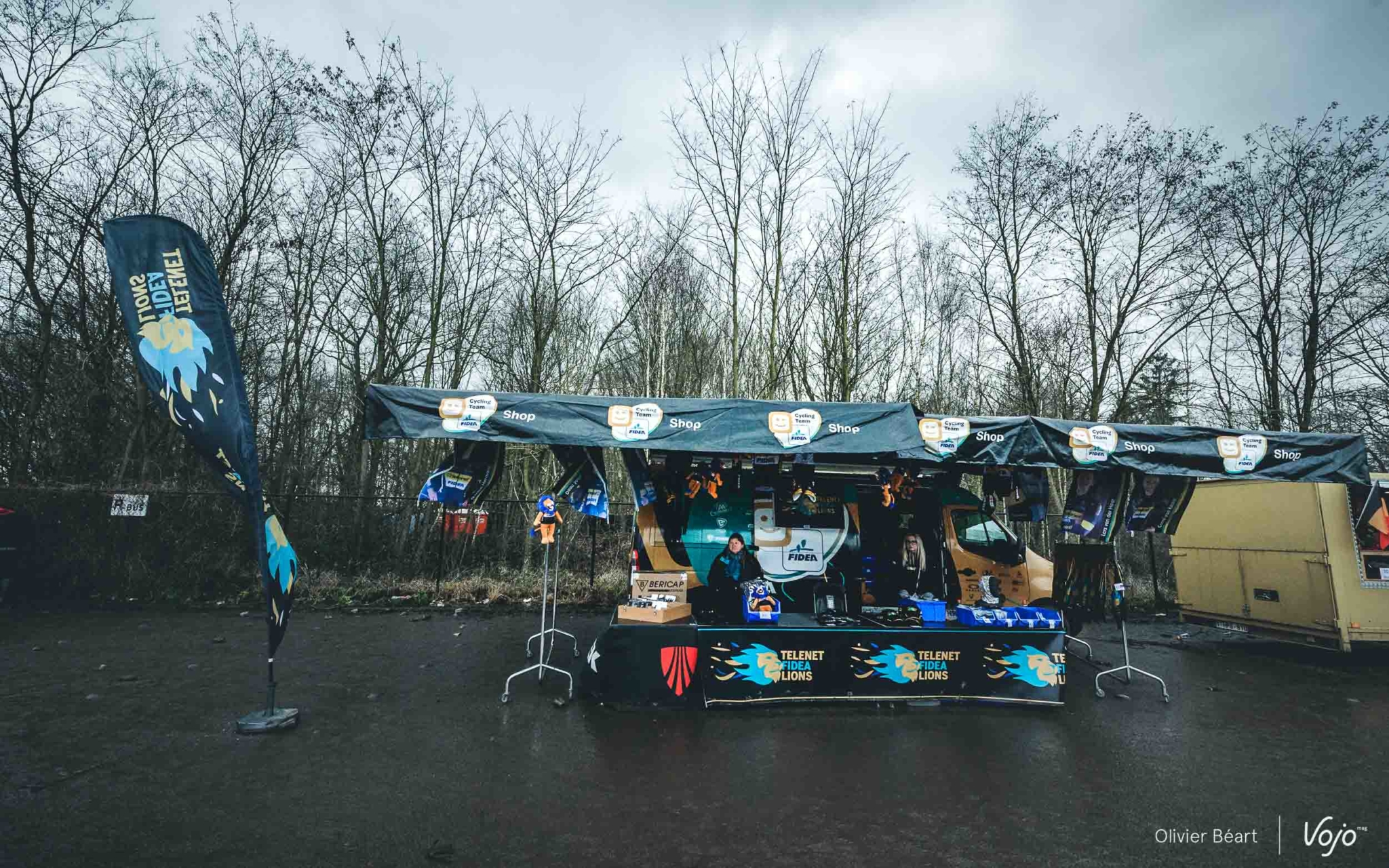 Comme à notre habitude sur les Coupes du Monde de VTT, on se dirige vers le paddock pour voir les stands des équipes, et là… le contraste est saisissant : il n’y a pas vraiment de stands, tout juste des motor-homes éparpillés et très peu de monde dans les allées. Voilà qui confirme bien le fait que le cyclocross est bien plus un sport spectacle qu’un sport de pratiquants. Les vélos et les bus des équipes ne semblent, au final, intéresser que très peu de monde. A une exception près : l’équipe Beobank-Circus de la star incontestée de la discipline : Mathieu van der Poel (et de son frère David).