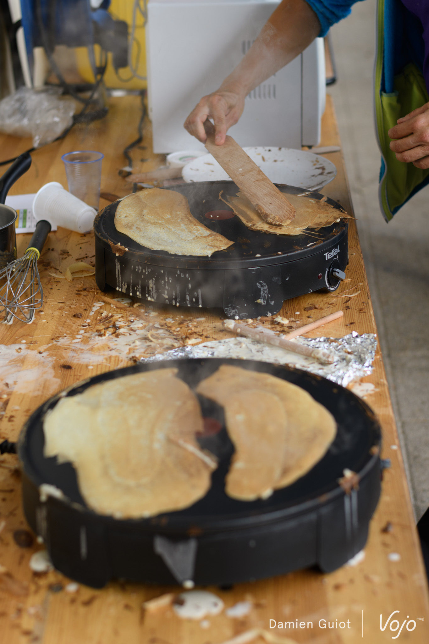 À Bussang, le dénivelé était important mais il fallait également préparer son estomac. Des crêpes attendaient les coureurs au ravitaillement quand le repas chauffait déjà pour les premiers arrivés.