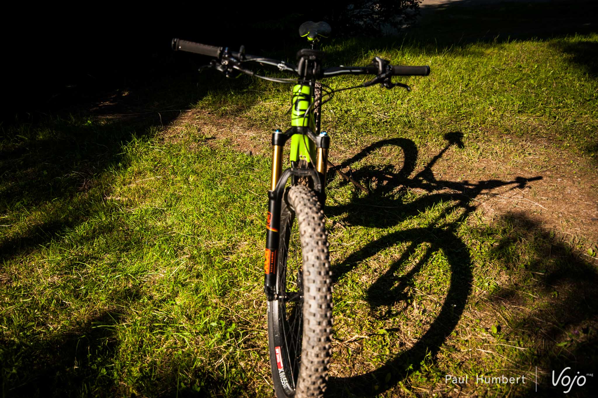 Avec ses pneus classiques de 27,5×2,35, le vélo est plus précis et nous rentrons dans le débattement sans nous sentir déséquilibrés. Le vélo semble rigide et la suspension travaille efficacement à haute vitesse et dans les trous de freinage. Dès les premiers mètres, on roule vraiment plus vite à son guidon et tout le travail fait sur la gestion du poids se ressent encore mieux. Le vélo vire facilement et on prend beaucoup de plaisir à son guidon pendant notre prise en main.