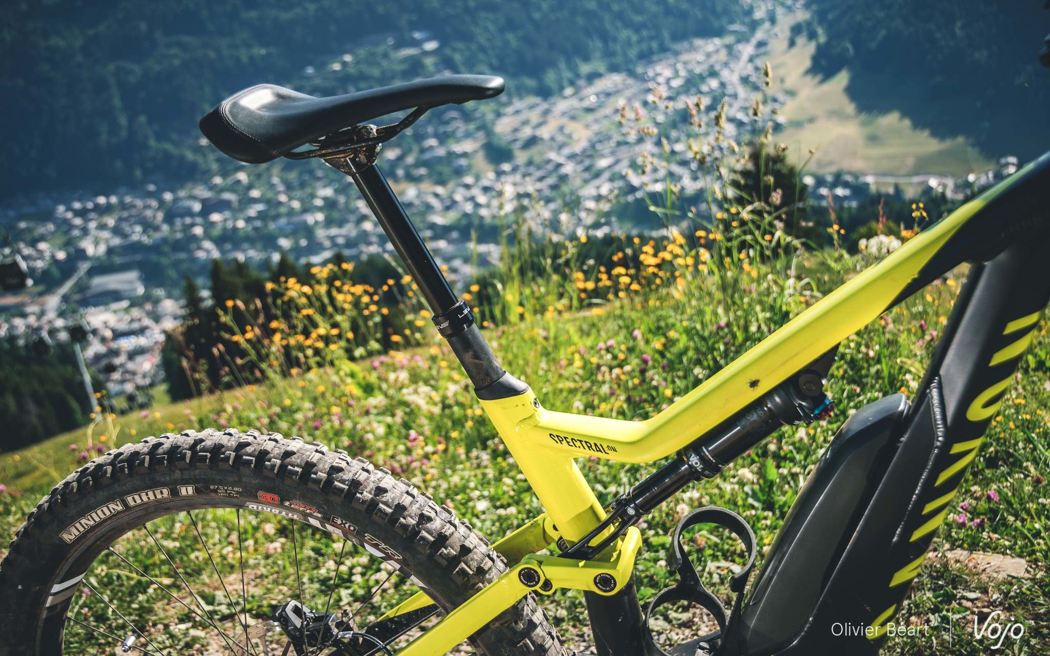 Sur des chemins bien plus escarpés, rapidement, malgré cette selle bien pensée, on a eu envie d’opter pour une position en danseuse dans tous les franchissements techniques, chose assez peu commune sur en VAE. Dans ces reliefs positifs, à de nombreuses reprises, on a clairement senti l’envie du Canyon Spectral:ON de basculer sur l’arrière.