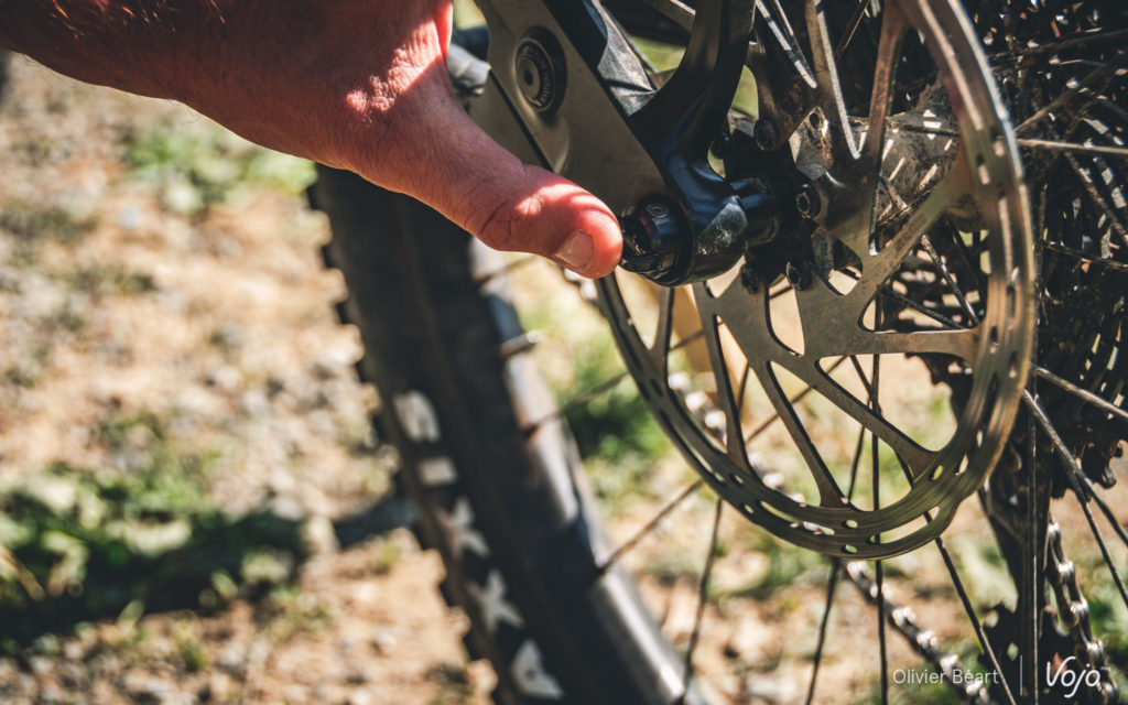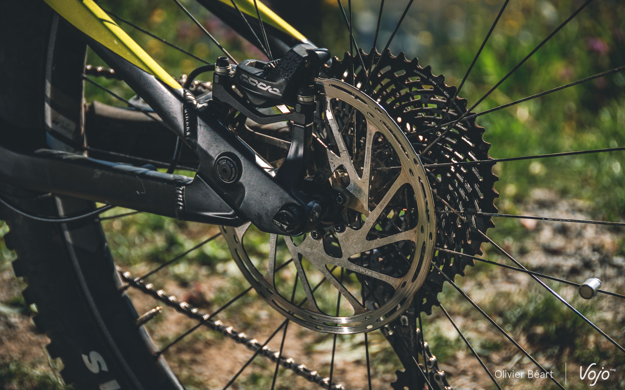 Nous n’allons pas nous étendre sur la qualité des Sram Code R, dont nous sommes fans. Le compromis entre puissance, progressivité, modulation et constance est excellent. Leur montage en disque de 200 mm avant/arrière est un minimun sur un ebike. Une manipulation plus aisée de la molette de garde, un soupçon de puissance en plus, ainsi qu’un toucher à peine plus ferme, et le tableau serait parfait.