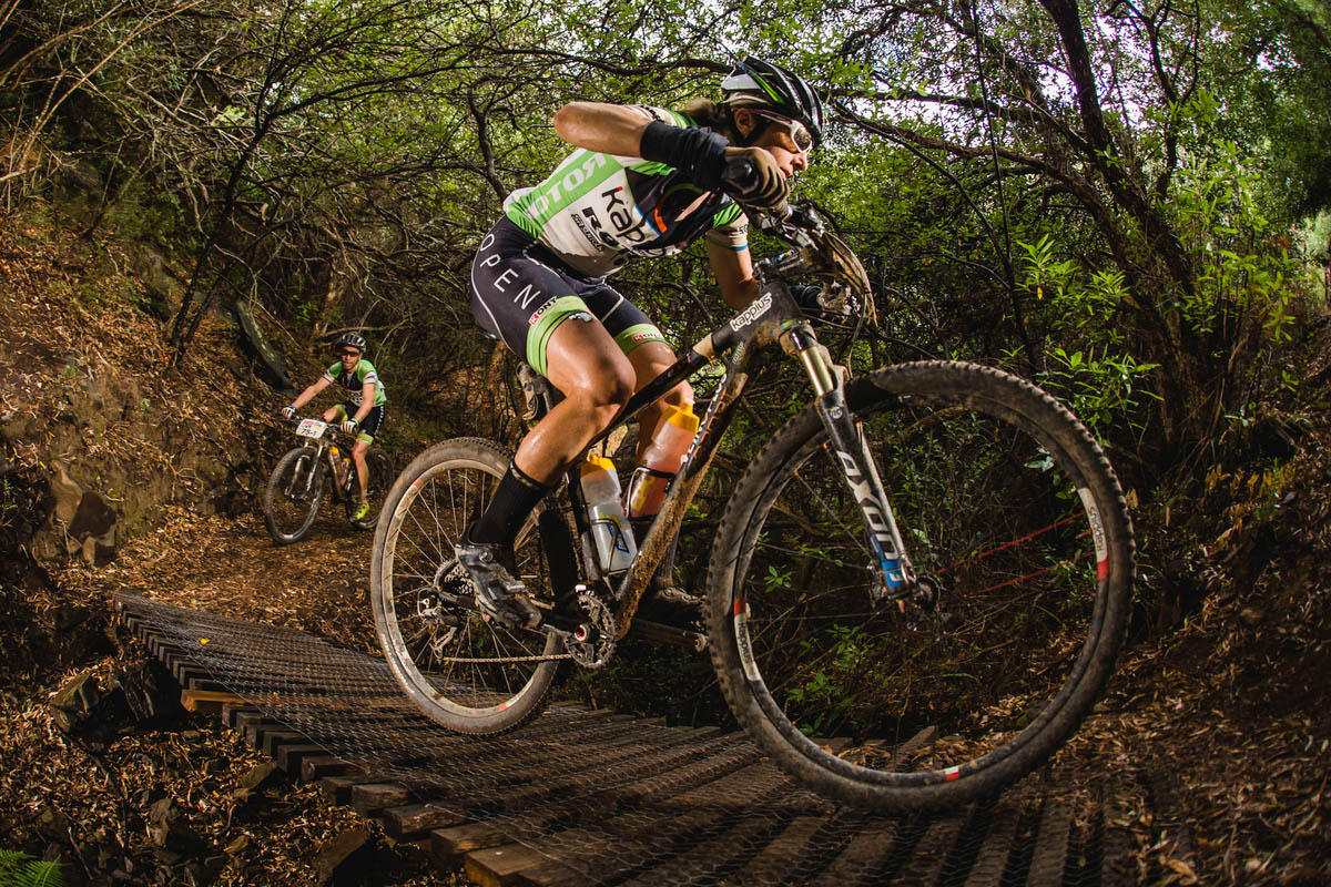 Esther Süss et la Belge Alice Pirard terminent 5e de l’étape et au classement général. Longtemps troisièmes, elles ont reculé lors de l’avant-dernière étape après qu’Esther Süss ait été malade. Ce qui n’empêche pas Alice de garder le sourire (image ci-dessous, en bas à droite). Son compagnon, Michiel Van Aelbroeck, a aussi connu deux dernières journées plus compliquées avec son binôme Robby de Bock (maladie, crevaisons,…). Ils terminent cette dernière étape en compagnie d’Alice et Esther à la 83e place mais ils restent bien placés au général (25e) et premiers belges, même s’ils auraient pu espérer un top 20 sans souci. Les résultats complets : https://www.cape-epic.com/fans/hall-of-fame/results Rendez-vous dès demain pour plus d’images, de réactions et d’anecdotes à propos de la course. En attendant, voici le portfolio de cette dernière journée du Cape Epic 2015 : [slideshow_deploy id=’4511′] Images : Sportzpics/Absa Cape Epic – Photographes : Damien Schumann, Dominic Barnardt, Ewald Sadie, Gary Perkin, Karin Schermbrucker, Nick Muzic, Sam Clarck, Shaun Roy & Sophie Smith. Les résultats complets du jour : https://www.cape-epic.com/fans/hall-of-fame/results Ce dimanche, 87km au programme pour la dernière étape, avec 1500m de d+ concentré essentiellement sur une seule longue montée en guise d’apothéose… On précisera enfin que Gunn-Rita Dahle a été la deuxième à franchir la ligne d’arrivée, mais sans sa partenaire, contrainte à l’abandon suite à des problèmes respiratoires dans la 4e étape. Au niveau des équipes Vojo, le team Open-Rotor-Kappius de Coralie Redelsperger et Jeff Bossler a réussi une nouvelle fois à accrocher la 3e place en Mixtes ! Ils restent néanmoins quatrièmes au général. Quant aux équipes Epic Bikers Team 21, la fatigue commence à se faire sentir, surtout pour le team B, où Laurent Tesch a connu un coup de moins bien aujourd’hui. Il termine au moral, soutenu par son coéquipier Benoît, avec tout de même une belle 152e place en 7h31. Le team A est 104e et Thomas explique qu’il « y avait plus de cailloux sur le parcours que sur le lune« . Pour Laurent, c’était « comme le pierrier final du cristalp sur les 30 derniers km ! » Bref, de quoi mériter une récupération à la Belge en mode bière/chips ! Ce samedi, pour l’avant-dernière étape, c’est une « petite » boucle de 71km (et 2000m de d+ tout de même !) autour de Wellington qui attend les coureurs. Résultats complets : http://www.cape-epic.com/fans/hall-of-fame/results C’est encore un gros morceau qui attend les coureurs demain, avec la deuxième plus longue étape de ce Cape Epic 2015 qui mènera les participants de Worcester à Wellington. Distance : 117km, pour 2500m de dénivelé positif ! Ariane Kleinhans et Annika Langvad se sont écroulées juste après avoir franchi la ligne d’arrivée, épuisées. Mais la performance est énorme : 4e du général hier après avoir écopé d’une pénalité de 1h13, le duo termine aujourd’hui loin devant les autres concurrentes – près d’une demi heure ! – et reprend la tête du classement provisoire. « On était vraiment très motivées en prenant le départ ce matin« , confiait Annika Langvad. « On devait se dépasser, et c’est ce qu’on a fait. » « On voulait rattraper le plus de temps possible aujourd’hui, mais on ne pensait pas combler tout notre retard en une seule étape !, ajoutait Ariane Kleinhans, ravie. Résultats complets : http://www.cape-epic.com/fans/hall-of-fame/results Demain, c’est une nouvelle grosse étape de plus de 100 kilomètres qui attend les coureurs : 111km pour 2000m de D+, et une boucle qui partira de Worcester et s’y conclura également. Les reporters VojoMag de l’équipe Open-Rotor-Kappius en ont aussi profité pour monter pour la 2e fois sur le podium et pour conforter leur 4e place au général. Résultats complets : https://www.cape-epic.com/fans/hall-of-fame/results Surtout ne manquez pas le portfolio de l’étape 2, avec notre sélection des images du jour : [slideshow_deploy id=’4300′] Images : Sportzpics/Absa Cape Epic – Photographes : Damien Schumann, Dominic Barnardt, Ewald Sadie, Gary Perkin, Karin Schermbrucker, Nick Muzic, Sam Clarck, Shaun Roy & Sophie Smith. Annoncée comme la plus difficile du Cape Epic 2015, la première véritable étape de ce lundi a emmené les coureurs dans une longue boucle de 118km/2800m de d+ autour du vignoble de Oak Valley avec un mélange typique de longues côtes (la plus longue du jour fait 5,5km avec des passages à 25% !), de sections rapides et de singletracks. Et, si elle a débuté avec un franc soleil, cette étape s’est terminée sour la pluie… La journée a été marquée par de nombreux incidents mécaniques, qui ont entraîné pas mal de rebondissements. Les vainqueurs du jour, la paire Sauser-Kulhavy (Investec/Songo/Specialized) n’ont pas été épargnés et ont été victimes d’une crevaison, mais cela ne les a pas empêchés de remporter l’étape avec presque une minute d’avance sur le team Bulls et de réaliser un temps de 4h47 ! En Mixtes, si les deux premières équipes de René Haselbacher/Sabine Sommer et Peter Vesel/Ivonne Kraft semblent inaccessibles, la bagarre promet d’être intense pour la 3e place ! Parmi les candidats au podium, l’équipe Open-Kappius-VojoMag de Jeff Bossler et Coralie Redelsperger, qui occupe la 4e place du jour. Mais il n’y a qu’une minute trente d’écart avec les 3e et autant avec les 5e ! Voici la première vidéo du jour : Et le portfolio des plus belles images de la journée par Dominic Barnardt, Ewald Sadie, Gary Perkin et Sam Clarck (Sportzpics/Cape Epic) : [slideshow_deploy id=’4166′] Les résultats complets de l’étape : https://www.cape-epic.com/fans/hall-of-fame/results