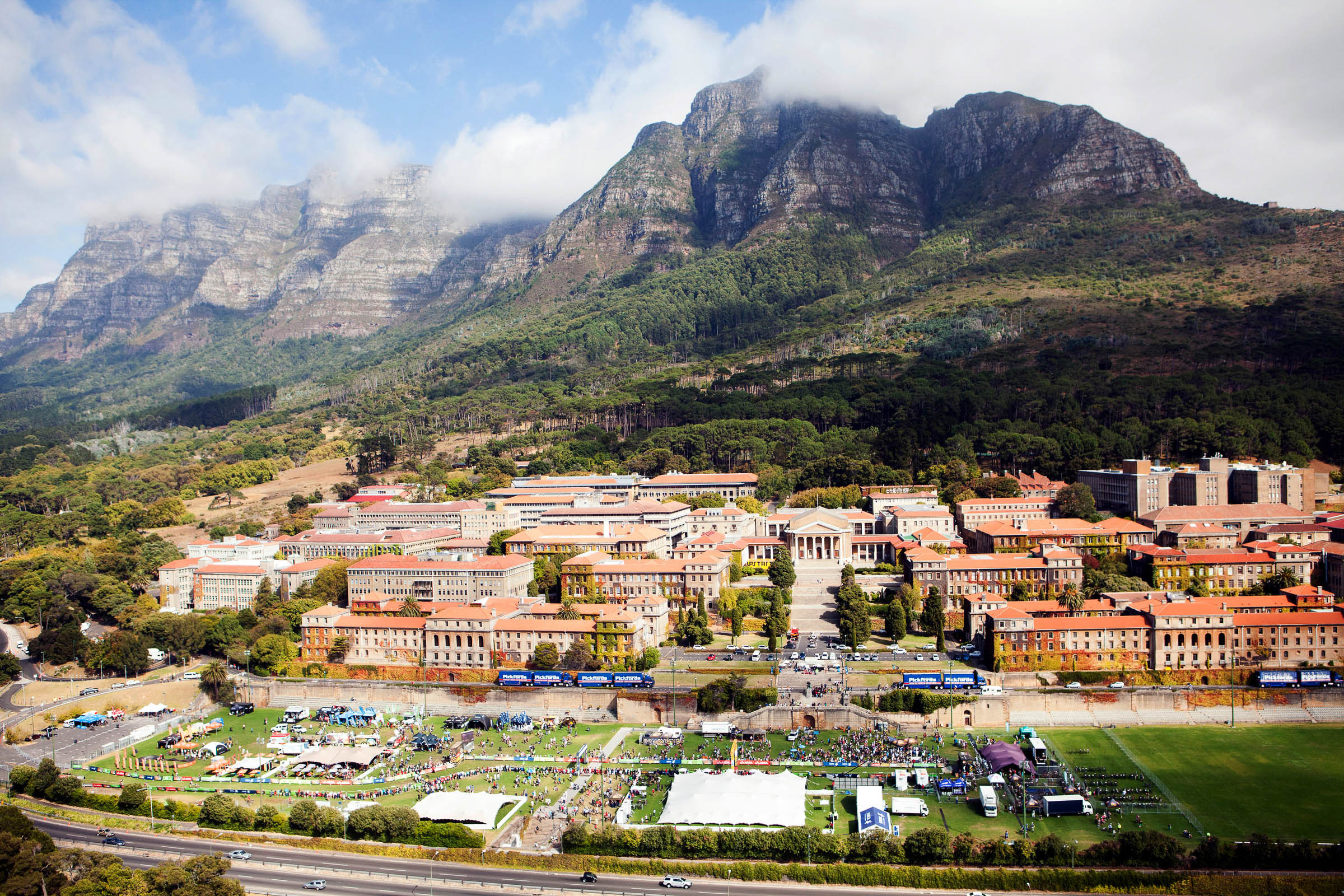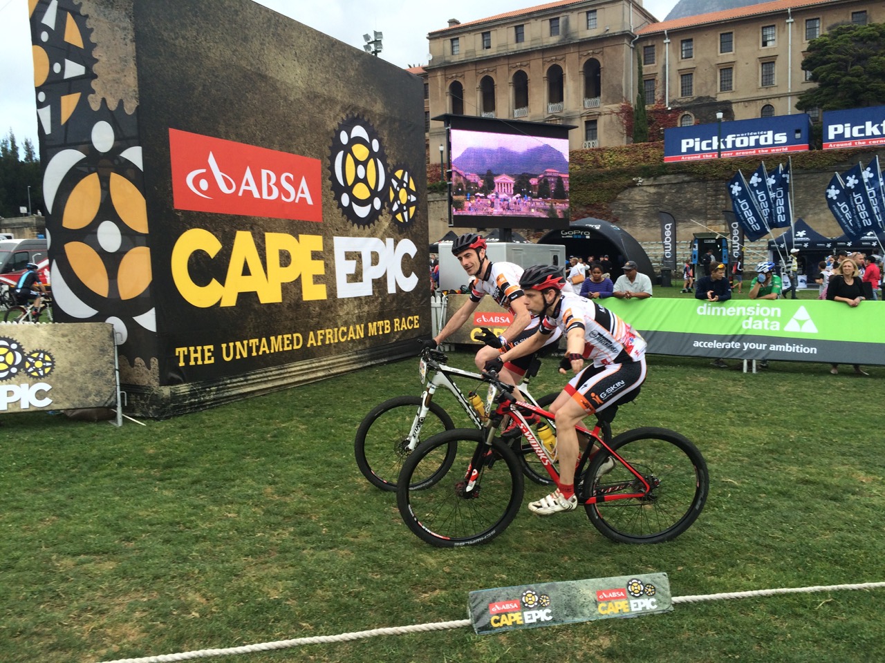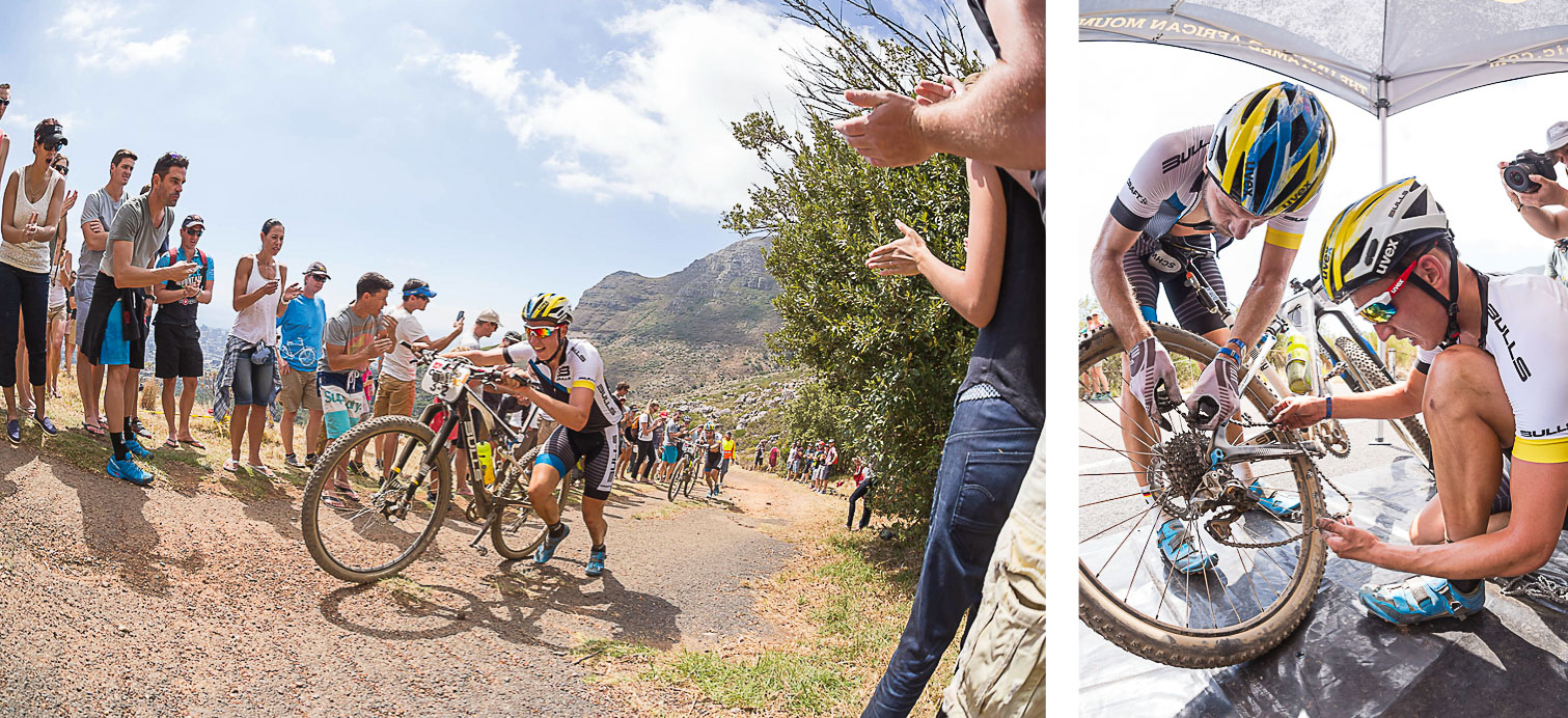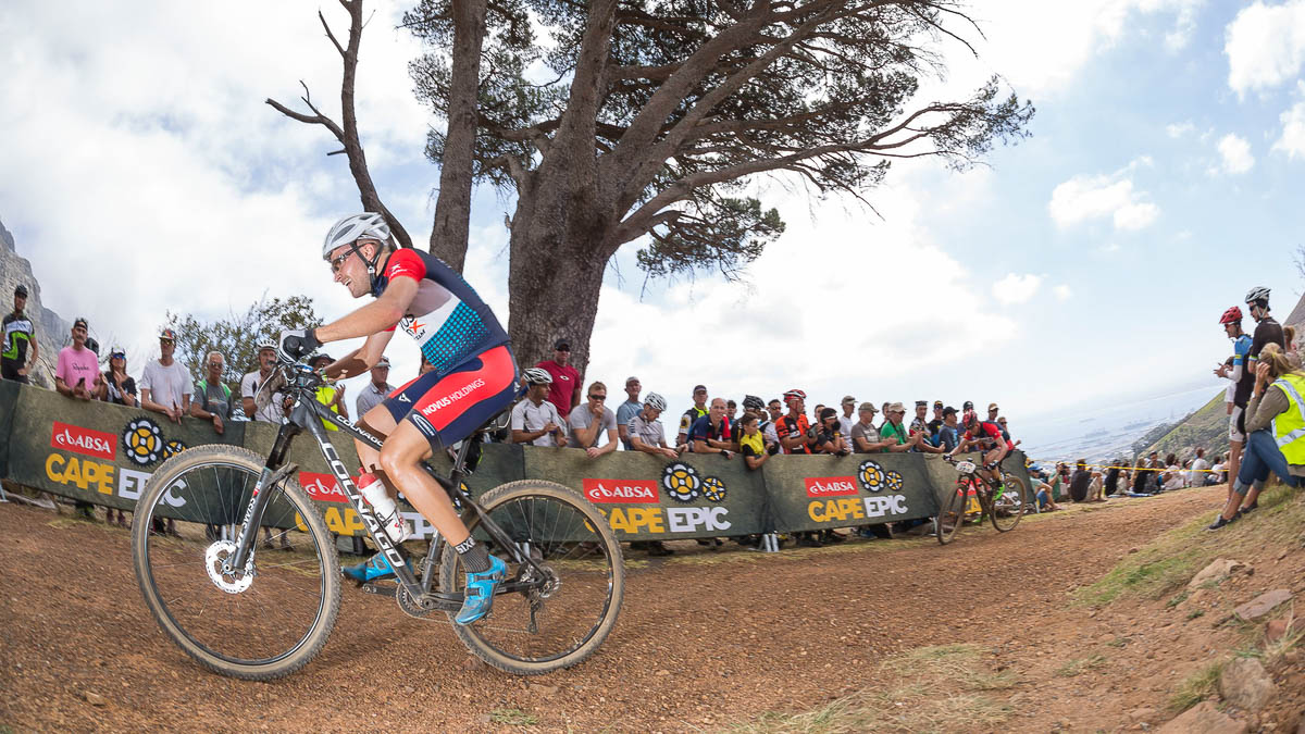 Le Cape-Epic 2015 a débuté ce dimanche par un prologue de 20km sur les hauteurs de Cape Town, avec une première partie montante jusque 450m d’altitude sur Table Mountain, puis une longue descente poussiéreuse baptisée poétiquement Plump Pudding avant de revenir dans le campus de l’université de Cape Town ! Beaucoup de coureurs ont décrit cette étape comme « sans aucun moment de repos ».