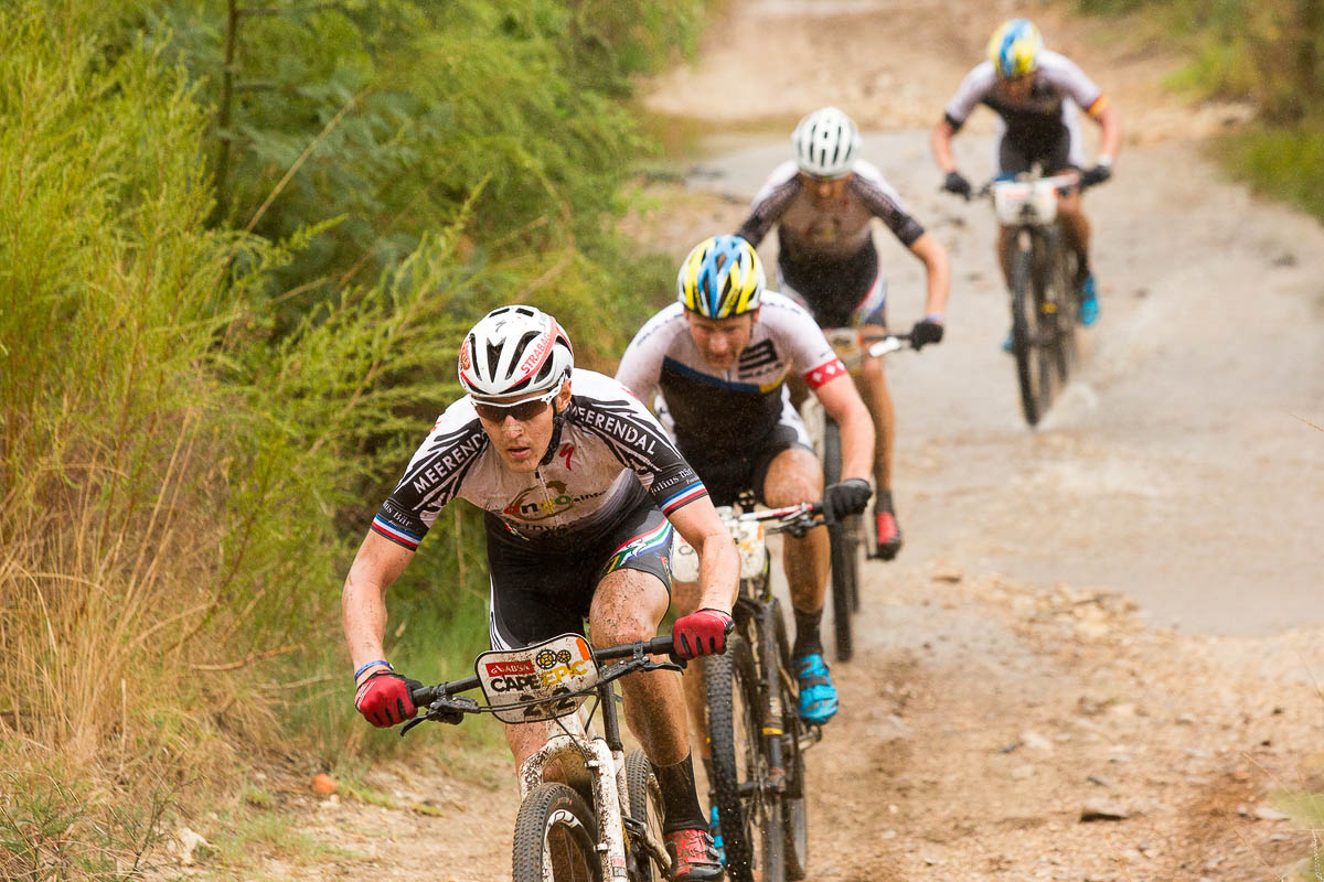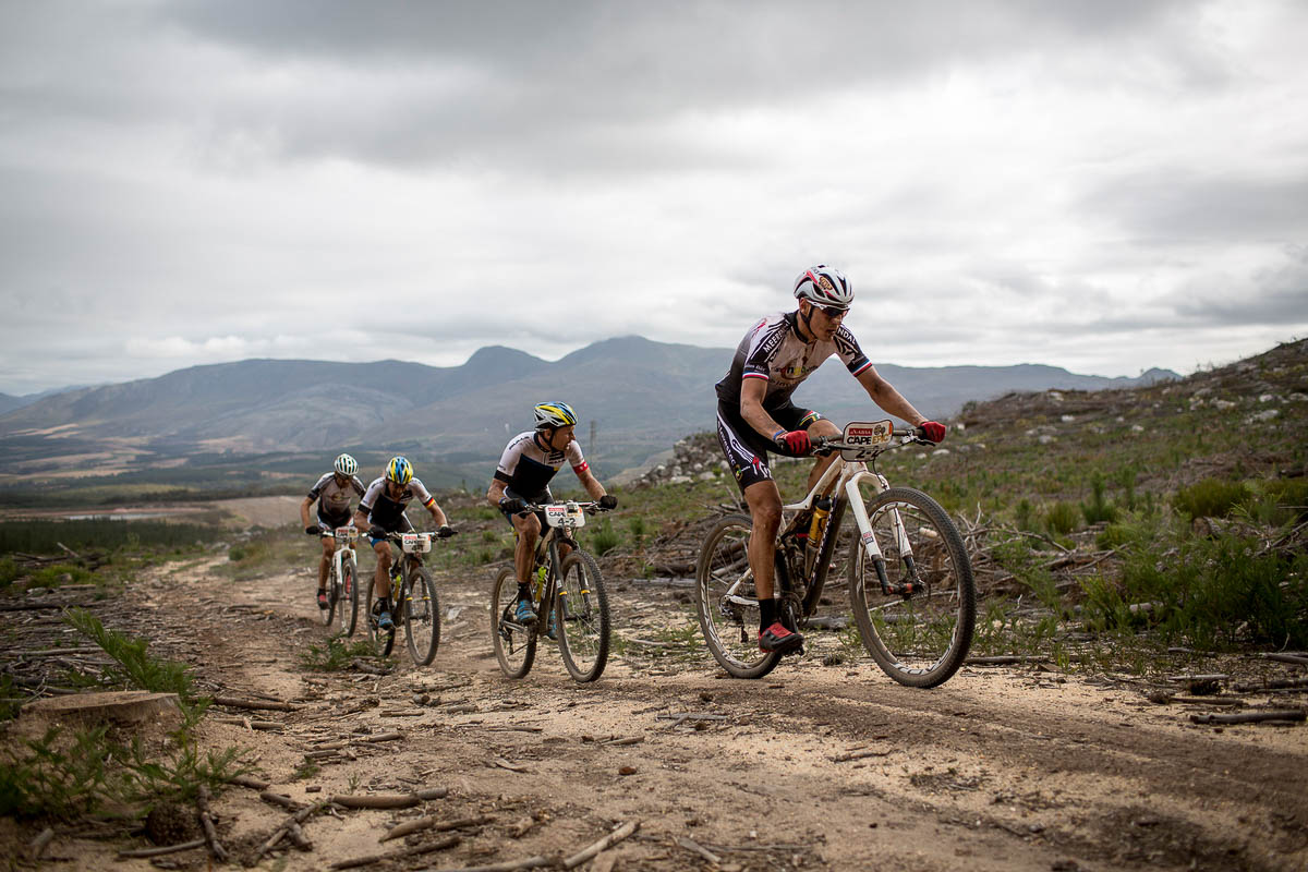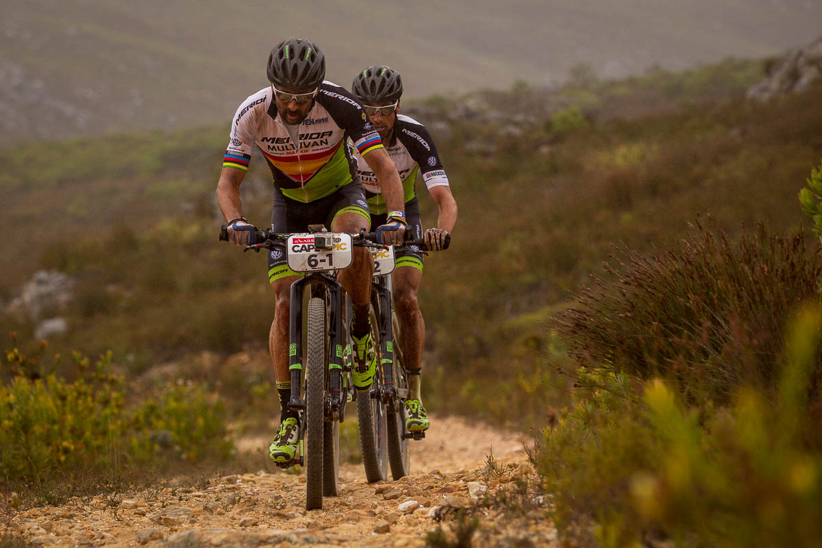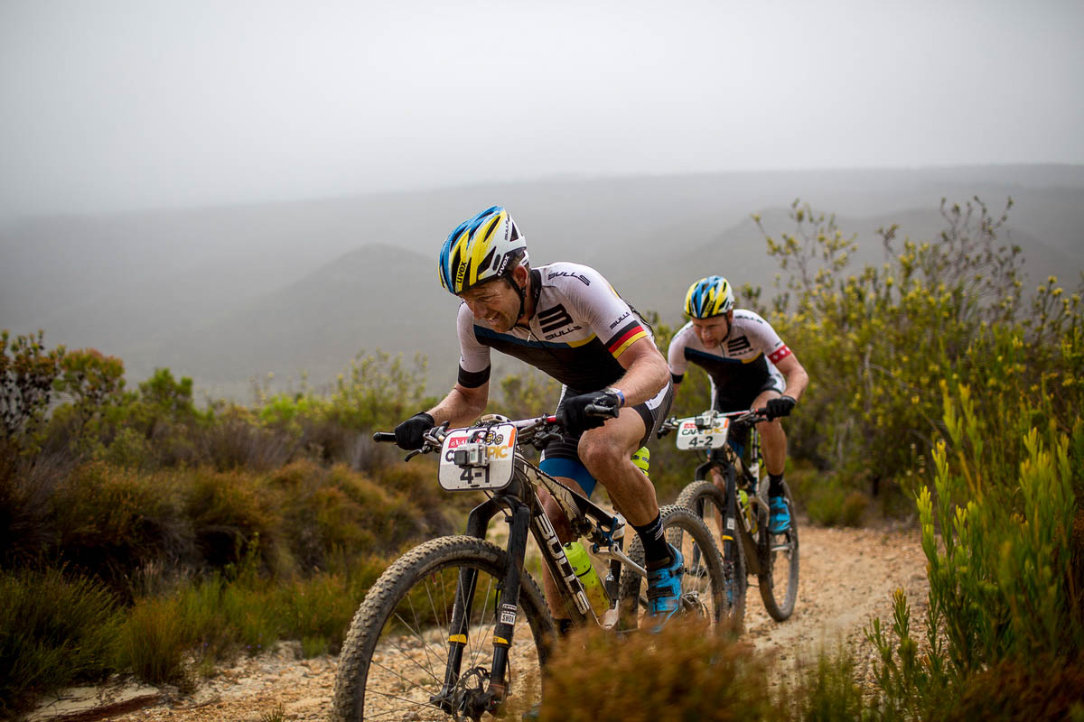 Deuxièmes aujourd’hui, le vainqueur 2014 Kristian Hynek et son coéquipier Alban Lakata (Topeka Ergon) ont essayé de dynamiter la course et de refaire leur retard. Ils se sont échappés dans la plus longue montée du jour, le Nuweberg, mais ils ont été accompagnés par Sauser et Kulhavy. Puis, à 12km, ils ont lâché prise et laissé filer le duo Specialized.