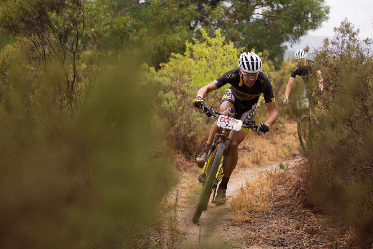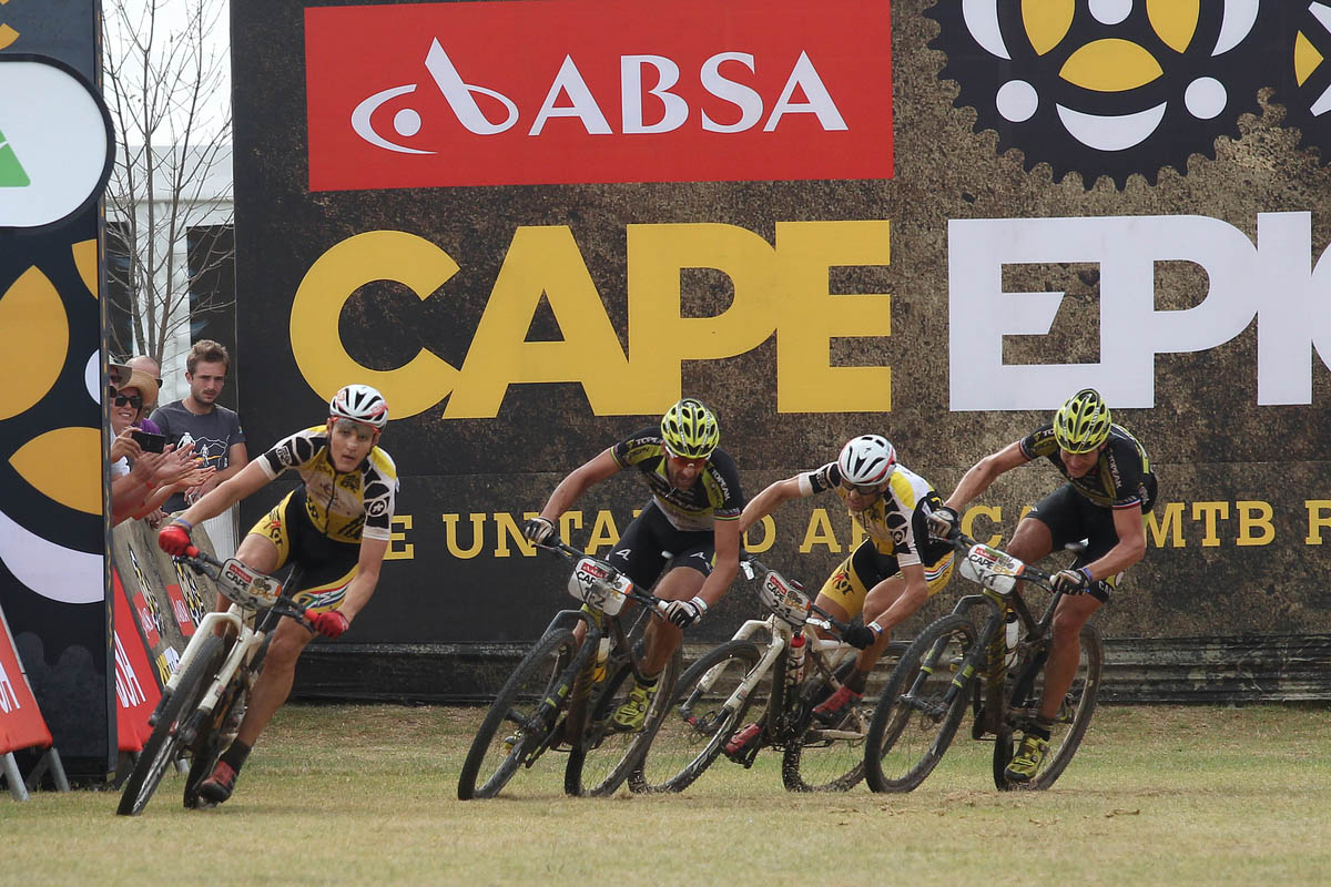 Hynek et Lakata étaient bien décidés à arrêter la série de victoires du team Specialized-Investec-Songo, mais Hynek a choisi une mauvaise ligne dans le dernier virage, offrant du même coup sa 36e victoire d’étape à Christof Sauser depuis sa première participation au Cape Epic en 2005.