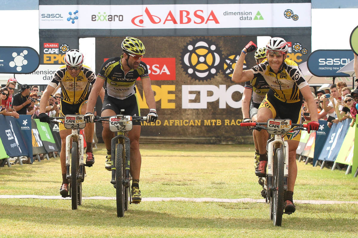 Christof Sauser devient ainsi le recordman de victoires sur l’épreuve, avec 5 succès, dont deux avec Jaroslav Kulhavy, avec qui il avait déjà fait équipe en 2013 peu après le décès de Burry Stander avec qui il devait normalement rouler cette année là. « Dans les 5 derniers kilomètres, j’ai su qu’on l’avait fait. On a gagné ce Cape Epic. J’ai savouré et le me suis rappelé tous les bons moments que j’ai déjà eu sur cette course. Puis, quand on a passé la ligne, ça a été un grand soulagement. Le record de victoires ? C’est sympa, oui, mais quelqu’un le battra un jour. Peut-être que quand je serai vieux et que je me remémorerai ces souvenirs, je prendrai conscience de ce que cela signifie réellement, mais là je veux juste profiter de l’instant », a expliqué Sauser sur la ligne.