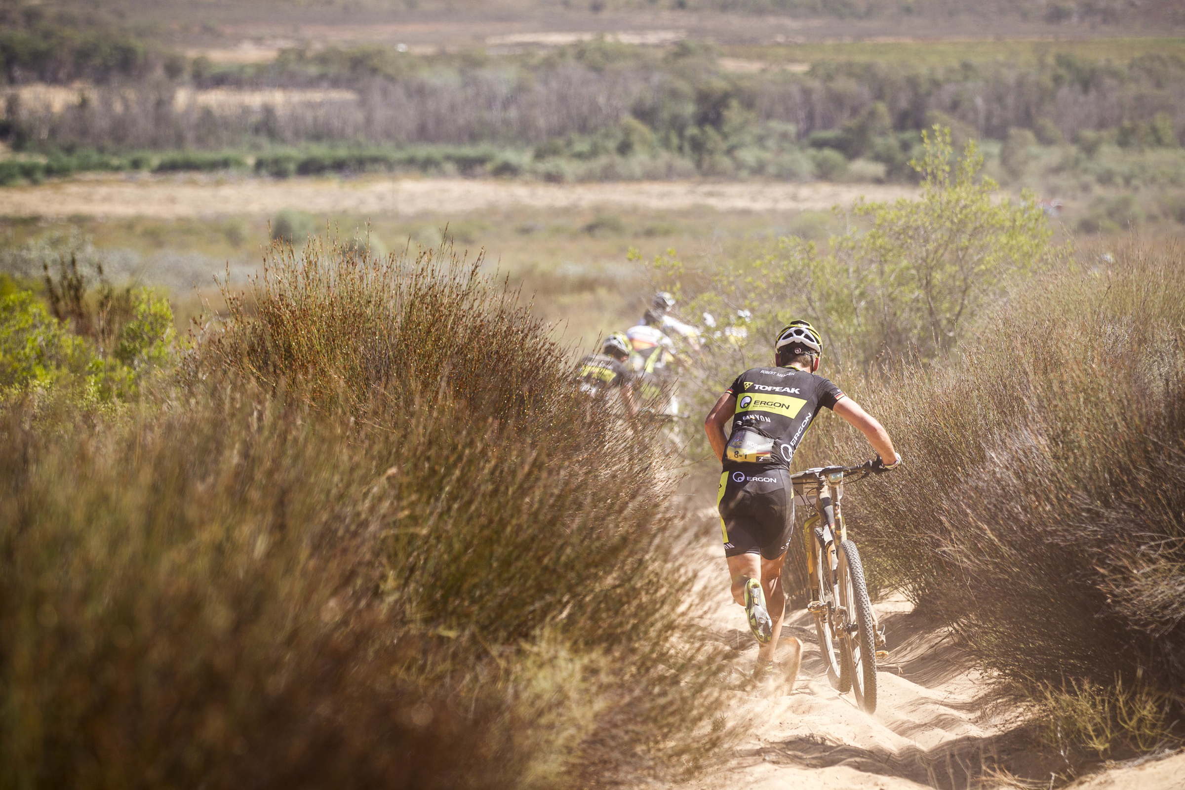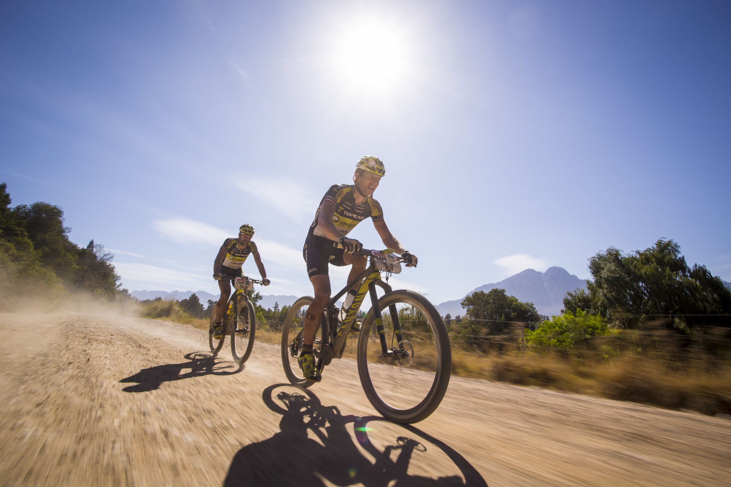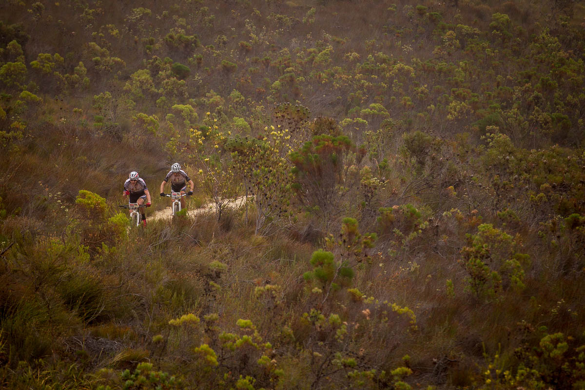 Le vainqueur sortant Kristian Hynek et son nouveau coéquipier Alban Lakata (Topeka-Ergon), récents vainqueurs de l’Andaloucia Bike Race, ont pris un départ prudent et terminent 7e mais sans perdre trop de temps. Comme le dit Hynek, « il ne faut pas prendre de risques aussi tôt car on ne peut pas gagner le Cape Epic pendant le prologue, mais on peut tout y perdre ». Leurs coéquipiers Robert Mennen et Jeremiah Bishop, en photo ci-dessus, sont 9e.