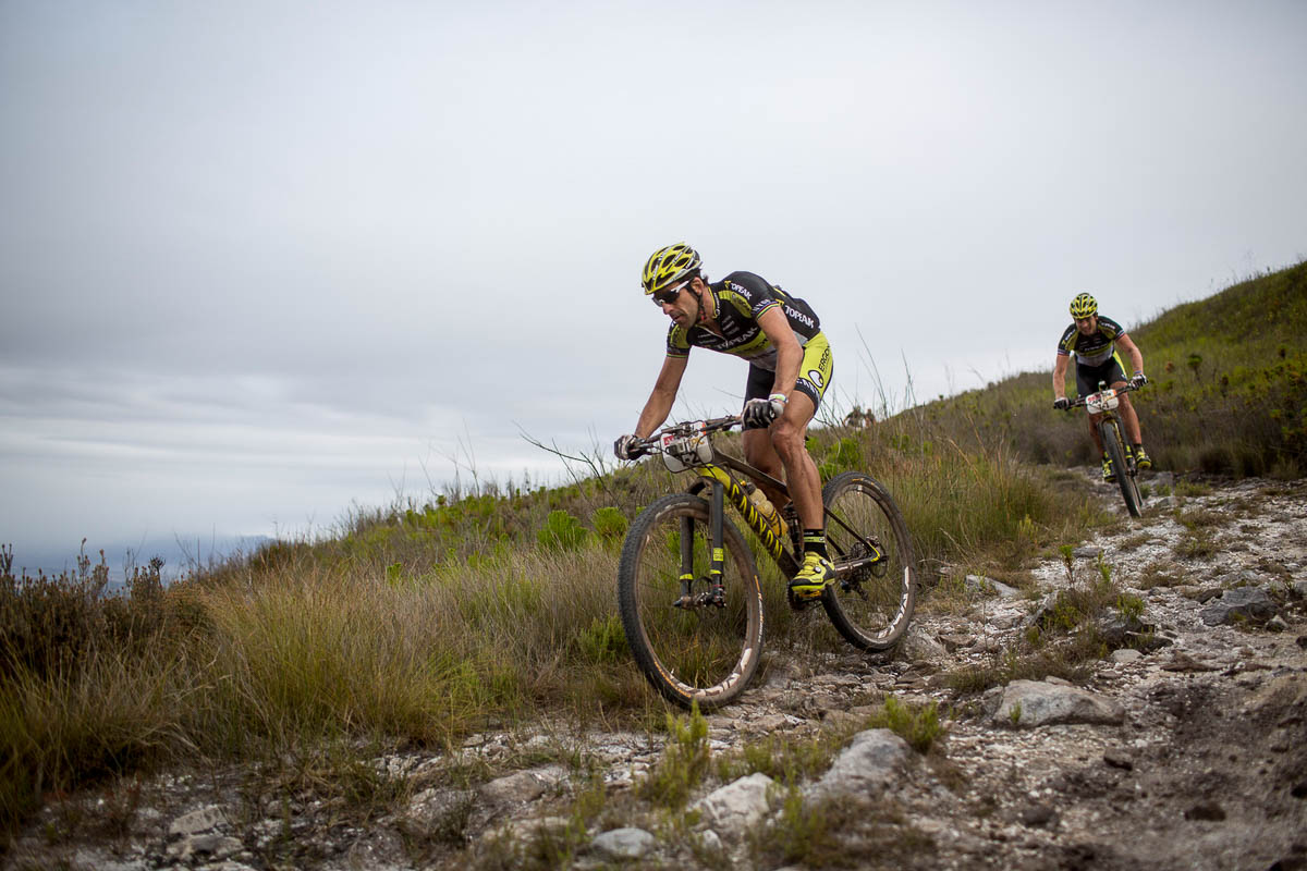 Leur journée n’a pour autant pas été de tout repos, notamment lorsqu’une grosse branche s’est coincée dans la roue arrière de Kulhavy, endommageant légèrement son dérailleur arrière. « Je ne me suis pas rendu compte de ce qui lui arrivait, mais j’ai réalisé que Jaroslav n’était plus derrière moi« , expliquait Sauser après l’arrivée. « Comme on ne peut pas revenir en arrière, je ne savais pas ce qu’il s’était passé. J’ai un moment cru que le Cape Epic pouvait être terminé pour nous, puis j’ai été soulagé de voir apparaître mon co-équipier ! »