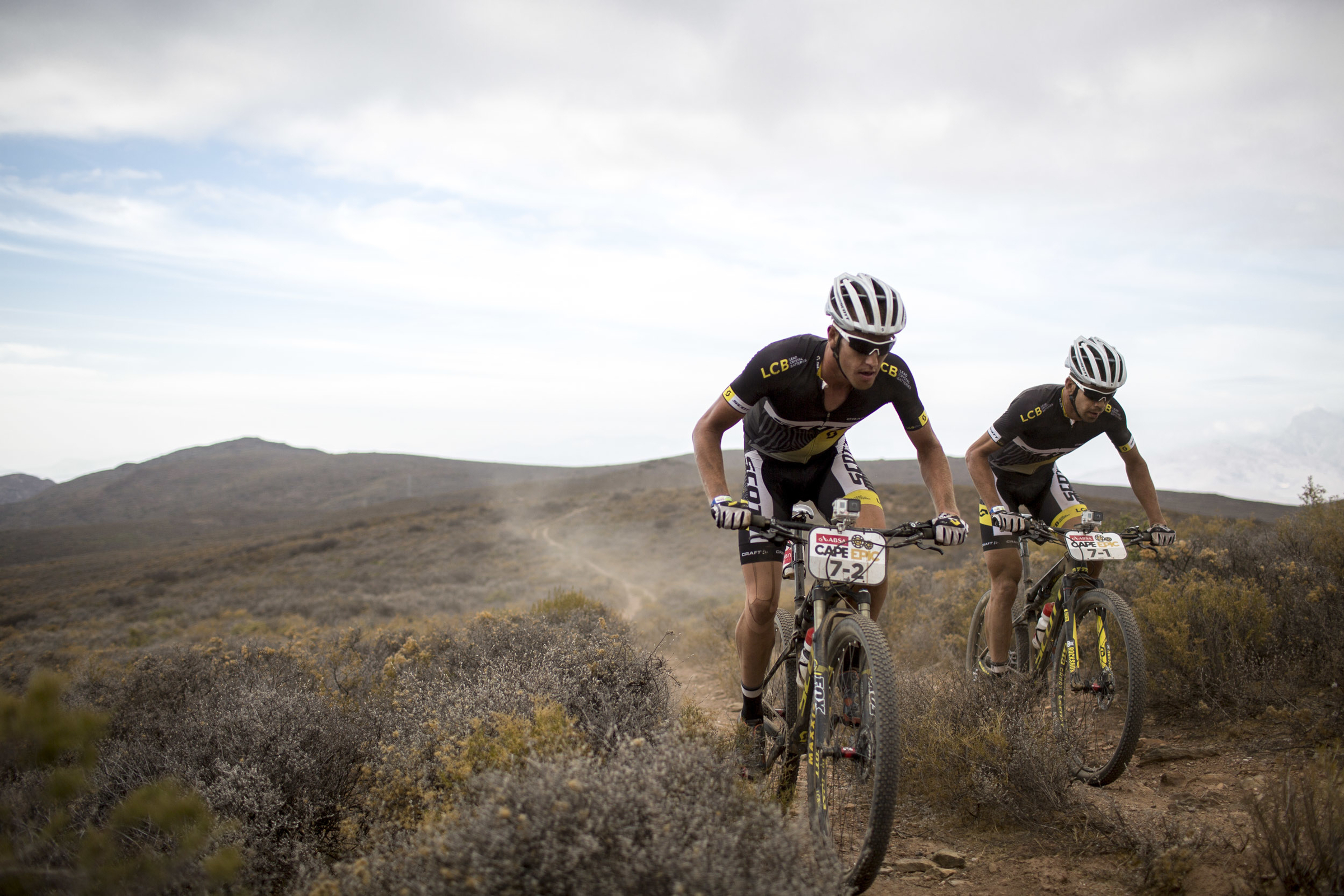 Karl Platt et Urs Huber ont longtemps roulé en groupe avec Sauser et Kulhavy. Mais, même s’ils ont été épargnés par les ennuis mécaniques, ils n’ont pas pu profiter de la petite avance laissée par la crevaison des coureurs Specialized (2 minutes à la mi-course). Ils grimpent d’une place au général et restent au contact de la tête de course, avec seulement 33 secondes de retard. La conclusion de Platt : « Je n’aurais pas pu aller plus vite aujourd’hui. Dès la première côte, c’est parti à fond avec plein de coureurs encore frais et super motivés. Je crois qu’on va avoir un Cape Epic très rapide cette année ! »