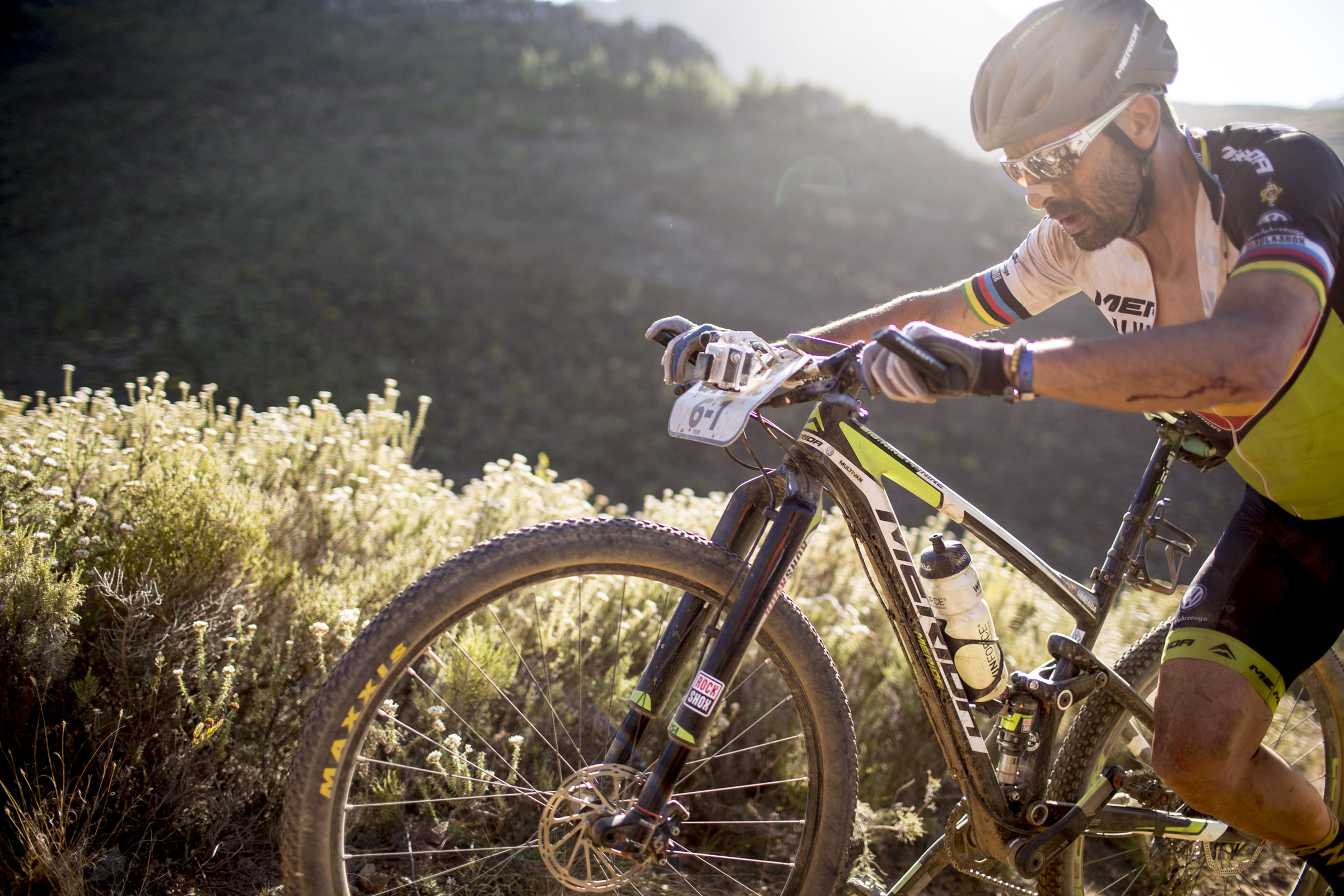 Malgré une crevaison lente à mi-parcours, rapidement colmatée avant un changement de pneu au ravito 2, Sauser et Kulhavy s’imposent avec 25 secondes d’avance ce mercredi, augmentant encore leur avance au général et la portant à plus de 7 minutes. La situation est pour l’instant idéale afin que Sauser devienne le premier à remporter 5 fois le cape Epic ! Mais il reste encore 4 étapes…
