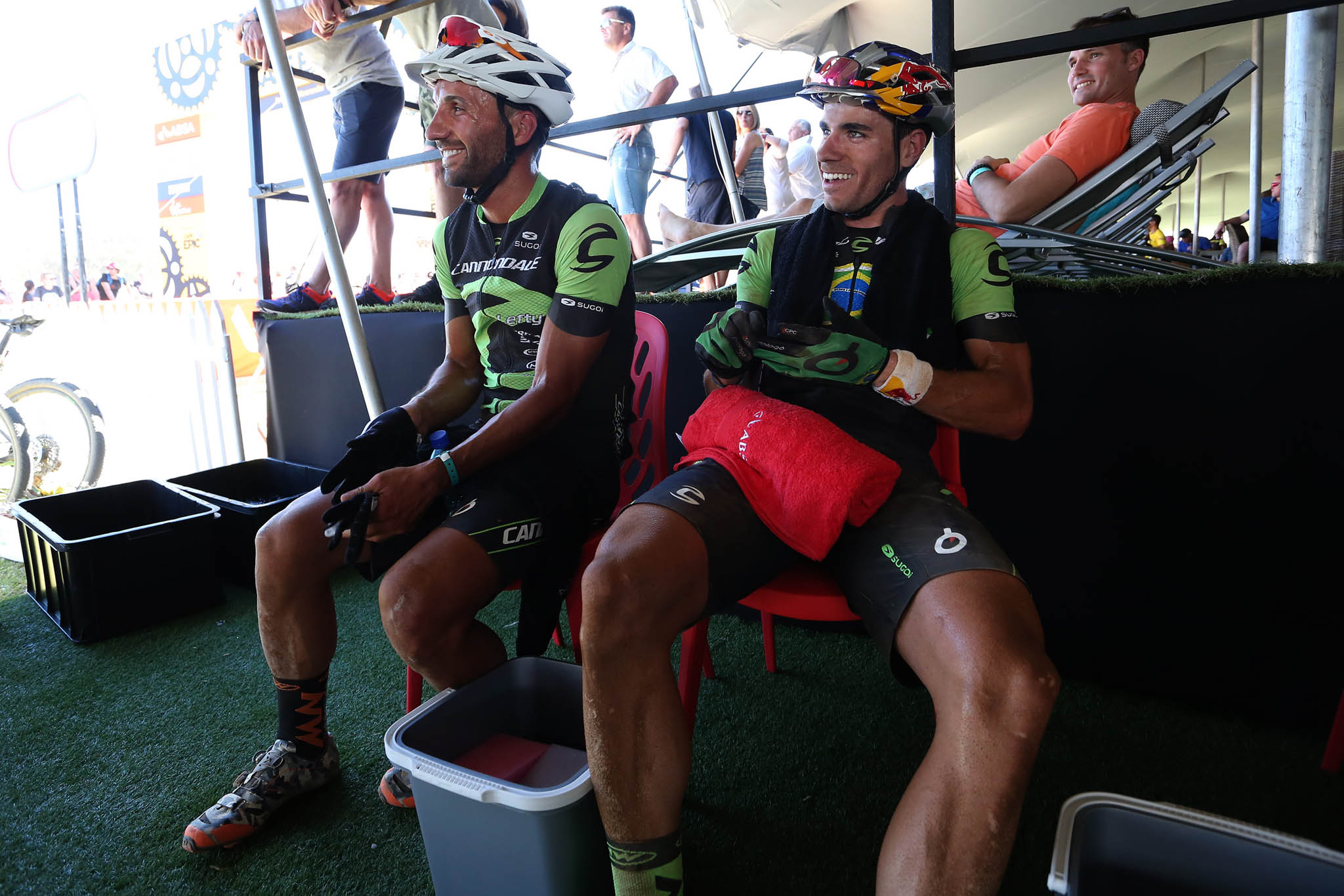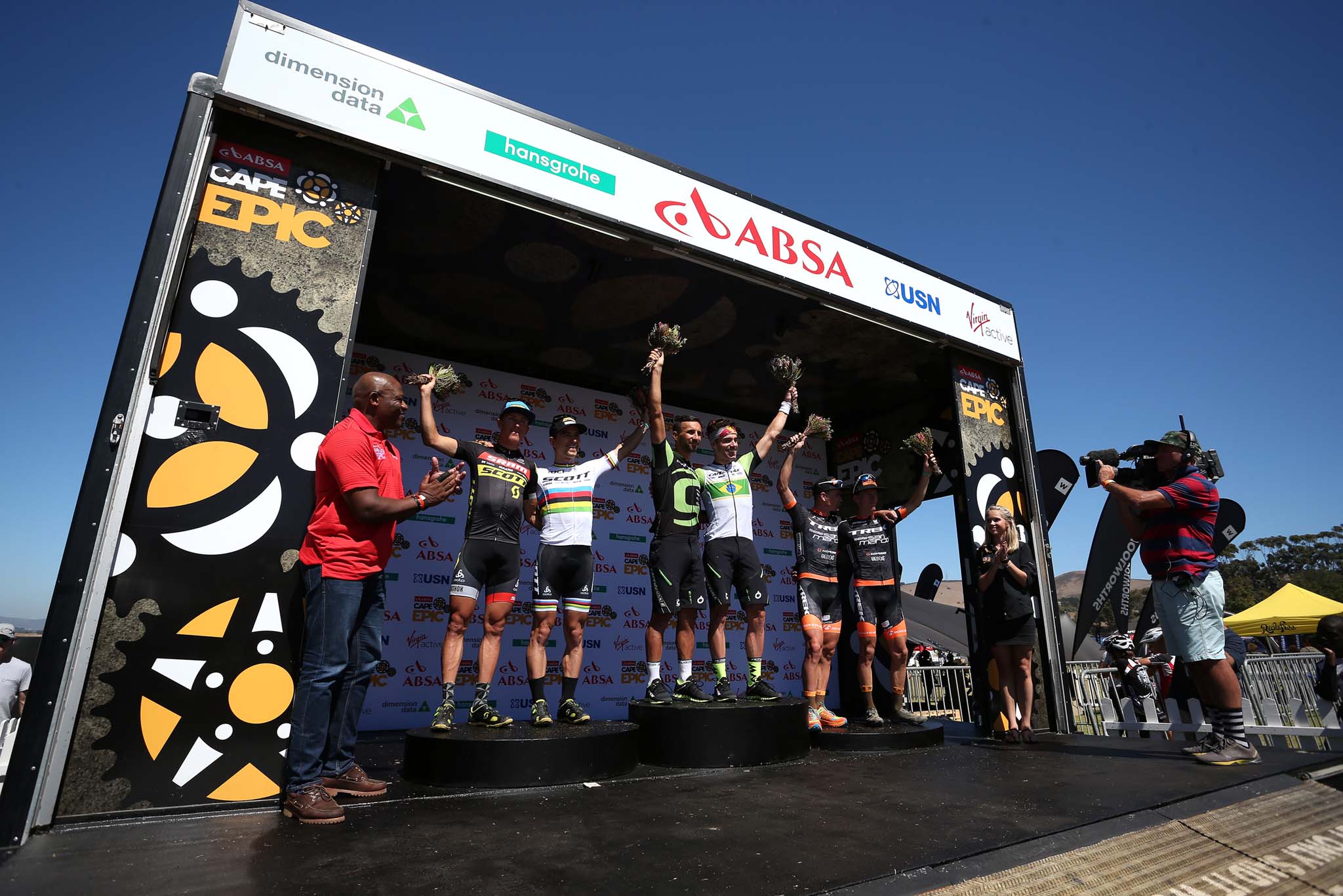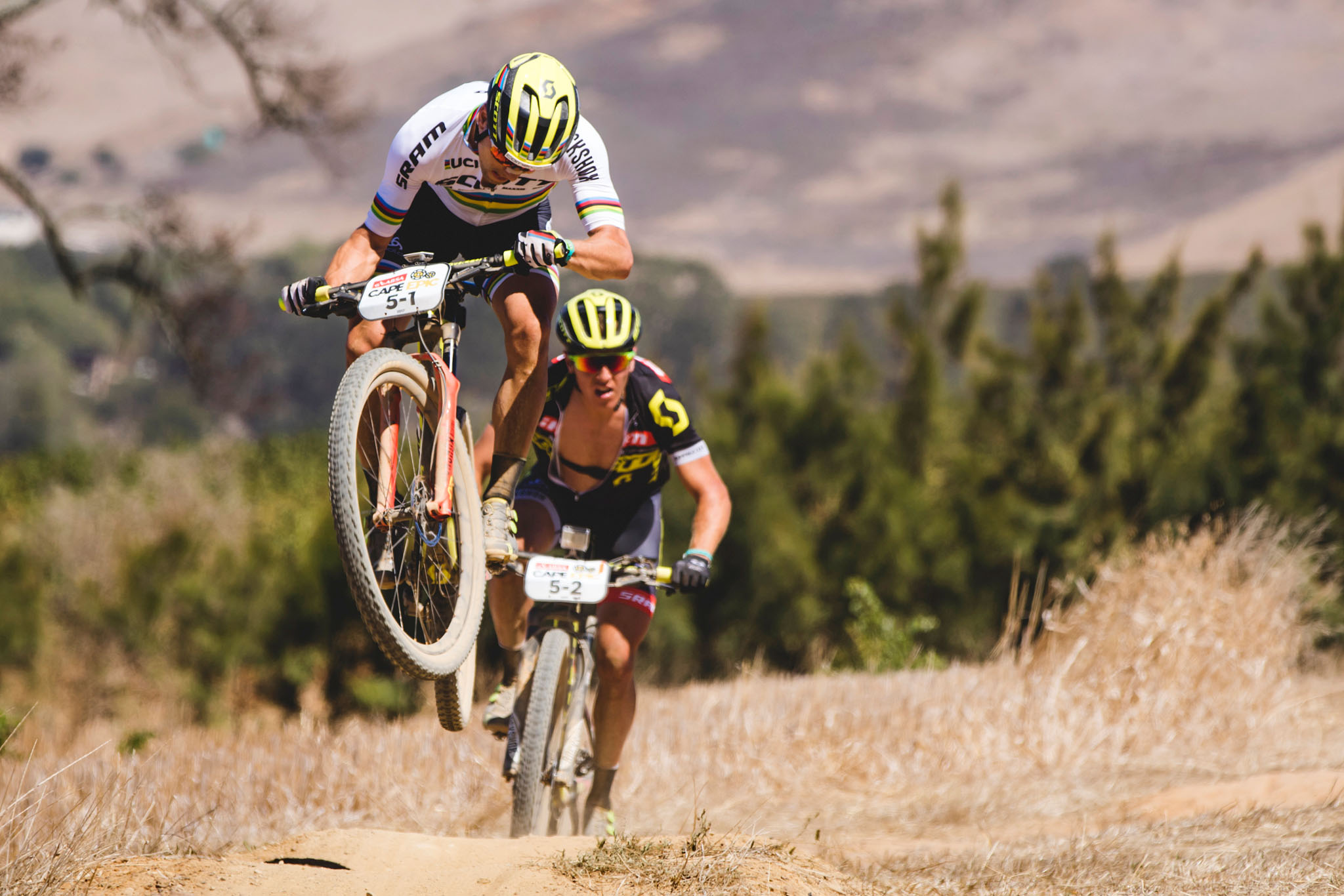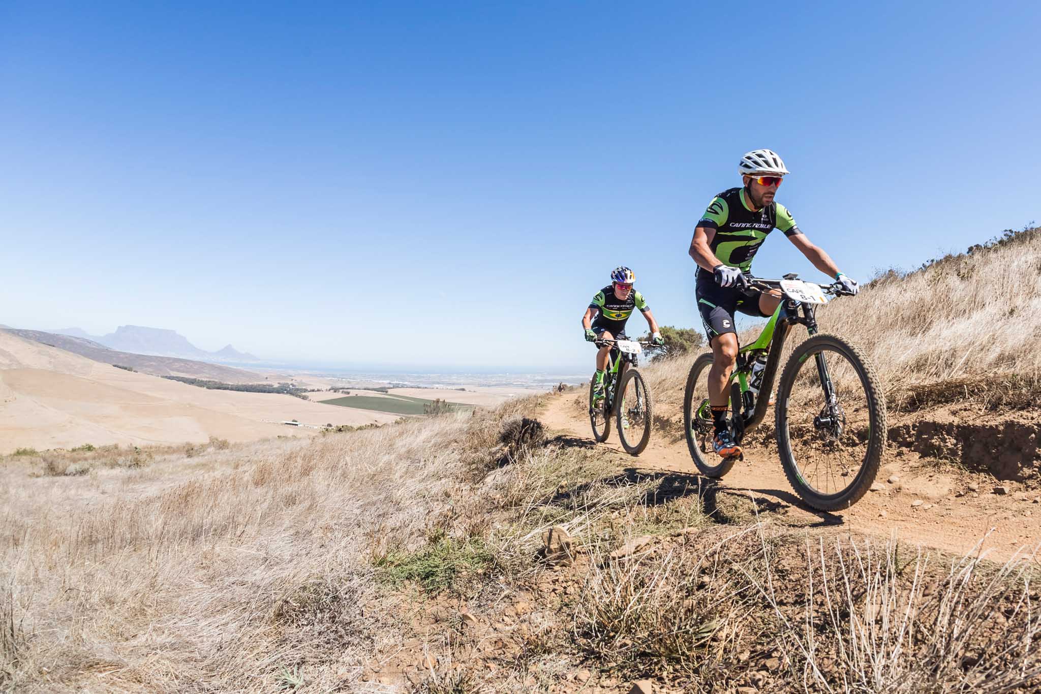 En 2016, l’Allemand Manuel Fumic et le Brésilien Henrique Avancini remportaient l’étape finale du Cape Epic. Les deux hommes jouent la continuité en s’imposant aujourd’hui sur le prologue, avec un grand sourire communicatif ! Il n’aura fallu aux représentants du team Cannondale Factory Racing XC que 1h, 1 minute et 52 secondes pour boucler les 26km de l’étape. Du côté de chez Bulls, les tenants du titre finissent à la 6ème position, avec 3 minutes et 23 secondes de retard.