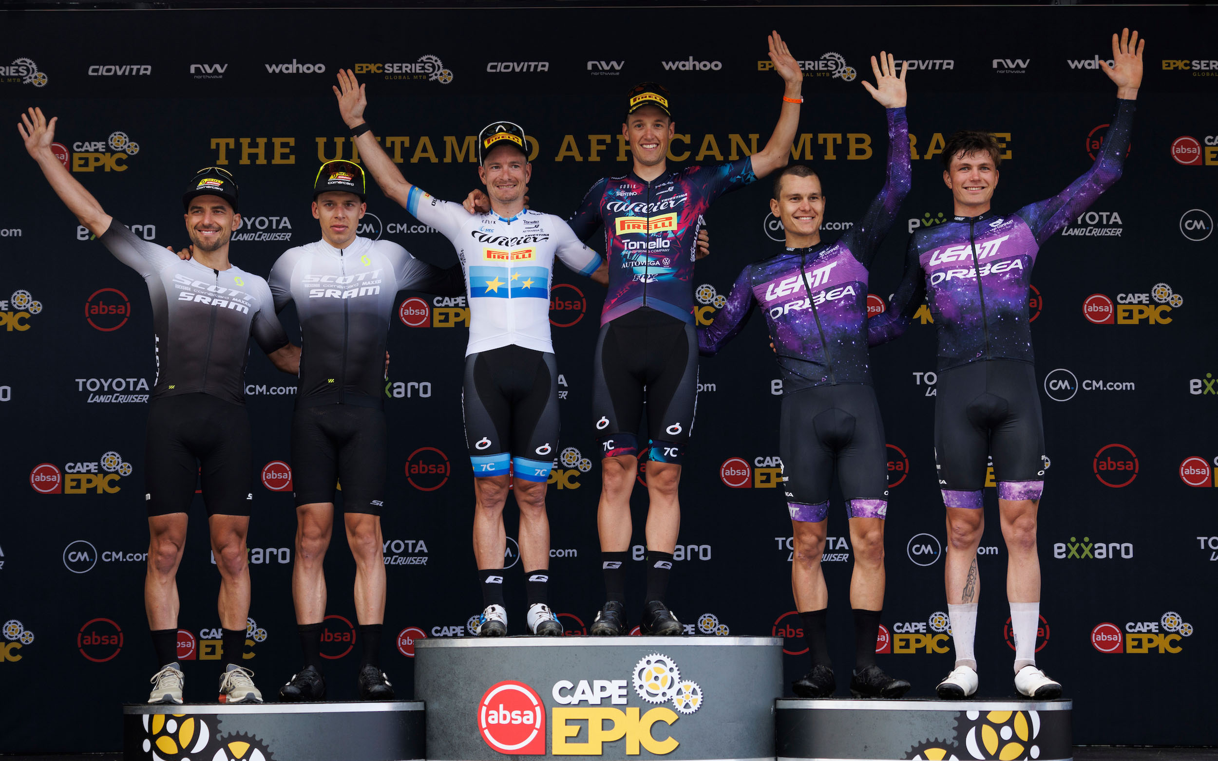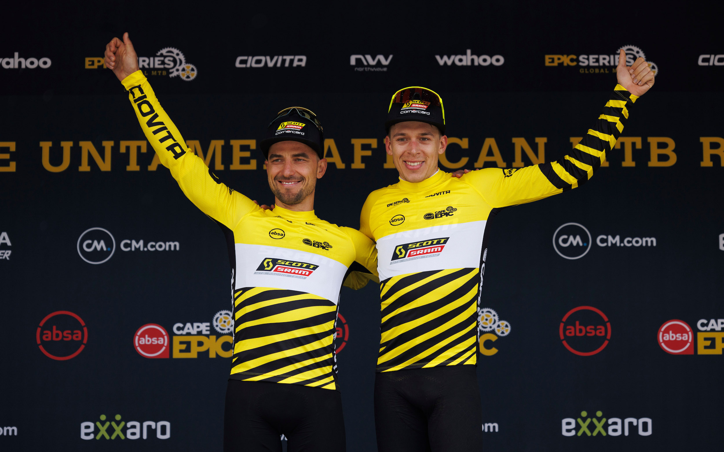 Le double vainqueur du Cape Epic, Nino Schurter, et son coéquipier Andri Frischknecht, s’offrent ainsi la 2e place, tandis que la troisième marche du podium accueille Georg Egger et Lukas Baum (Orbea X Leatt X Speed Company).