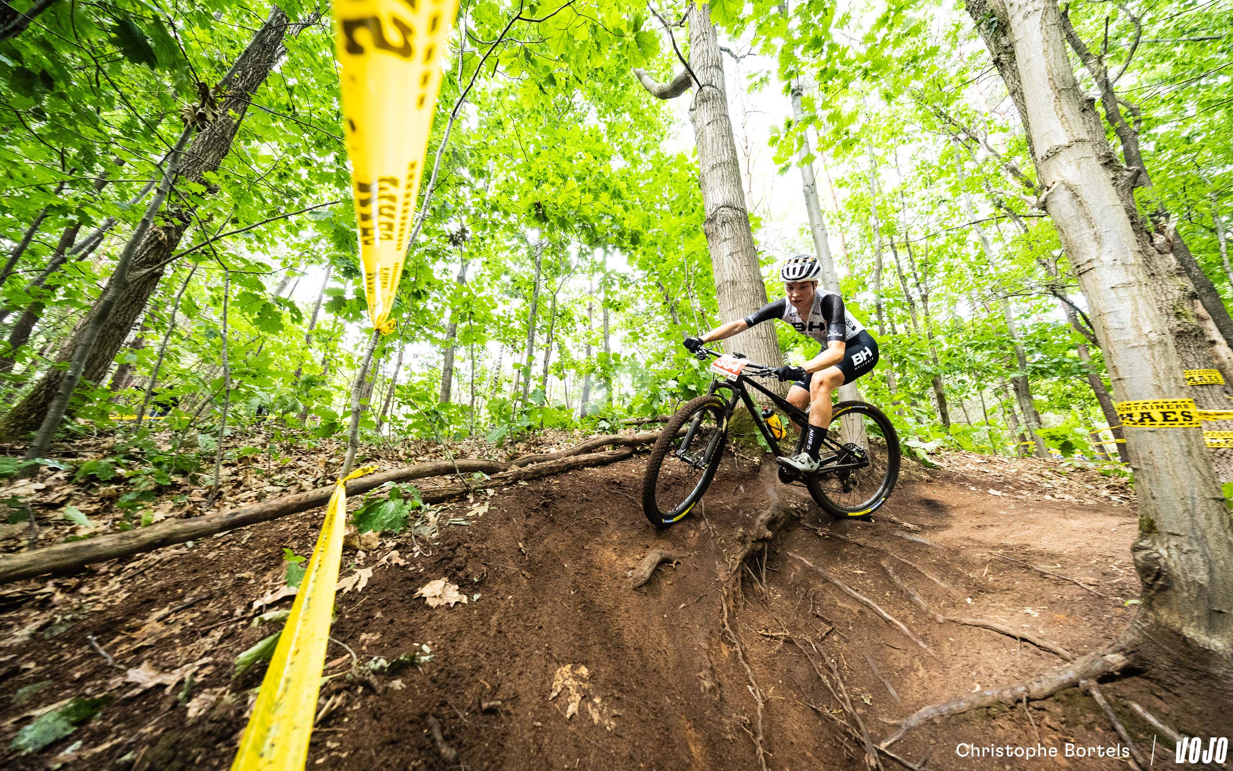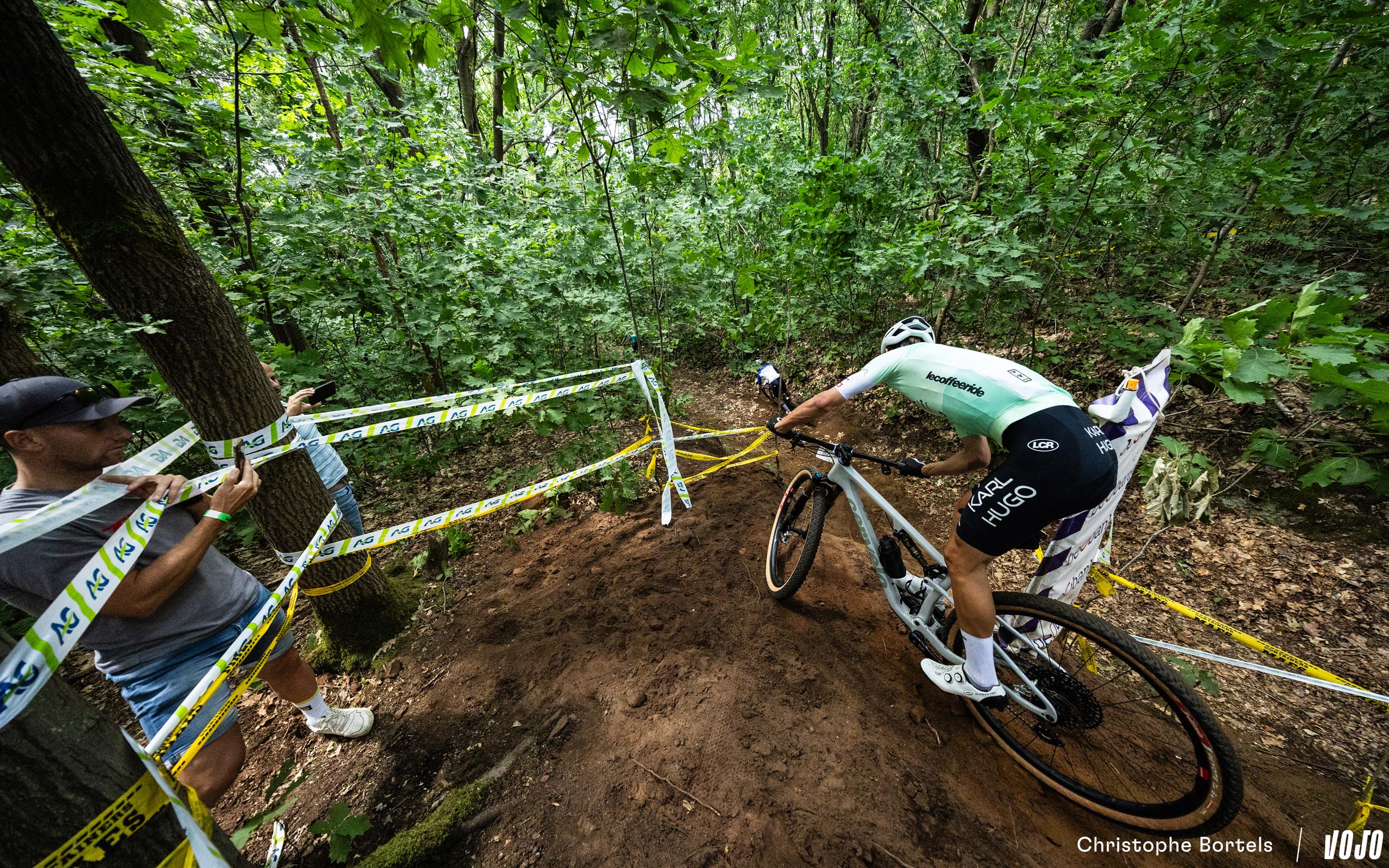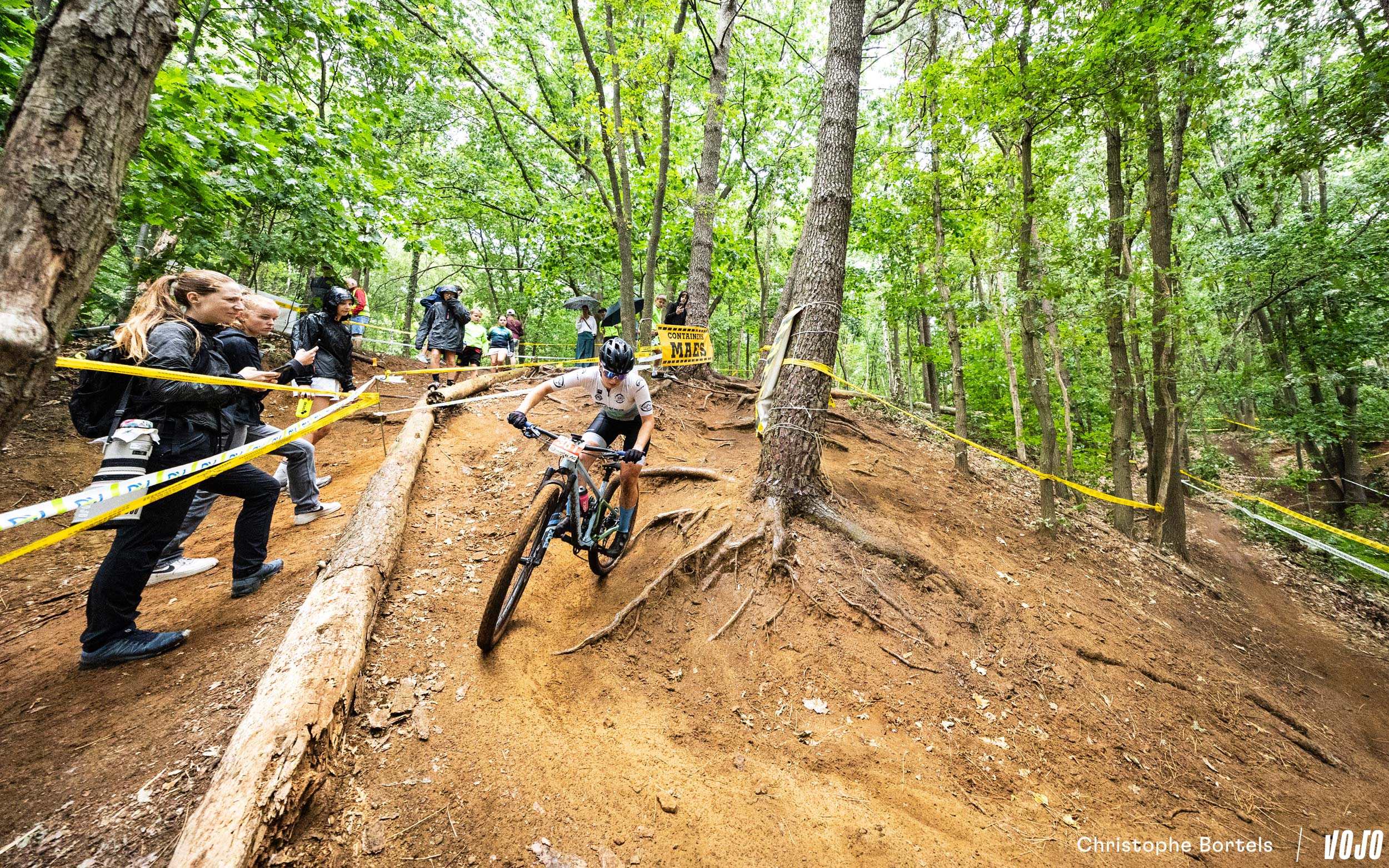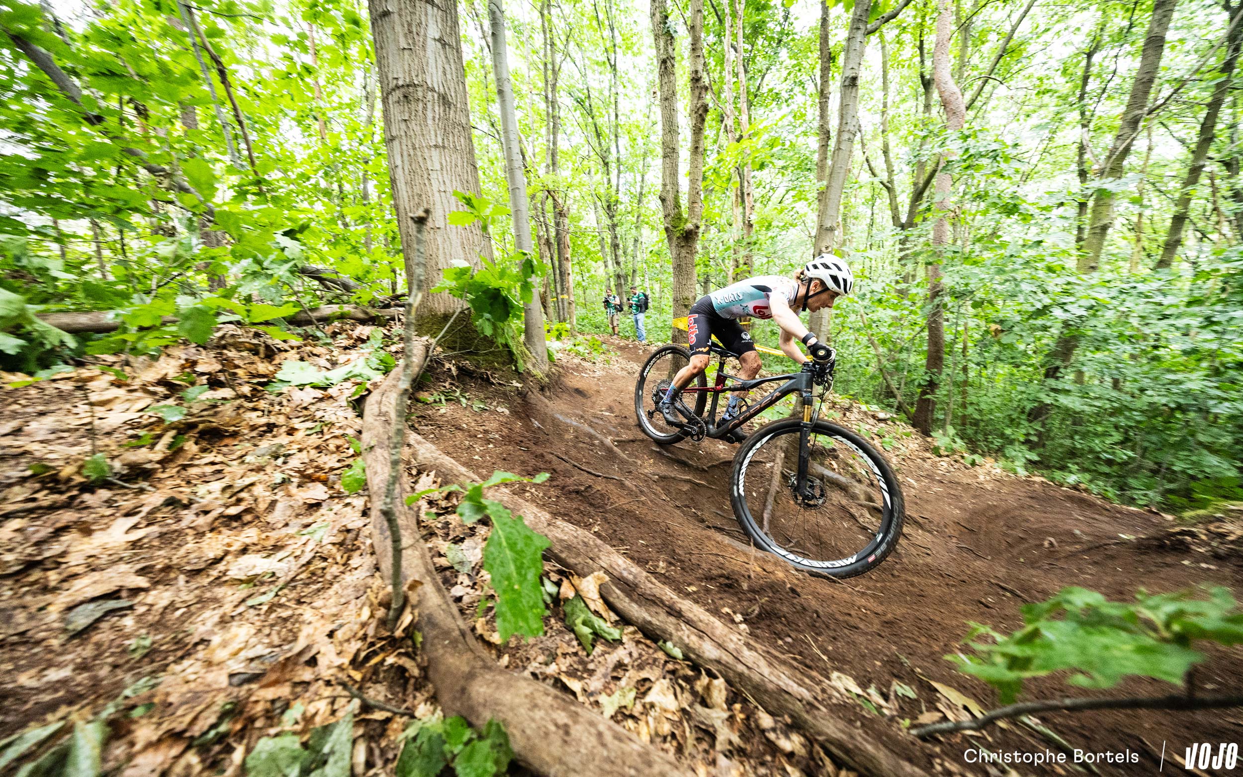 Difficile de prendre la succession d’Houffalize, qui reste un endroit mythique malgré ses défauts, alors que Beringen et son terril nous avaient proposé l’année dernière un sympathique terrain de jeu pour le XC. Cette fois, place à un parcours boisé de 5 km à deux visages : une première partie très roulante et rapide, sans véritable côte ou descente, puis une seconde moitié bien plus intéressante et exigeante, composée d’une succession de petites descentes/montées raides truffées de virages serrés, de sauts, de drops et de racines. Les puristes resteront dubitatifs face à ce circuit loin des standards modernes comme on en trouve en coupe du monde, d’autres comme nous répondront qu’un peu de variété ne fait pas de tort, et que dans tous les cas c’est toujours mieux que de ne pas avoir de championnats du tout !