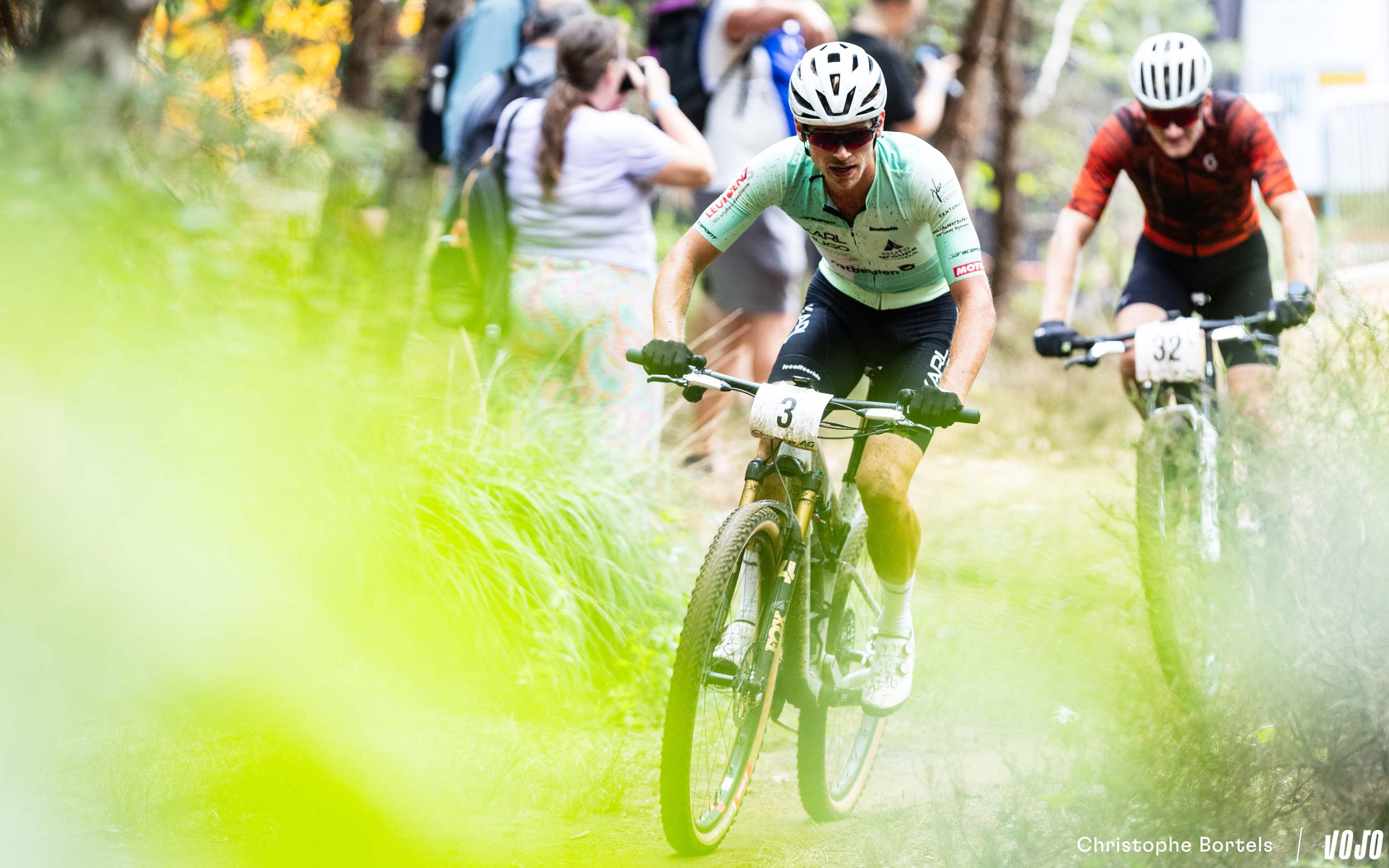 Au milieu du premier tour, deux coureurs se sont isolés aux avant-postes avec une dizaine de secondes d’avance : Pierre de Froidmont et Clément Horny, déjà en forme en début de XCC samedi.