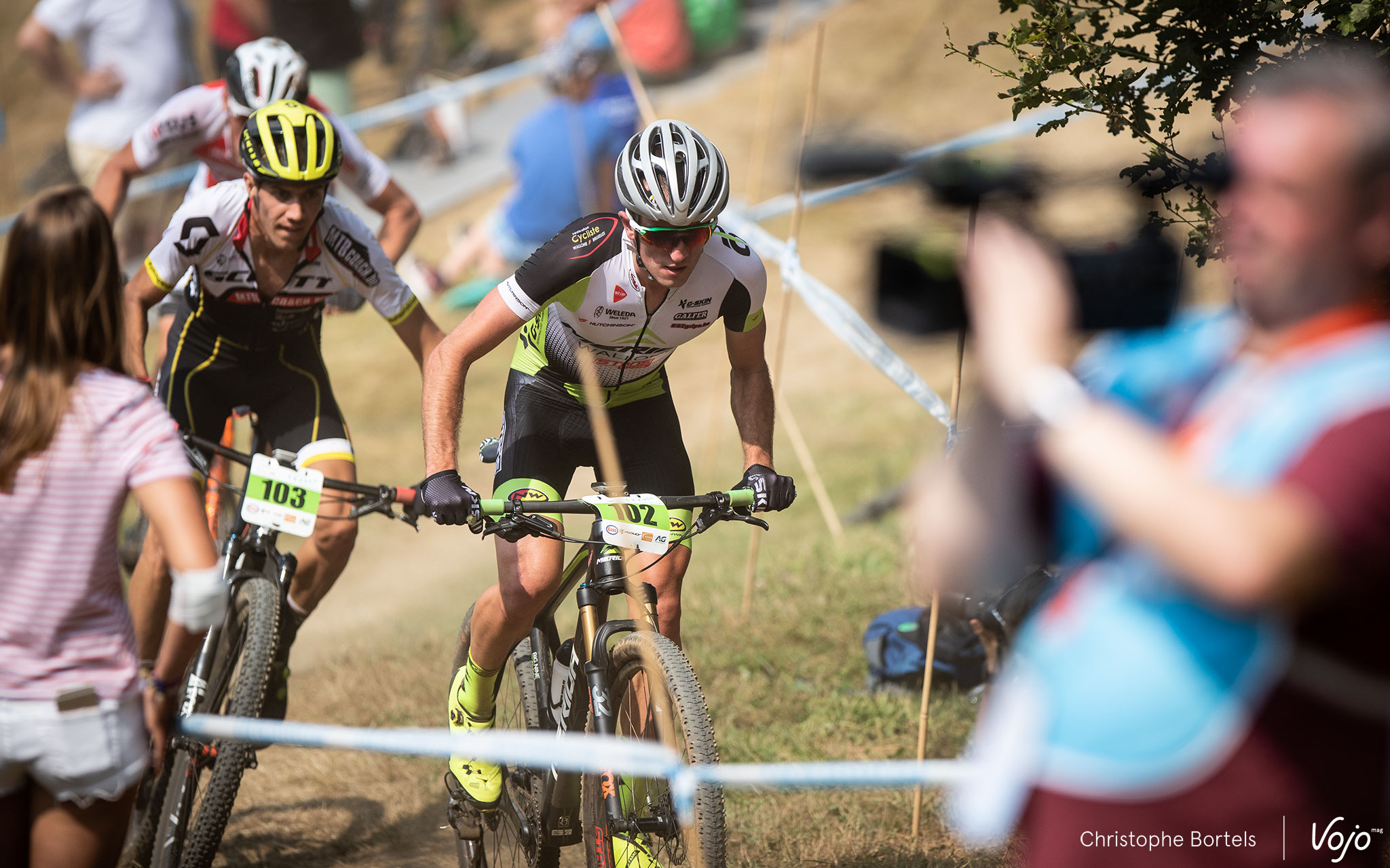 Pendant ce temps, il y a une autre course dans la course, celle des U23 partis quelques minutes après les Elites ! La lutte y est âpre entre Timo Kielich, Pierre de Froidmont et Nick Vanpol tous trois seuls en tête.
