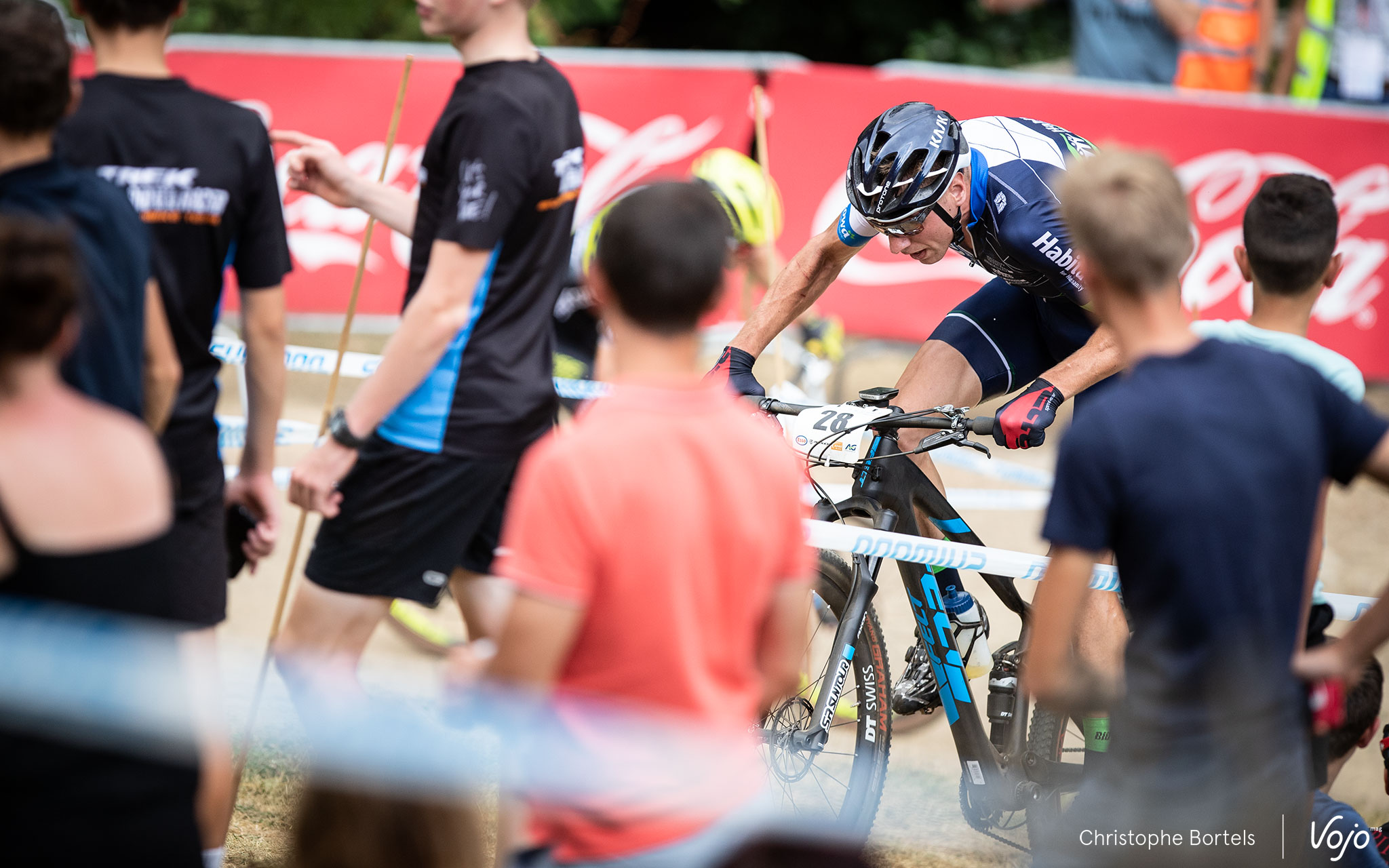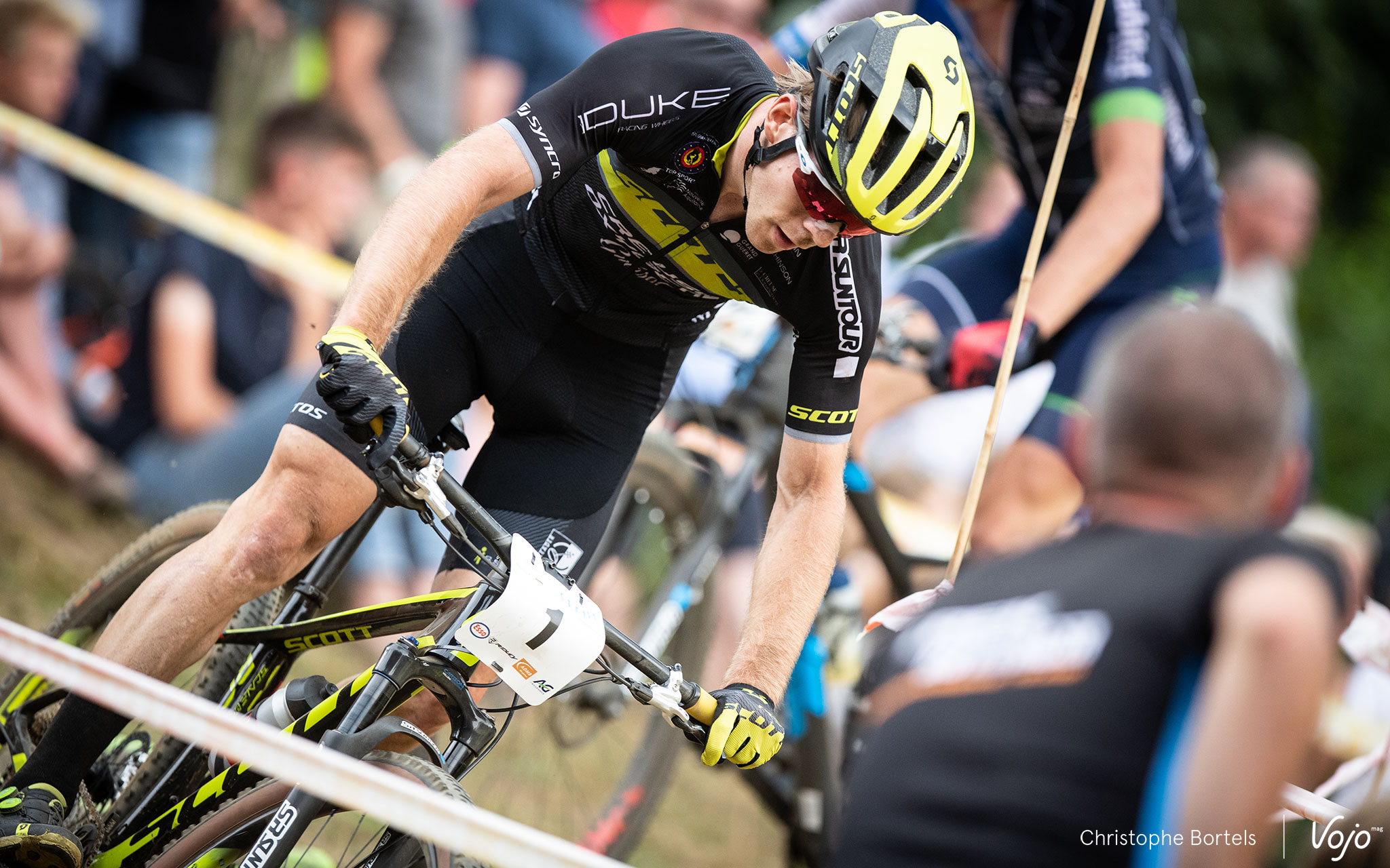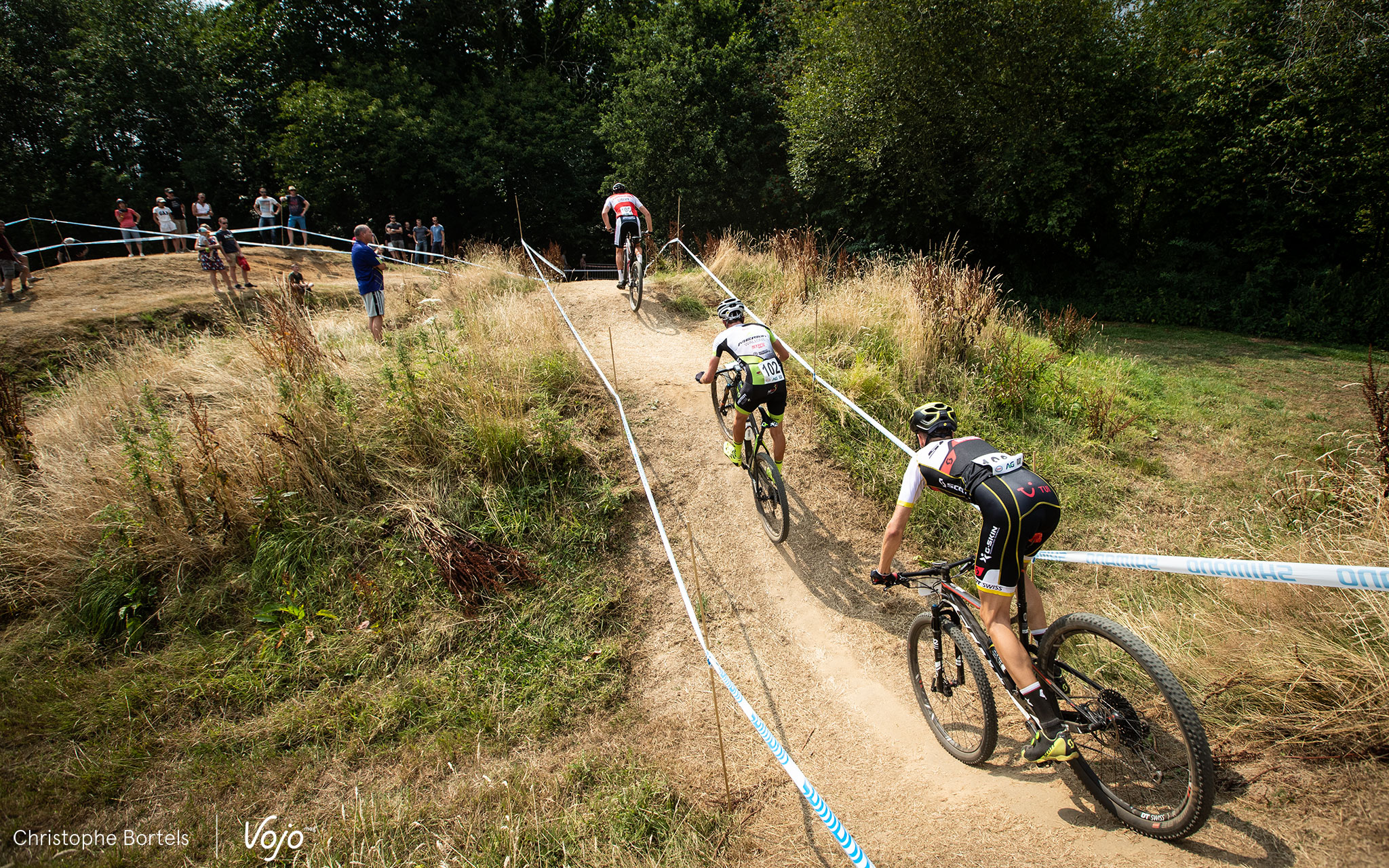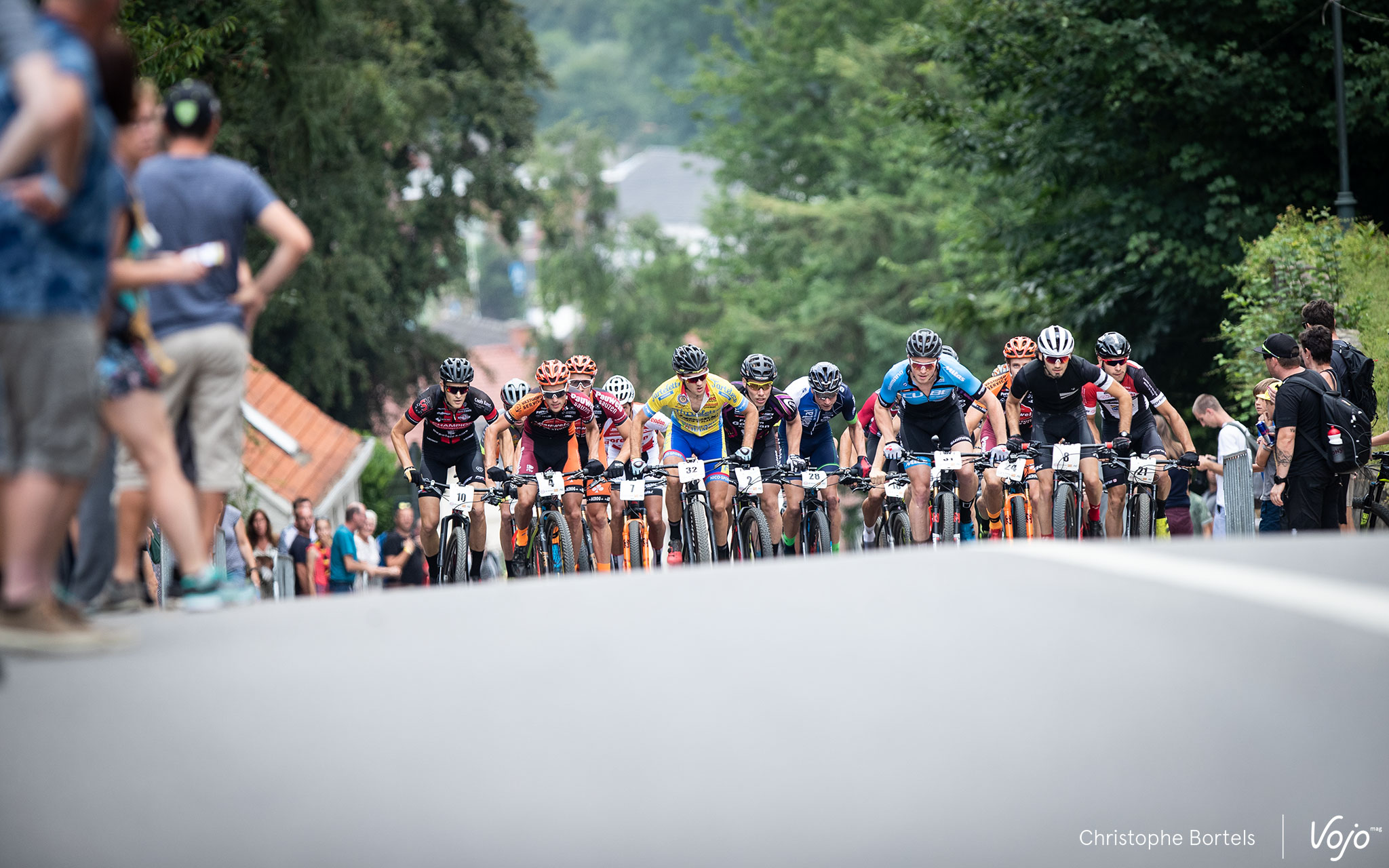 Sur le coup de 15h, c’est parti pour les Hommes Elites ! Ils sont 24 au départ et, en haut de la terrible première côte, on retrouve devant notamment Fabrice Mels (n°10, Champion du Monde de XCE en 2014), Jens Adams (n°4), Tom Meeusen (n°7), Ruben Scheire (n°32), Bart De Vocht (n°2), Kevin Panhuyzen (n°28, médaillé d’argent en 2017) ou encore Robin Vanden Abeele (n°31) et Daan Soete (n°24), tandis que Jens Schuermans, champion de Belgique en titre, se cache encore, mais sans doute pas pour longtemps… Kevin Pauwels, 3e l’an dernier, est par contre absent.