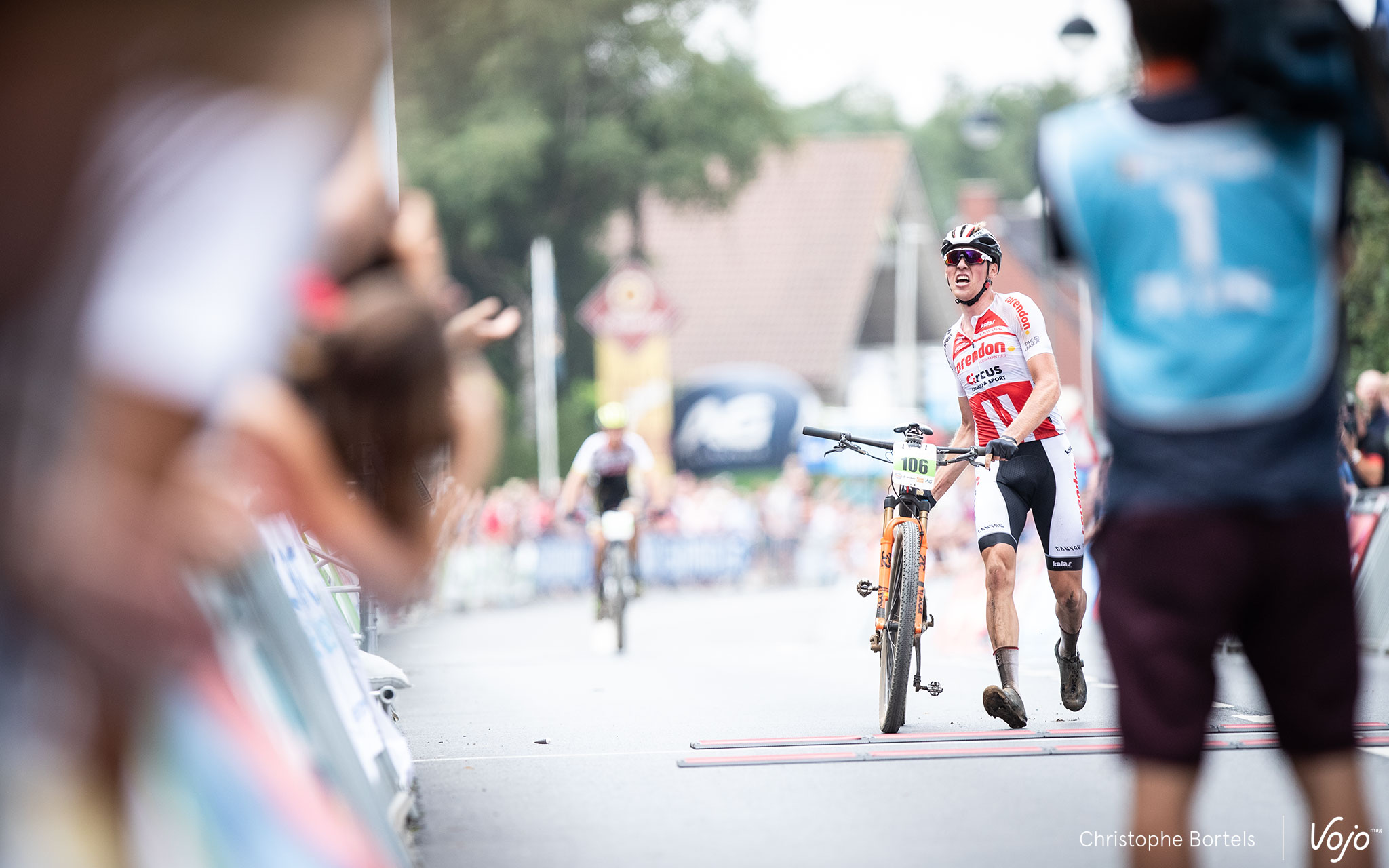 Mais en vain : Jens Schuermans va grappiller du temps et ne laissera pas ses concurrents revenir. Il franchit la ligne d’arrivée avec 49 secondes d’avance, s’assurant ainsi de porter le maillot de champion de Belgique une année de plus !