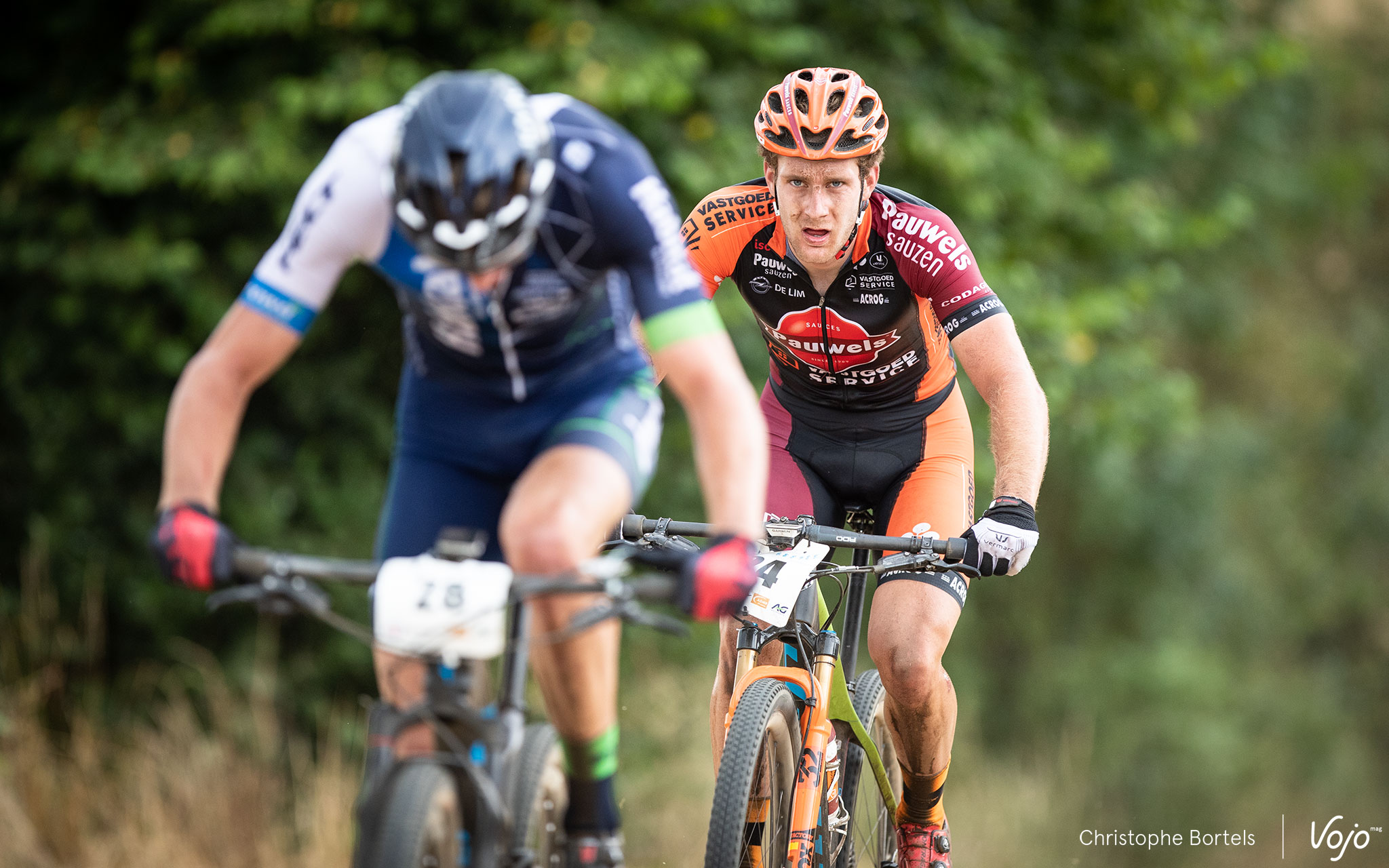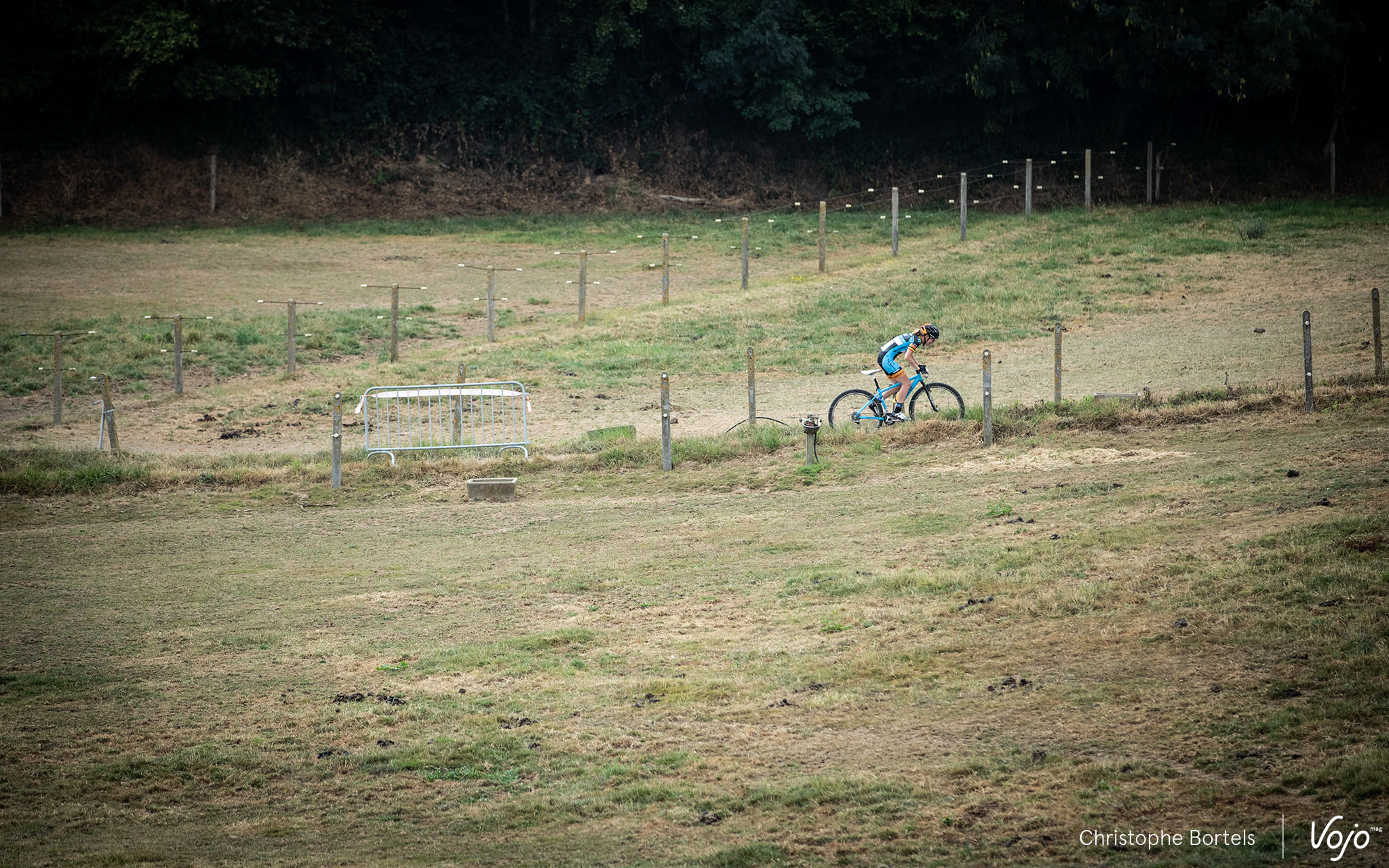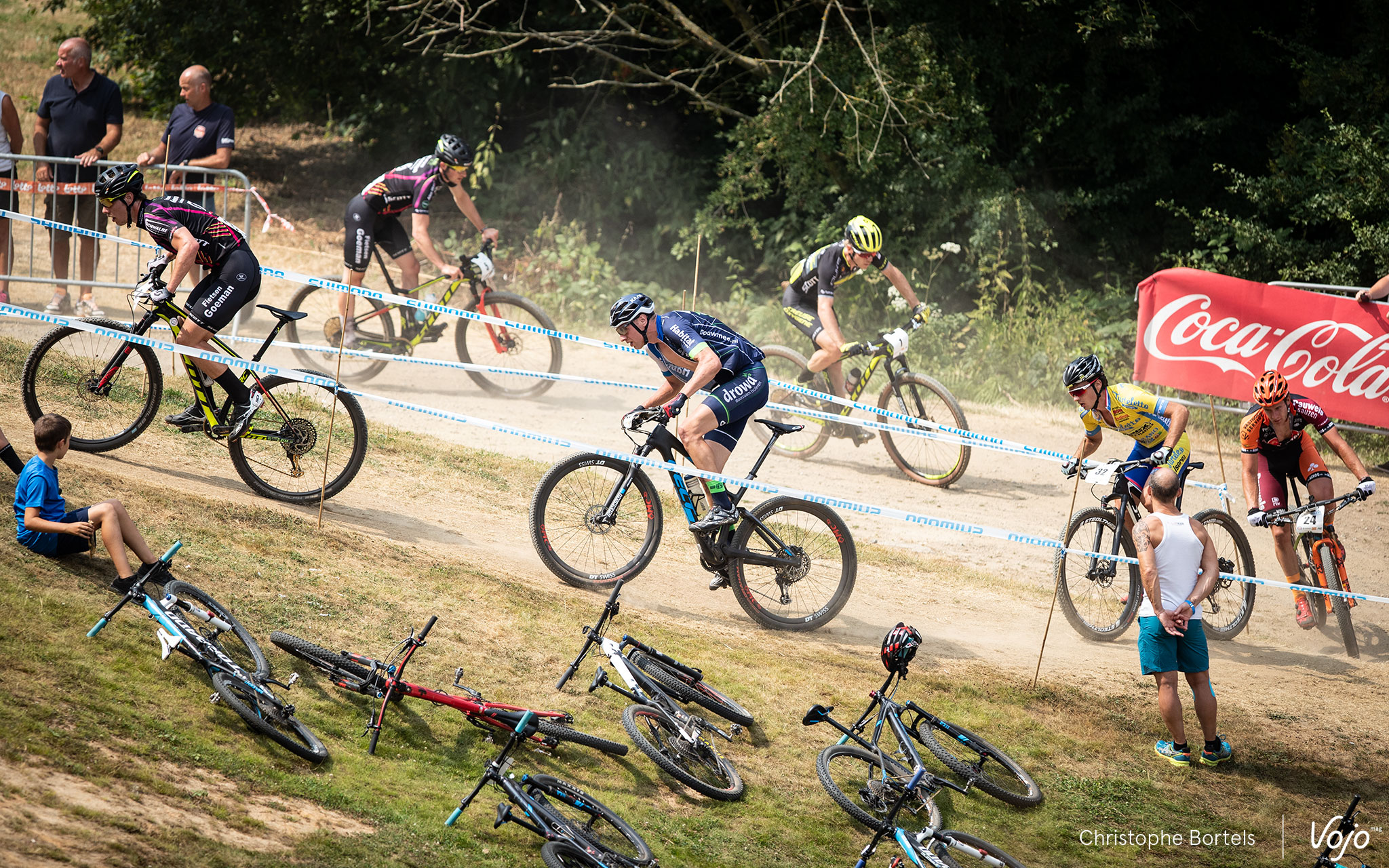 Après le start loop, Bart De Vocht emmène le peloton. On y retrouve de gros prétendants au titre comme Kevin Panhuyzen, Ruben Scheire, Daan Soete et Jens Schuermans, sans oublier Erno McCrae, champion de Belgique U23 l’an dernier. Ce dernier terminera finalement 9e après avoir perdu quelques places suite à une chute.