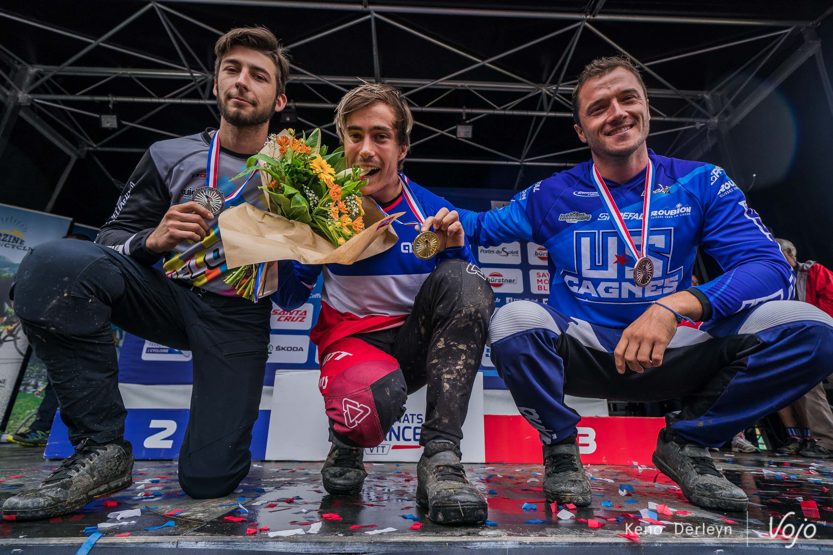 Cela faisait plusieurs années que le maillot de Champion de France n’avait pas eu autant de prétendants ! En gros, il y avait l’ex-champion de France en titre et actuel champion du Monde Loïc Bruni, le leader de la Coupe du Monde Amaury Pierron, le récent vainqueur de la Coupe du Monde à Vallnord Loris Vergier, ou encore les très en forme Thomas Estaque, Benoit Coulanges ou bien même Rémi Thirion très à l’aise sur ce genre de tracé, tous avaient leurs chances sur ce tracé ultra technique.