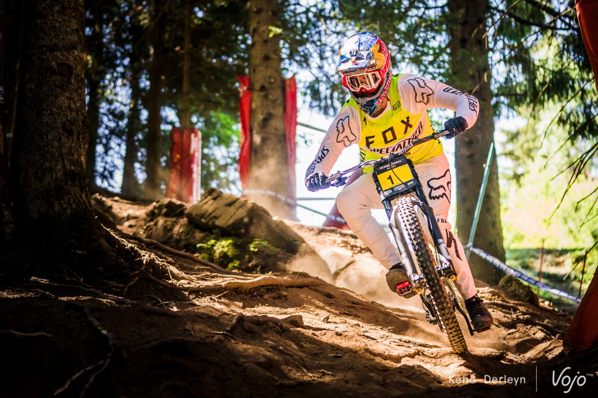 Cela faisait plusieurs années que le maillot de Champion de France n’avait pas eu autant de prétendants ! En gros, il y avait l’ex-champion de France en titre et actuel champion du Monde Loïc Bruni, le leader de la Coupe du Monde Amaury Pierron, le récent vainqueur de la Coupe du Monde à Vallnord Loris Vergier, ou encore les très en forme Thomas Estaque, Benoit Coulanges ou bien même Rémi Thirion très à l’aise sur ce genre de tracé, tous avaient leurs chances sur ce tracé ultra technique.