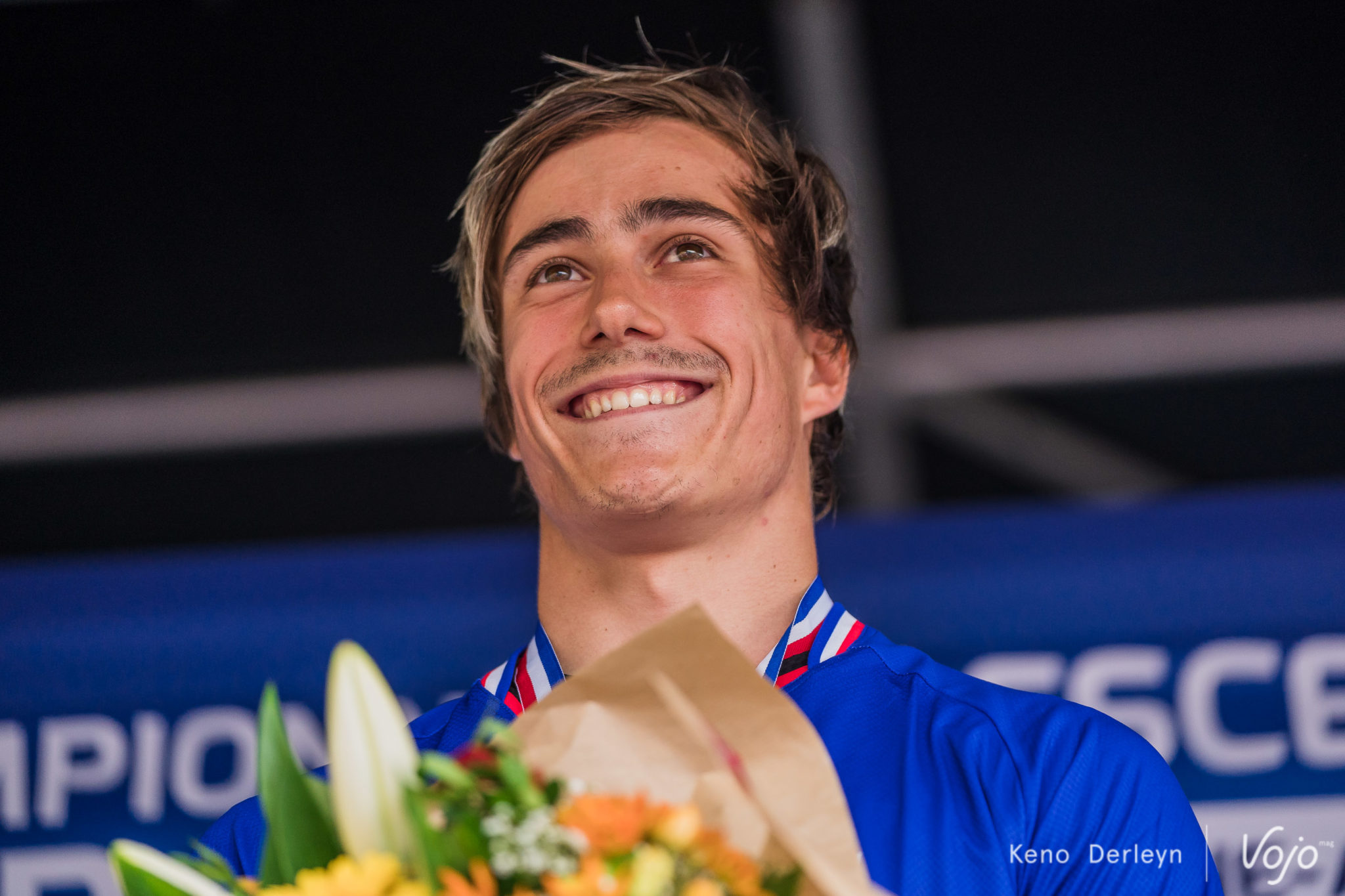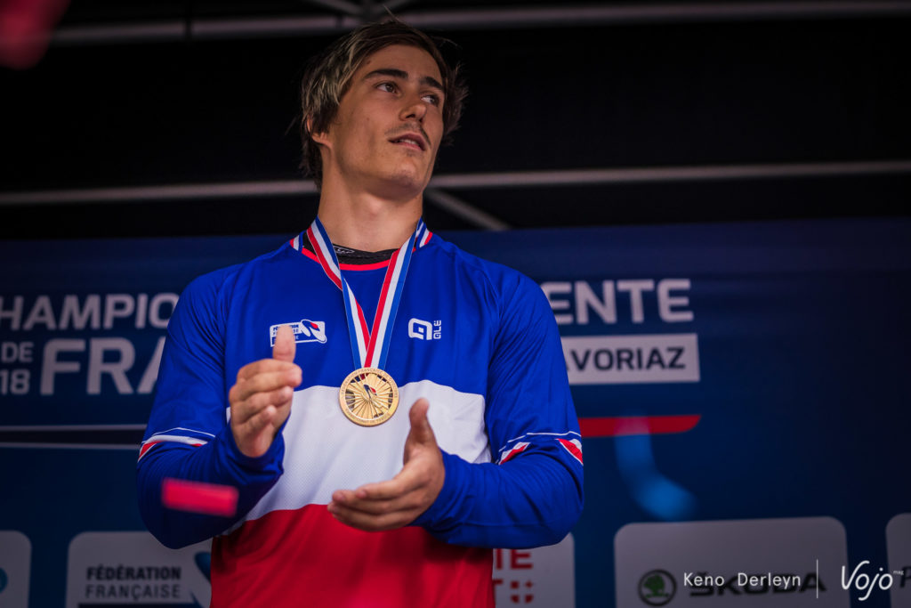 Titré champion de France Junior en 2016, Gaëtan avait signé son premier top 10 l’an passé chez les Elites. C’est un pilote très doué qui malheureusement a souvent été malchanceux dans le passé (blessures/souci mécanique). Forcément un peu surpris d’enfiler le maillot tricolore, le protégé de Cécile Ravanel commente avec beaucoup de modestie : « C’est clair que mes sentiments sont mitigés ! C’est cool dans le sens où je n’ai pas eu de chance depuis plusieurs mois et que là, la chance tourne un peu ! Maintenant c’est moins cool dans le sens où tous les top gars n’ont pas pu défendre leurs chances et je sais que le résultat final n’est pas celui qu’on aurait eu dans d’autres conditions. Après, j’étais content de mon premier temps intermédiaire, en bas j’ai fait plusieurs erreurs car ça commençait pas mal à glisser. Et quand j’ai vu la pluie arriver, j’ai vite compris que ça allait être le chantier pour les autres. Ils ont fait le show en tout cas ! »