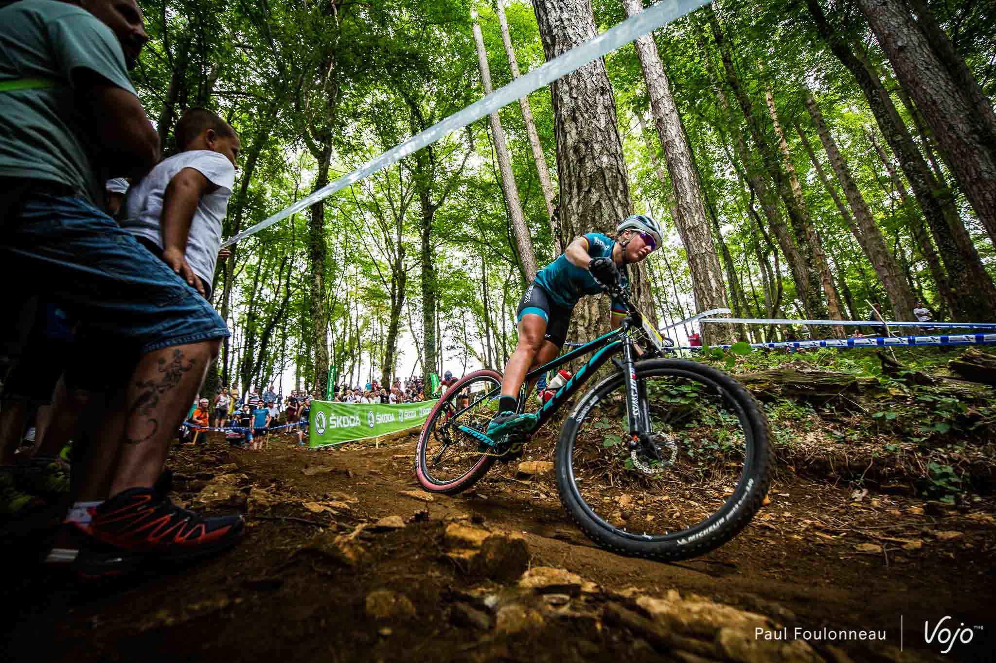 Sur la ligne d’arrivée, Pauline Ferrand-Prévot commente sa course : « J’ai essayé de passer devant dès le début de course pour construire mon avance puis l’accroitre. Je savais qu’il y avait eu beaucoup de crevaisons pendant la course Espoirs et je voulais avoir suffisamment d’avance en cas de problème. Le circuit était physique avec des montées raides et peu de possibilité de récupérer en descente. C’est dur comme course mais c’est une bonne charge d’entraînement pour la suite de la saison. J’ai l’habitude d’1H20 de course et là on était 10 minutes plus long, ça compte. Je ne devais pas m’endormir parce que même avec de l’avance, on continue de se poser des questions. Je suis contente d’avoir gagné. Ce maillot je l’ai depuis 6 ans et j’ai l’impression qu’il fait un peu partie de moi. Je repars en bleu-blanc-rouge et je suis fière de porter les couleurs de mon pays. »