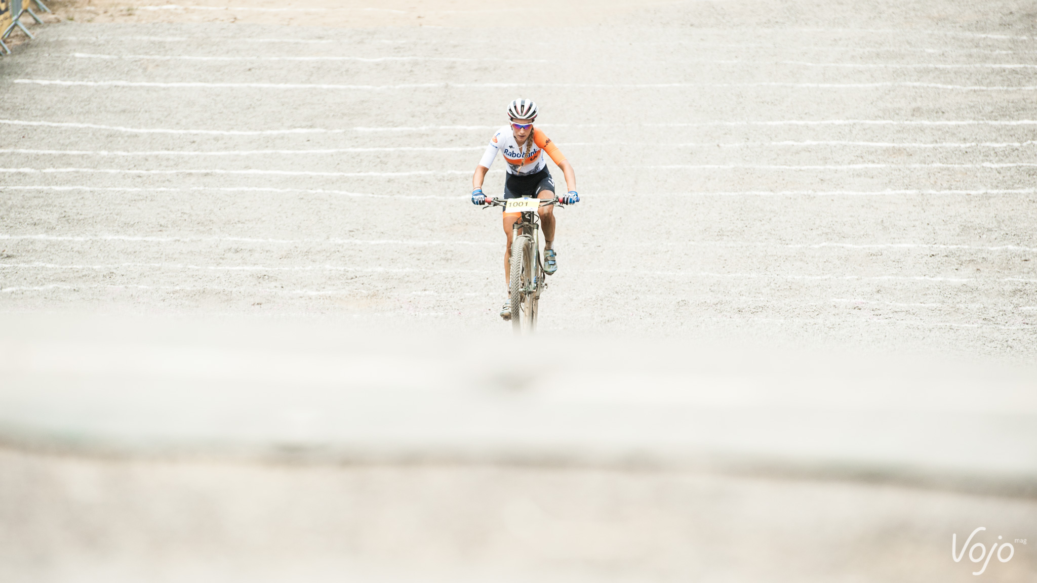 Pauline Ferrand-Prevot continue sa course seule en tête, creusant petit à petit l’écart qui la sépare des autres concurrentes…