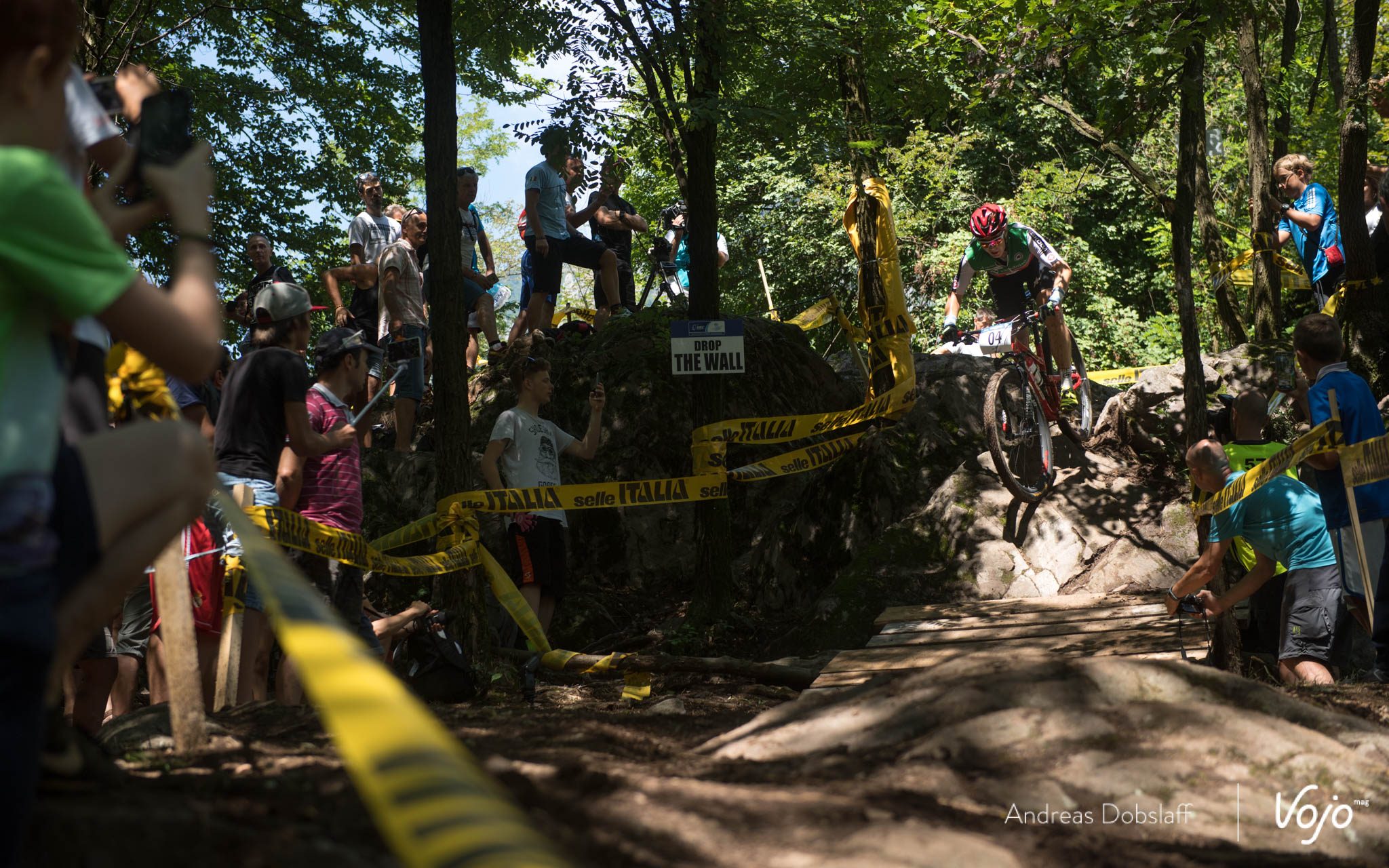 Fourche bloquée, Stéphane Tempier a commencé à subir le parcours très cassant et à sa faire dépasser. Par Florian Vogel d’abord, puis par Julien Absalon et enfin Manuel Fumic (qui terminera 3e). Tempier termine finalement 5e derrière Daniele Braidot alors que le titre lui tendait les bras. Ou à tout le moins une médaille.
