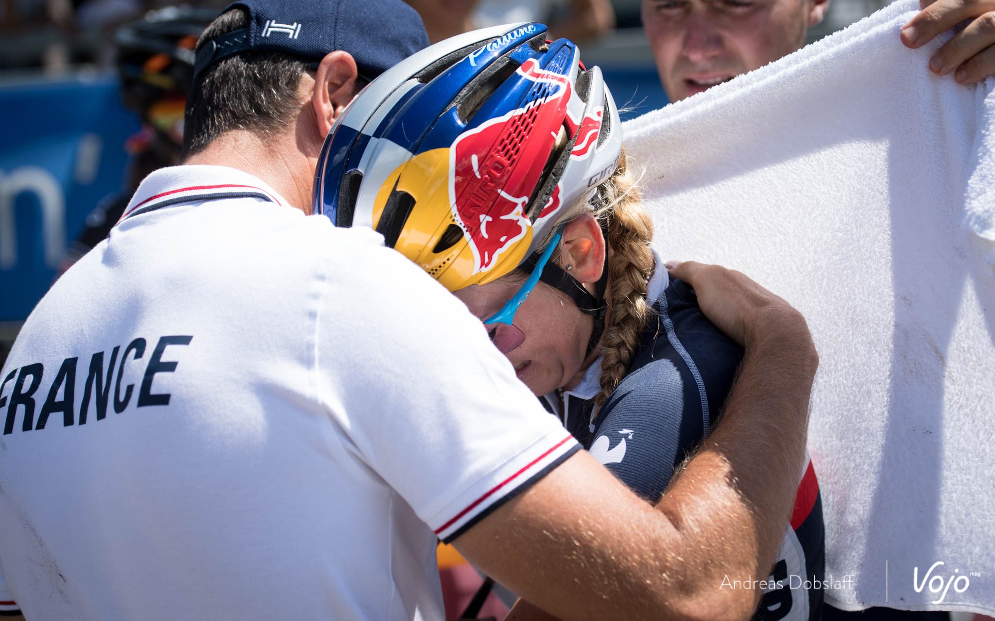 La joie de Belomoina contraste par contre avec la tristesse de Pauline Ferrand-Prevot. Une médaille ici aurait dopé sa confiance mais tout le monde sait que sans sa crevaison, elle aurait décroché l’argent. La forme est bien de retour et on est impatients de la voir à l’oeuvre à Mont Ste-Anne lors de la prochaine manche de Coupe du Monde !