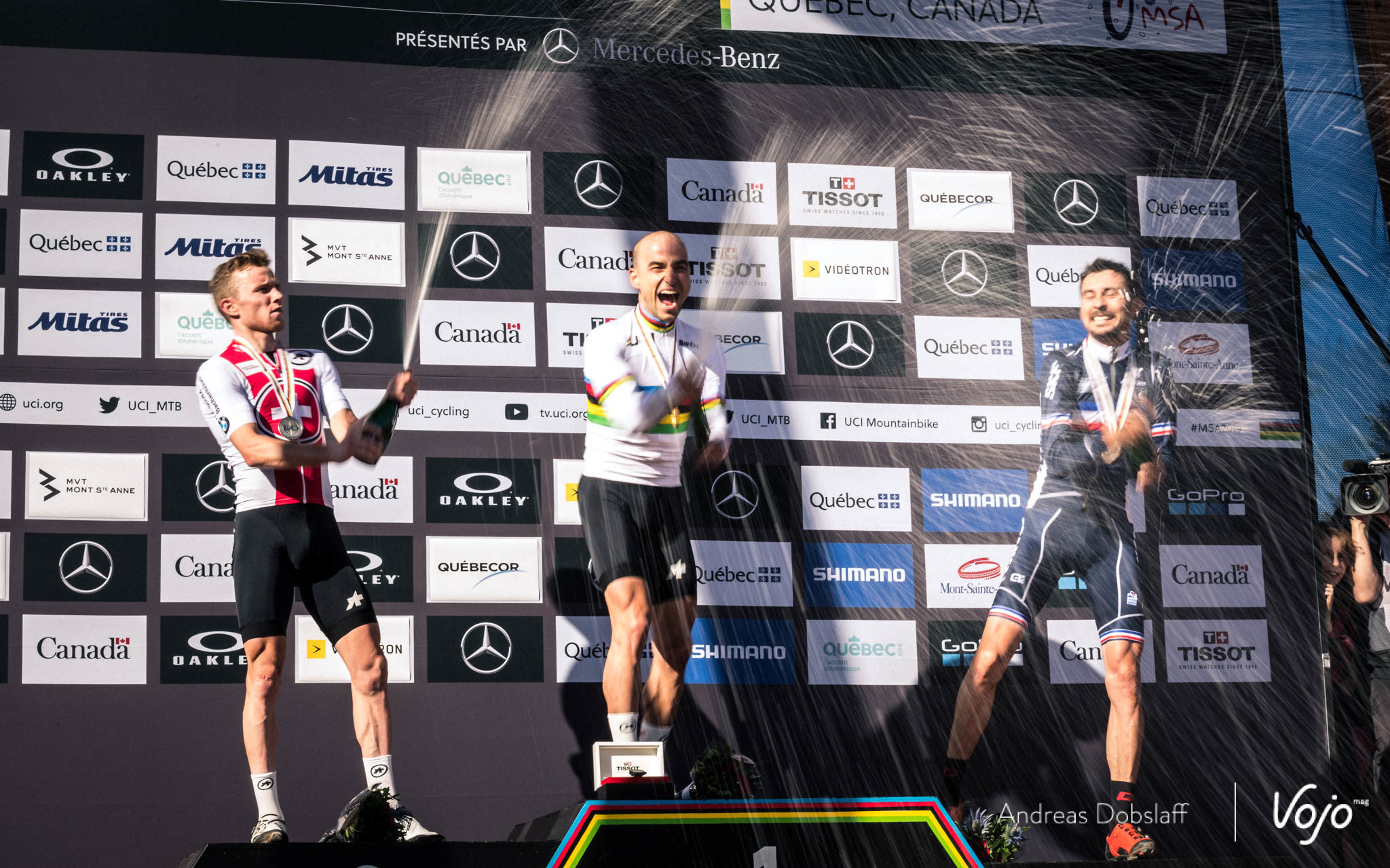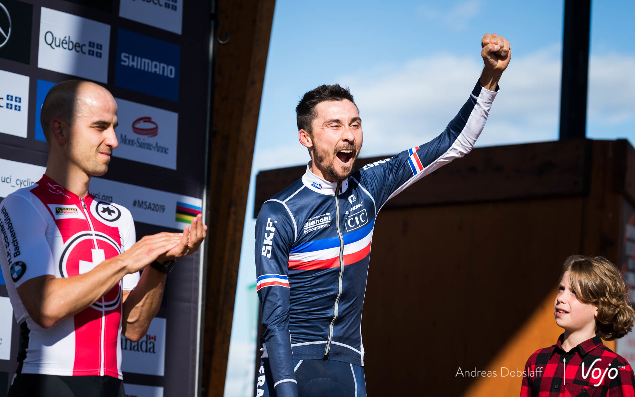C’est est fini du championnat du monde XC 2019, avec un 8e sacre pour Nino Schurter mais aussi et surtout un deuxième titre émouvant, historique, marquant pour Pauline Ferrand-Prevot, de retour au sommet après plusieurs années de galères. Mais de l’action et de belles images, il y en a eu à tous les étages sur les courses elites hommes et femmes. Vojo vous propose de retourner au Mont-Ste-Anne le temps d’un portfolio réunissant les meilleures images d’Andreas Dobslaff et Olivier Béart, nos deux photographes sur place.