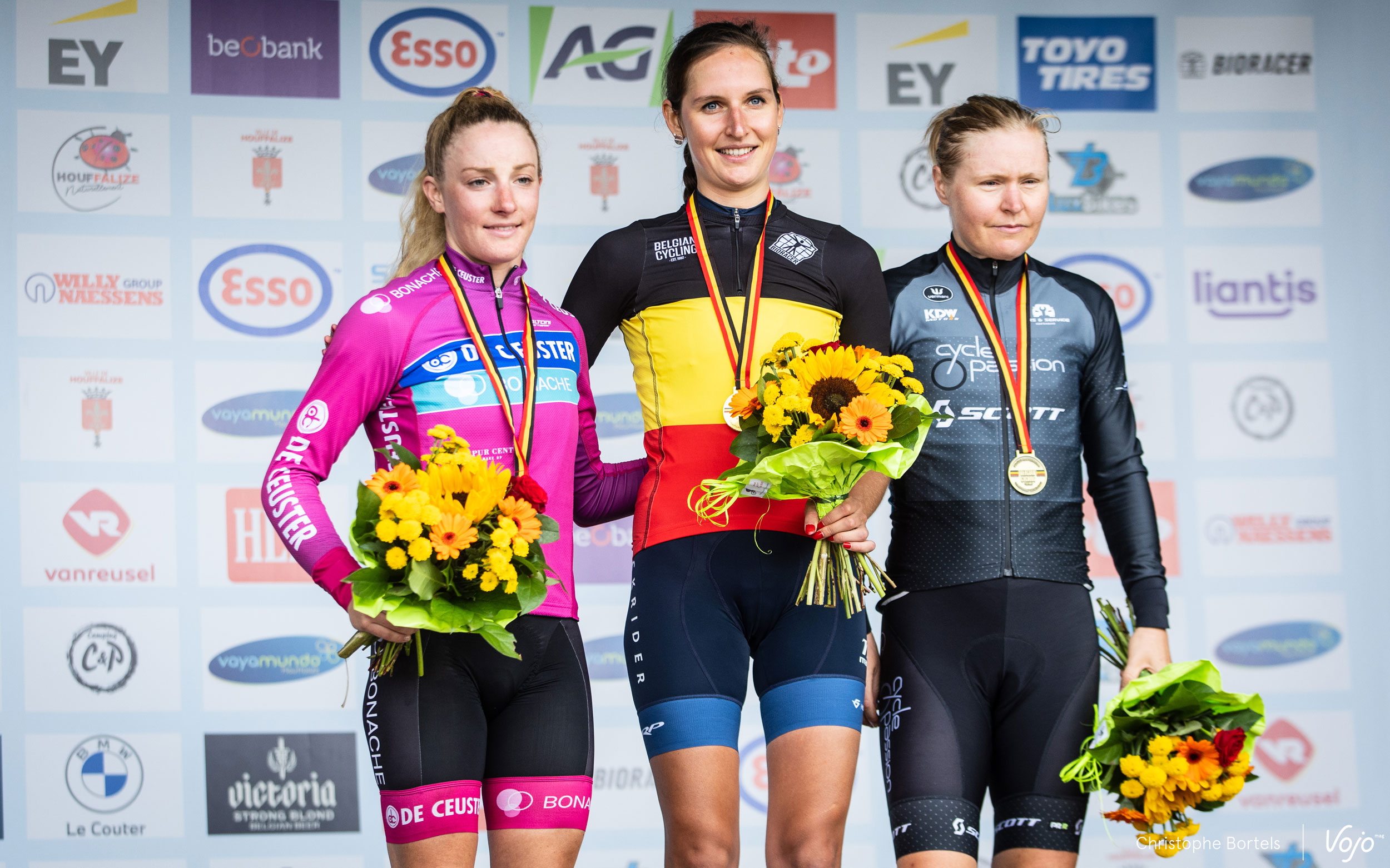 Alicia Franck et Githa Michiels complètent le podium, tandis qu’Alice Pirard et Joyce Vanderbeken finissent en 4e et 5e position.