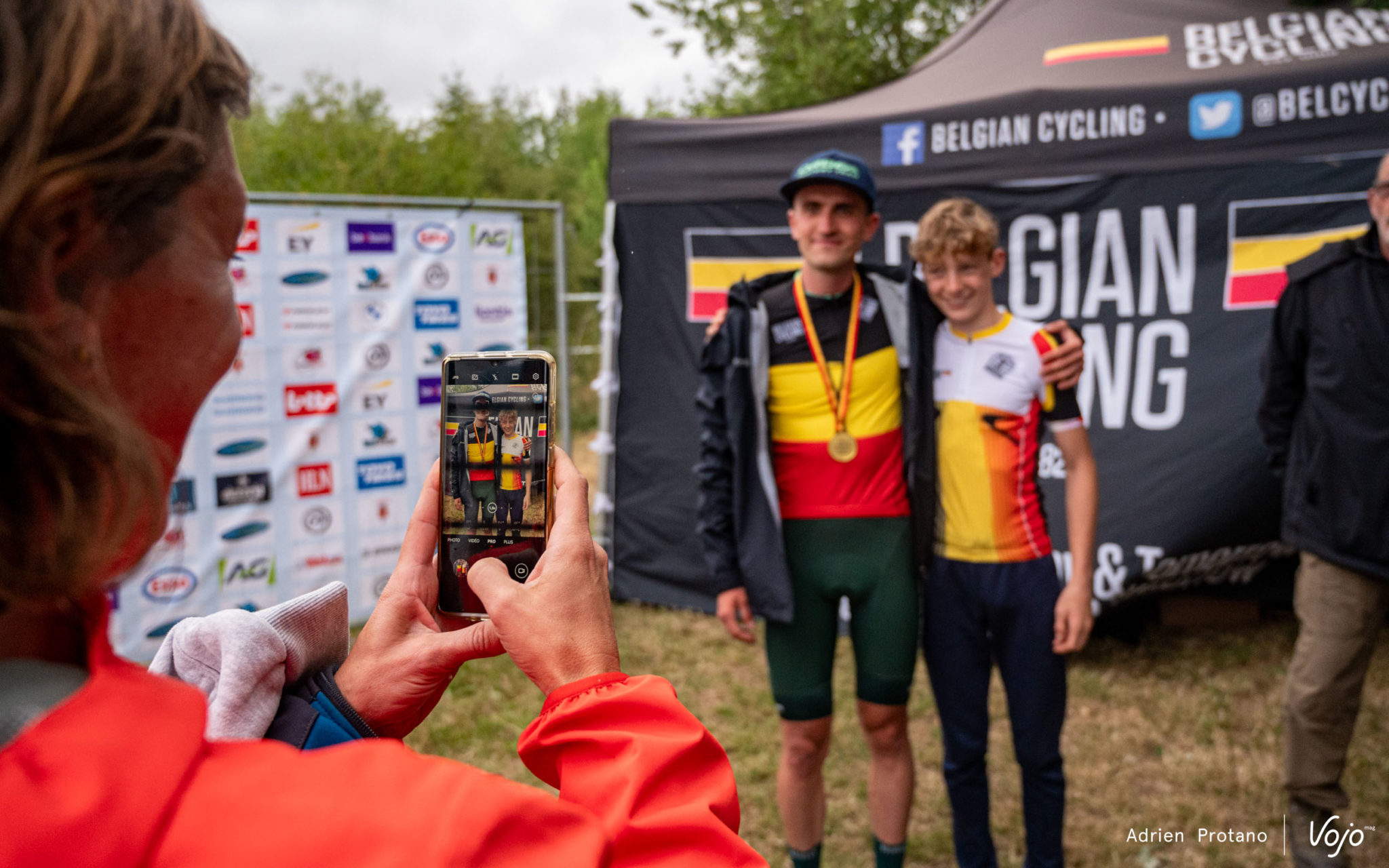 Médailles autour du coup et maillot noir-jaune-rouge sur les épaules, voici le podium des championnats de Belgique XCO millésime 2023.