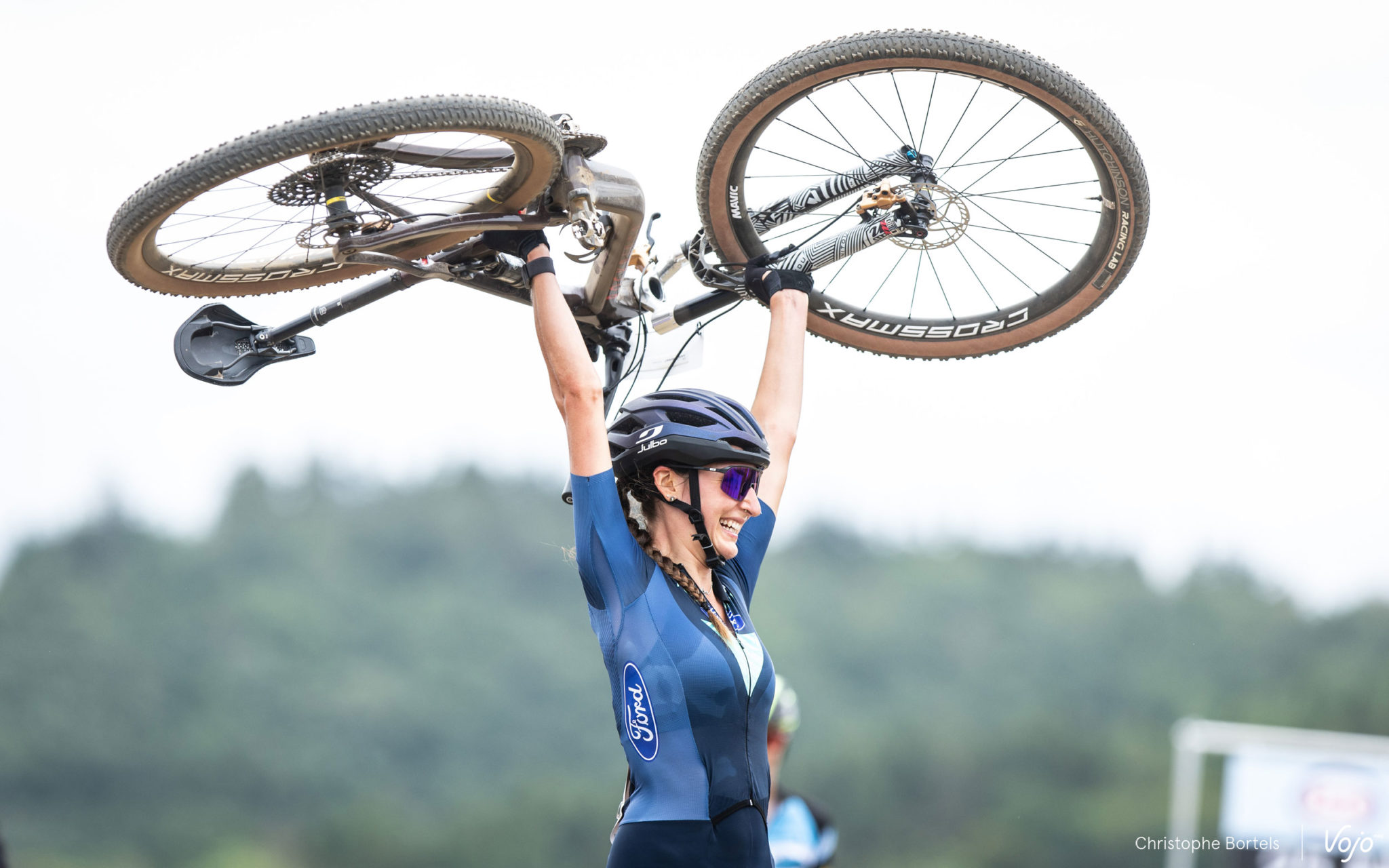 Et voilà Julia Grégoire qui franchit la ligne d’arrivée au terme de son 4e tour. En effet, si la pilote du BH Wallonie MTB Team pointait en 5e position au scratch, elle demeure toutefois en catégorie U23 pour laquelle la course dure un tour de moins que les Élites. Après sa domination du XCC du vendredi, Julia Grégoire s’empare une nouvelle fois du maillot tricolore ce dimanche !
