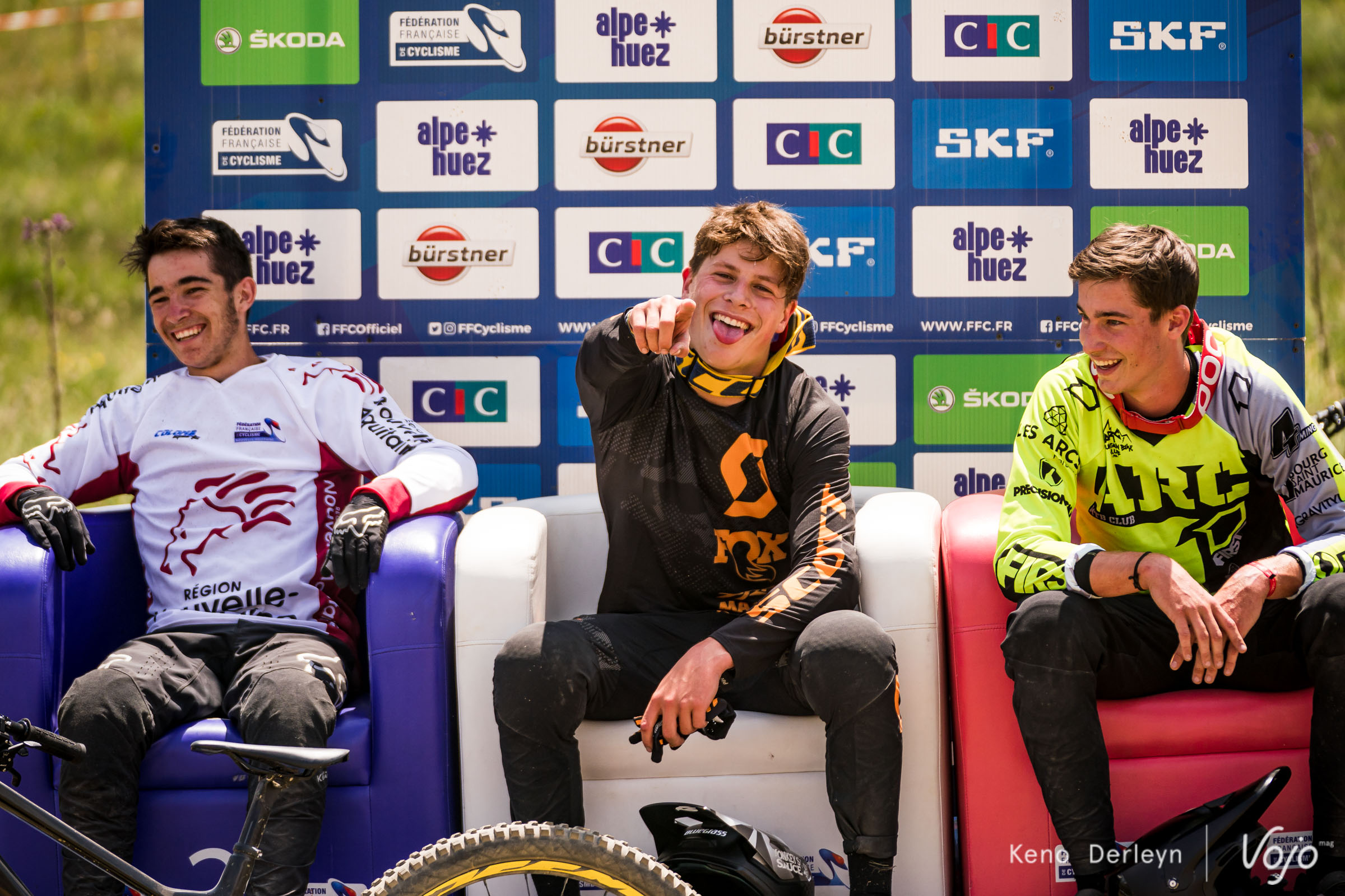 Il devance son coéquipier Rémi Thirion, fair play, qui commente sa course : « On s’est fait taper par le junior ! J’ai fait un bon run, j’ai fait tout ce que j’avais à faire. On savait que ça allait être une course un peu particulière étant donné que les trois meilleurs français ne venaient pas. On savait que la joie du vainqueur ne serait pas la même que prévu, mais on savait qu’il y aurait un bon niveau avec tous les autres français. Je trouve ça dommage que les trois absents n’aient pas joué le jeu, même vis à vis des autres pilotes. Ils sont sur un autre championnat et les trois sont dans le top 5 mondial. Si un des trois fait de la fraîcheur, les autres ont envie de faire du jus aussi. Ça se comprend mais c’est dommage pour notre sport et les français. »