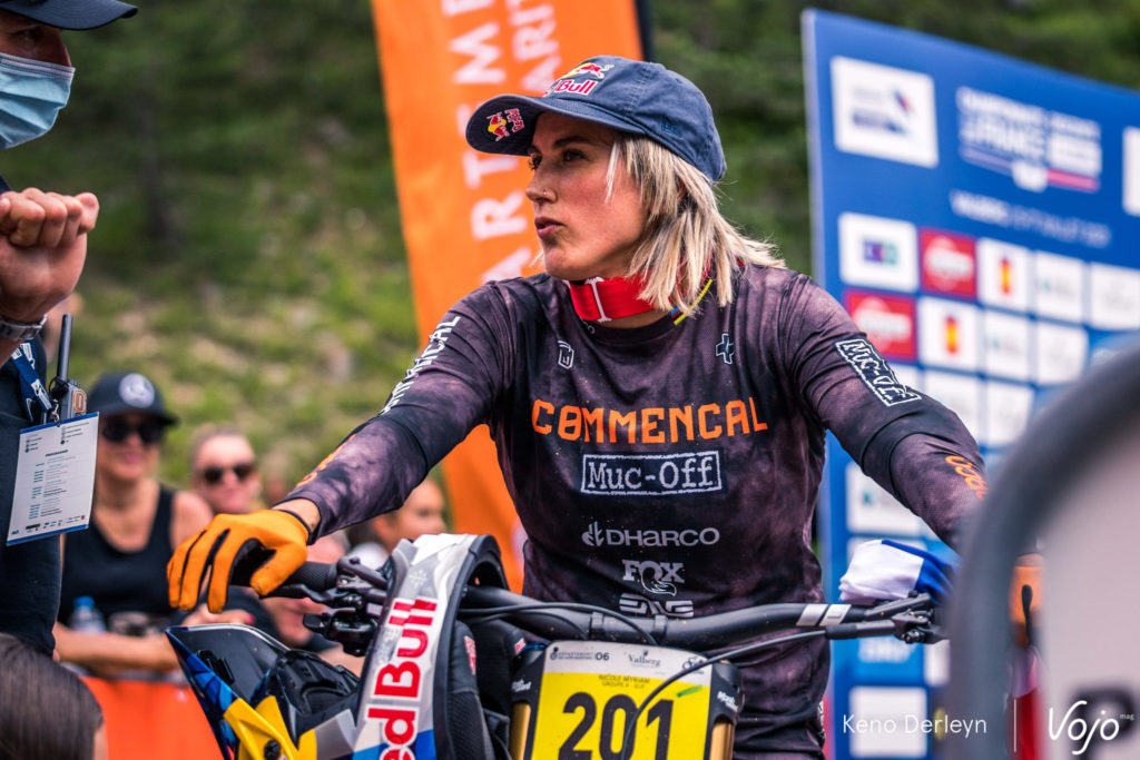 En l’absence de Marine Cabirou, toujours en convalescence après sa grosse chute aux Gets, on voyait mal ce qui pouvait priver Myriam Nicole d’un nouveau titre national en dehors d’un problème mécanique (et encore). Pour autant, la pilote Commencal // Muc-Off, ici en photo lors des entraînements, n’a pas pris ces championnats de France à la légère.